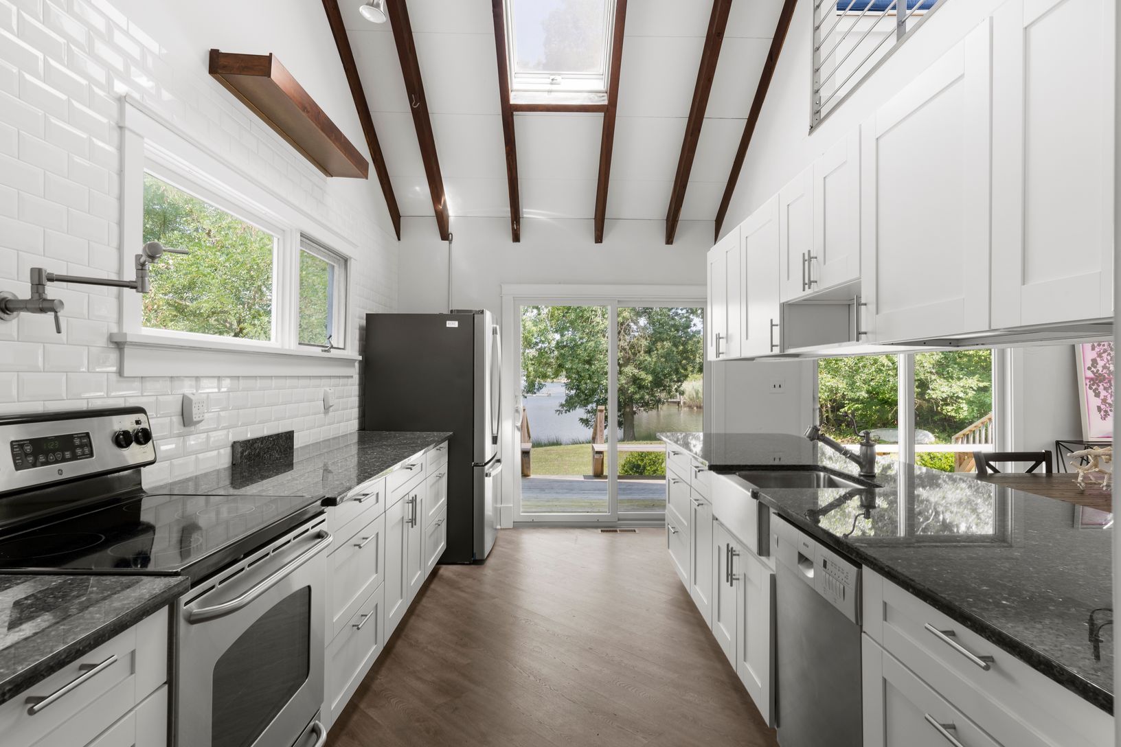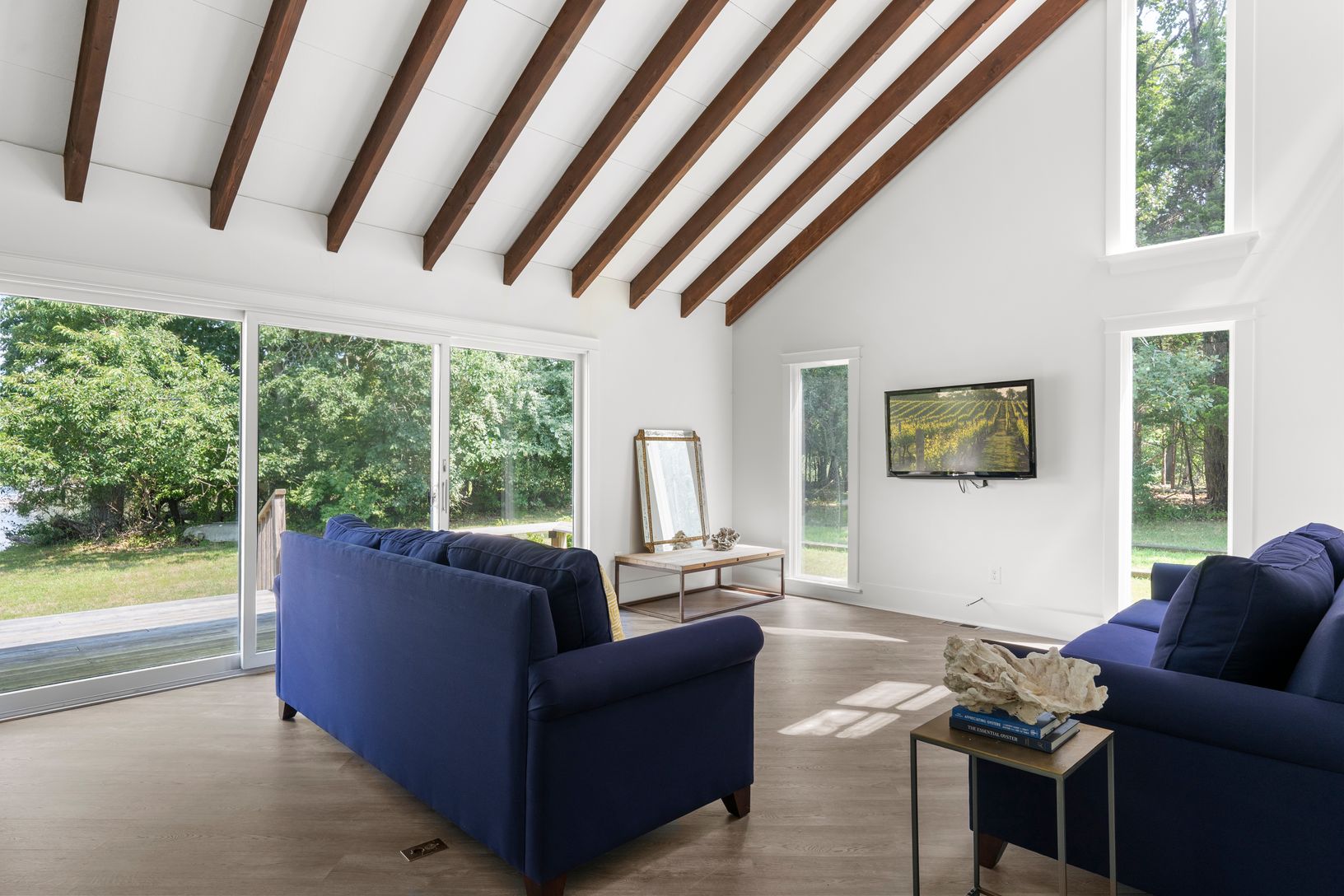 Located on navigable West Neck Creek, this 1970s expanded 6 bed, 4.5 bath contemporary home sits on 1.047 acres with spectacular water views. Arrive by boat and private dock to an expansive deck leading into a soaring open plan living and kitchen space. There is plenty of accommodation for all to enjoy this stunning setting surrounded by the natural beauty of Shelter Island. The dock area has been seeded with oysters and clams. A bonus light a