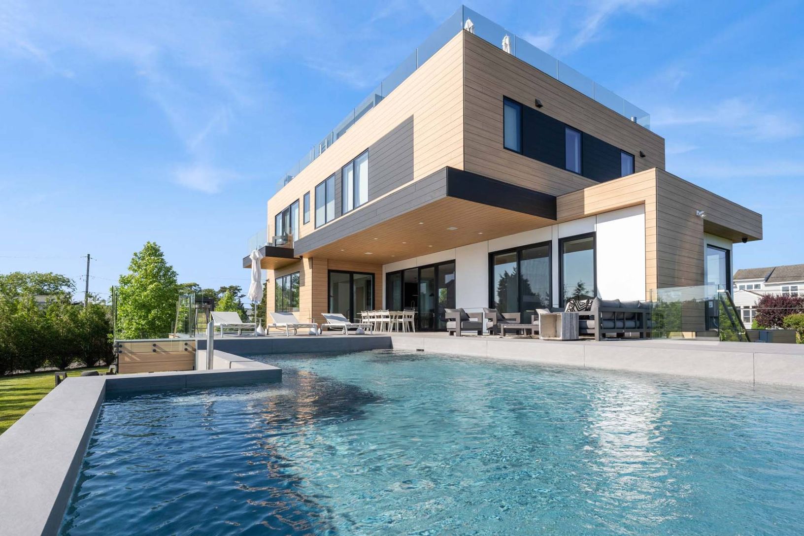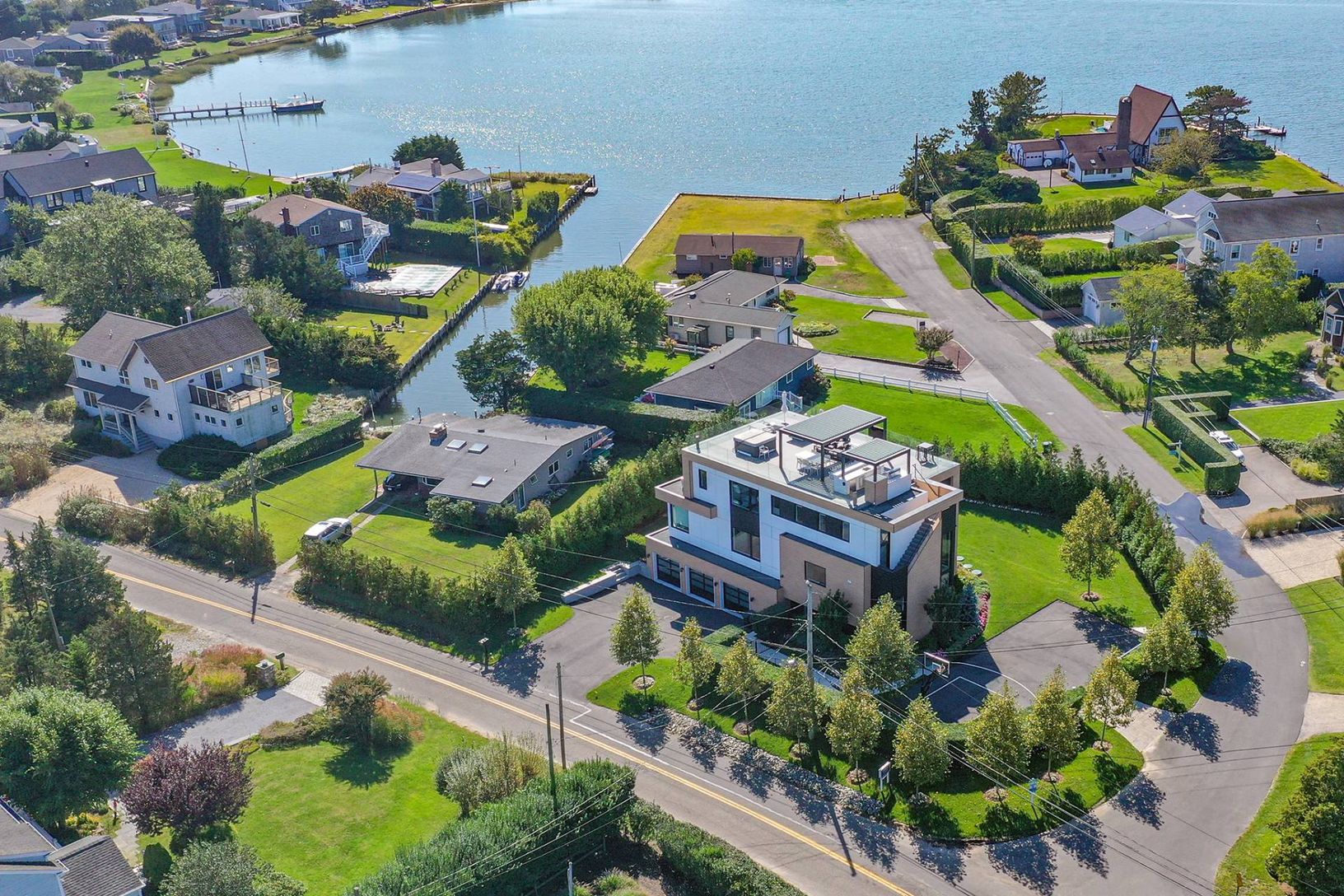 Brand new, modernist-style construction, built by Farrell Building Company, with 5 en-suite bedrooms, is flooded with natural light through abundant, large windows and glass doors that showcase amazing views of Shinnecock Bay and vistas to the inlet and the ocean beyond. Living areas flow seamlessly among indoor and outdoor spaces, designed for entertaining, gathering or relaxation. There is a spacious open kitchen with premium appliances, qua