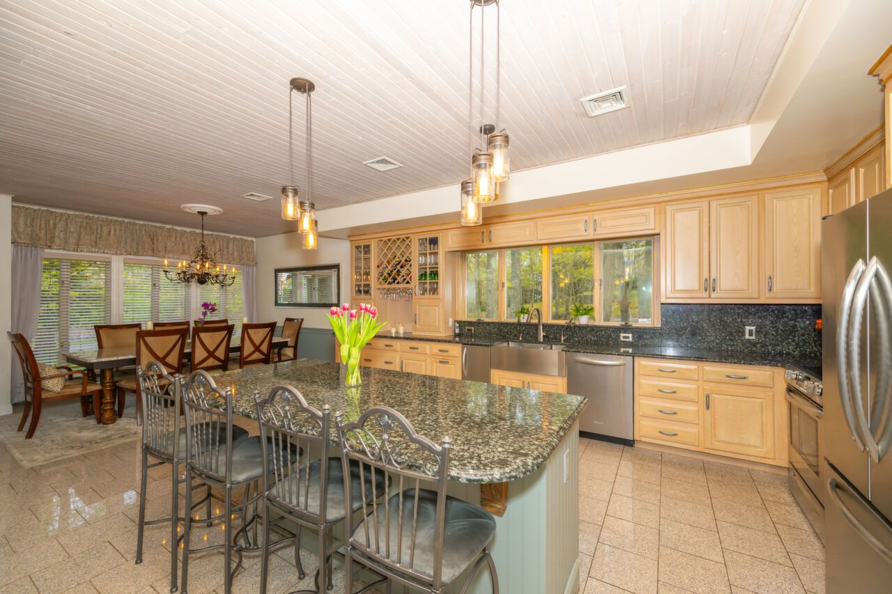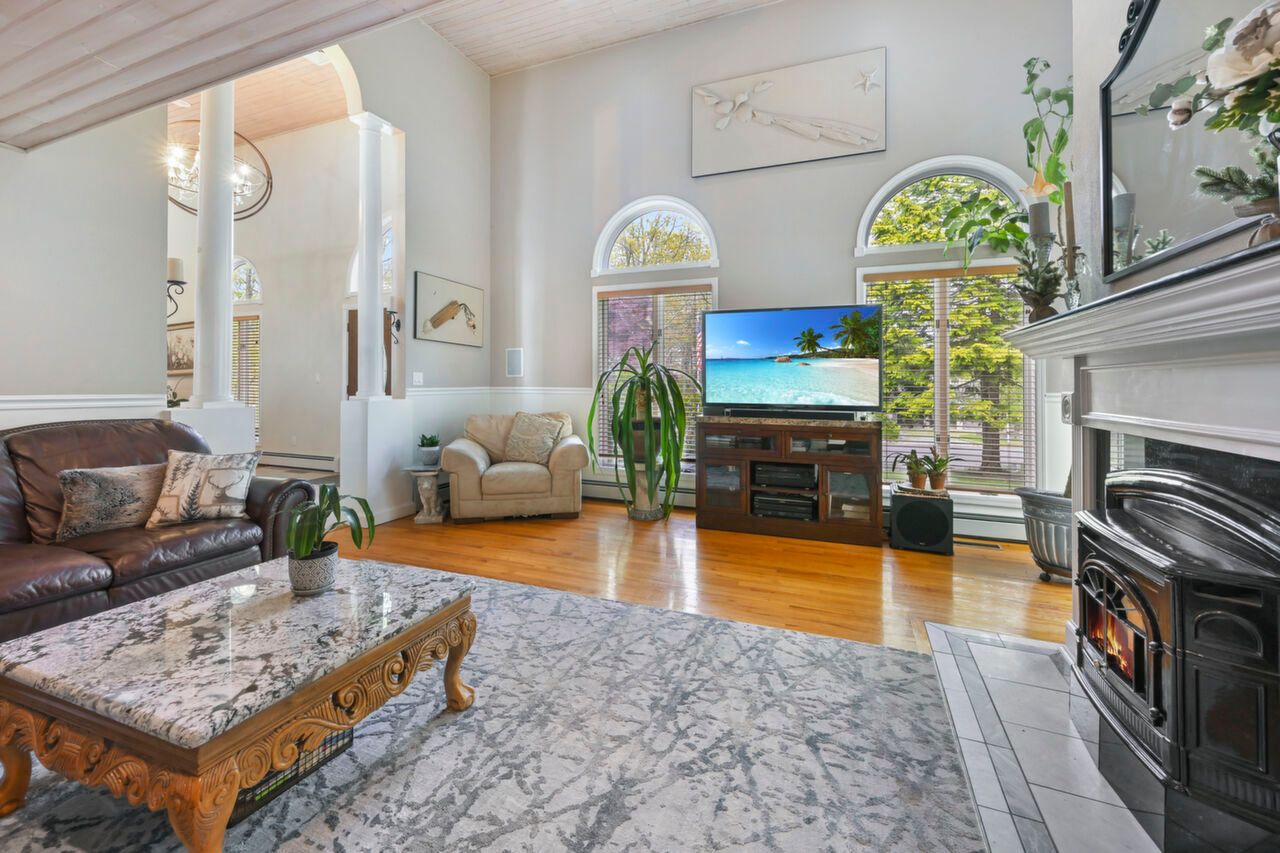 Builders Own-One of a kind European Stucco Home-Meticulously maintained 3400SF- 10 room -4 bed 4 bath -CA Hard wood and granite flooring-wood plank ceilings/ 2900SF basement / Blue stone entrance w/colonnade portico-Double door. Entry foyer with soaring ceiling -handcrafted curved Oak Staircase-Library/FP-Family Rm/FP-Sunroom with French doors to Courtyard -Open kitchen/Dining rm seats 18. Custom ash cabinetry/granite counters/island/floors