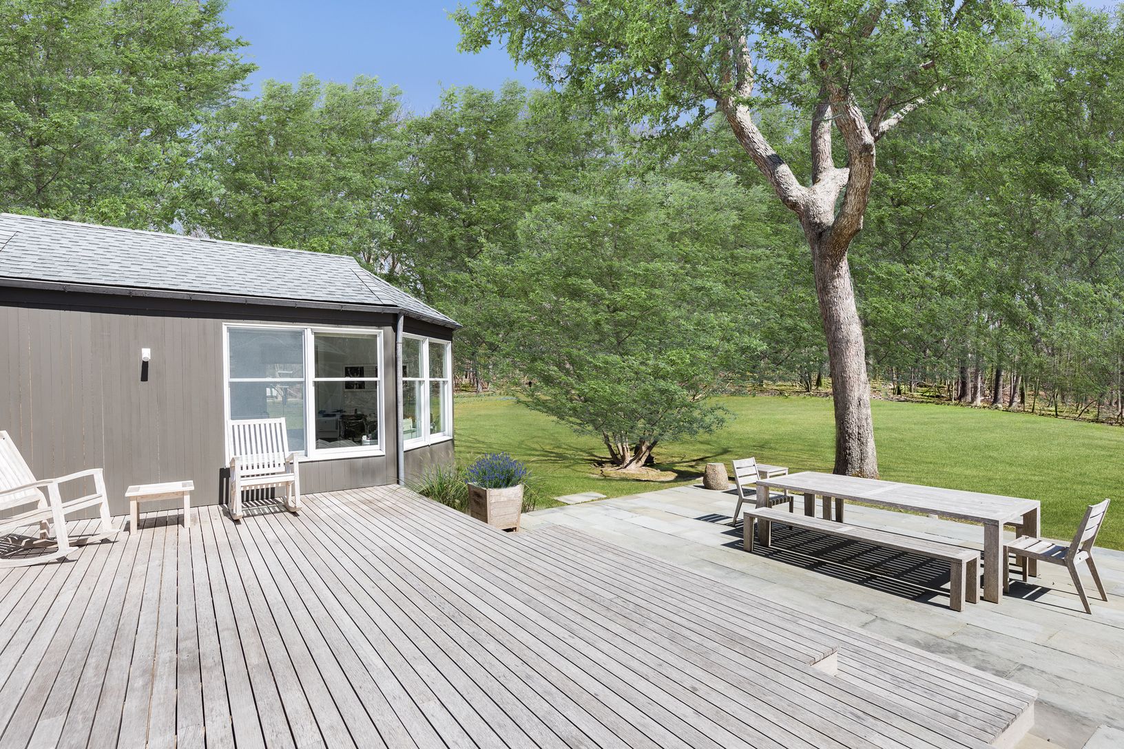 Tucked away down a long driveway lies this picturesque property on an elevated flat acre. Completely private but just two miles from East Hampton village. Enjoy the existing turn-key cottage as-is, with the added opportunity for room to grow. The home's bright and open layout provides easy modern living, with a seamless flow to the sun-drenched outdoor patios overlooking the sprawling property. The lot offers plenty of room to add a pool, expa