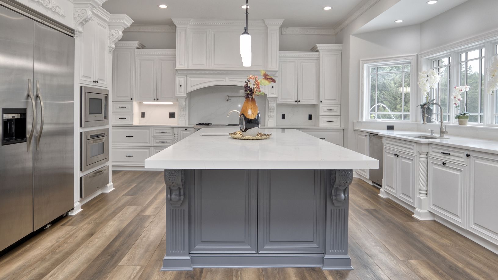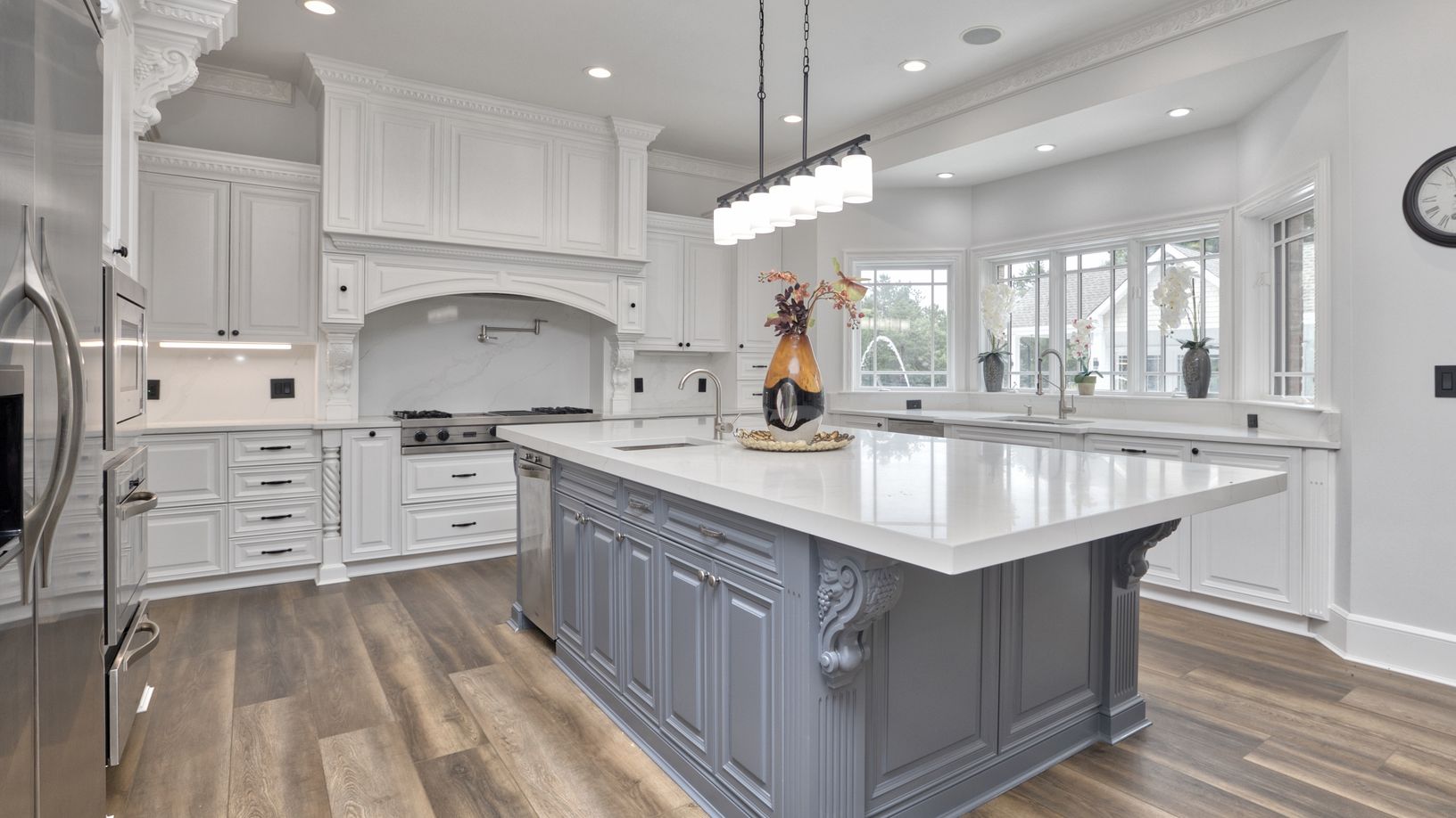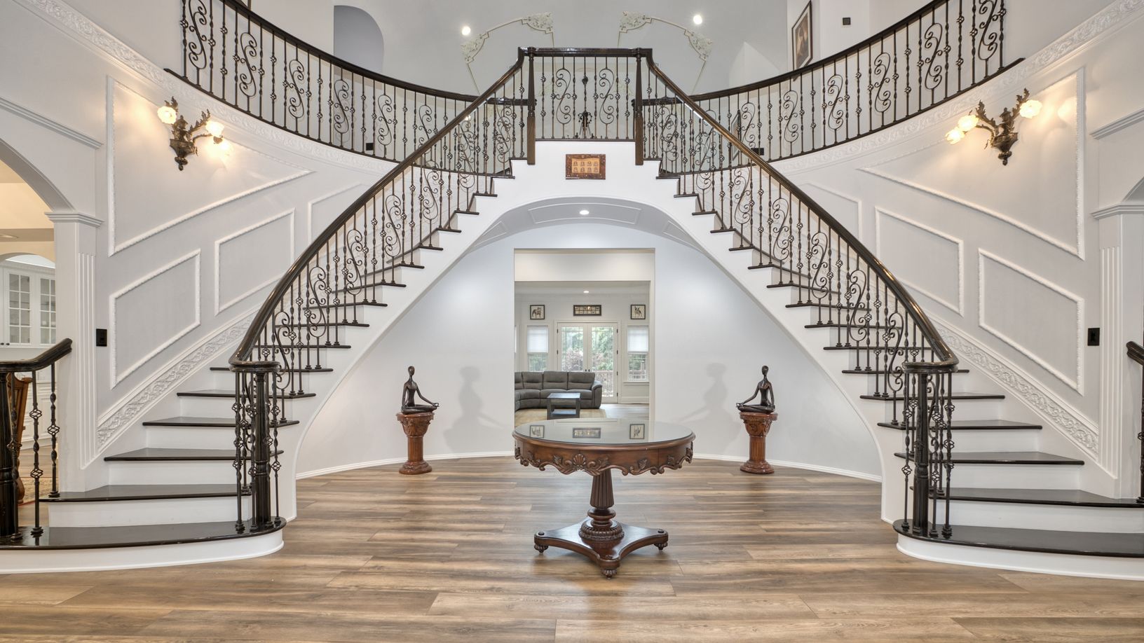 Welcome to this one of a kind 2023 fully renovated palatial Estate just minutes from the Hamptons. Privately set into 1.9 Acres of manicured Lighted Landscape designed for Sporting, Entertainment and Lifestyle. Received by 1/8 Mile Hardscaped Private Driveway with Dual Auto courts and 4 car finished Garage. Highest level of exterior upgraded finishing and Architectural design. Enter into Formal Foyer with Twin Bridal Staircase, Dual Retractabl
