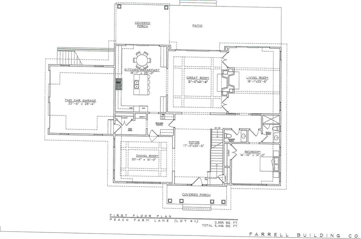 On Peach Farm Lane, one of the premiere streets in the Northwest, Farrell Builders has just finished 5 new homes. THREE are already sold. Only 2 homes remain! This gracious 5446 square foot home has 5 ensuite bedrooms plus a sumptuous master bedroom & bath with its own private terrace. A two-story paneled foyer leads to a large Great room highlighted by a coffered ceiling and detailed moldings throughout the house. A two sided fireplace