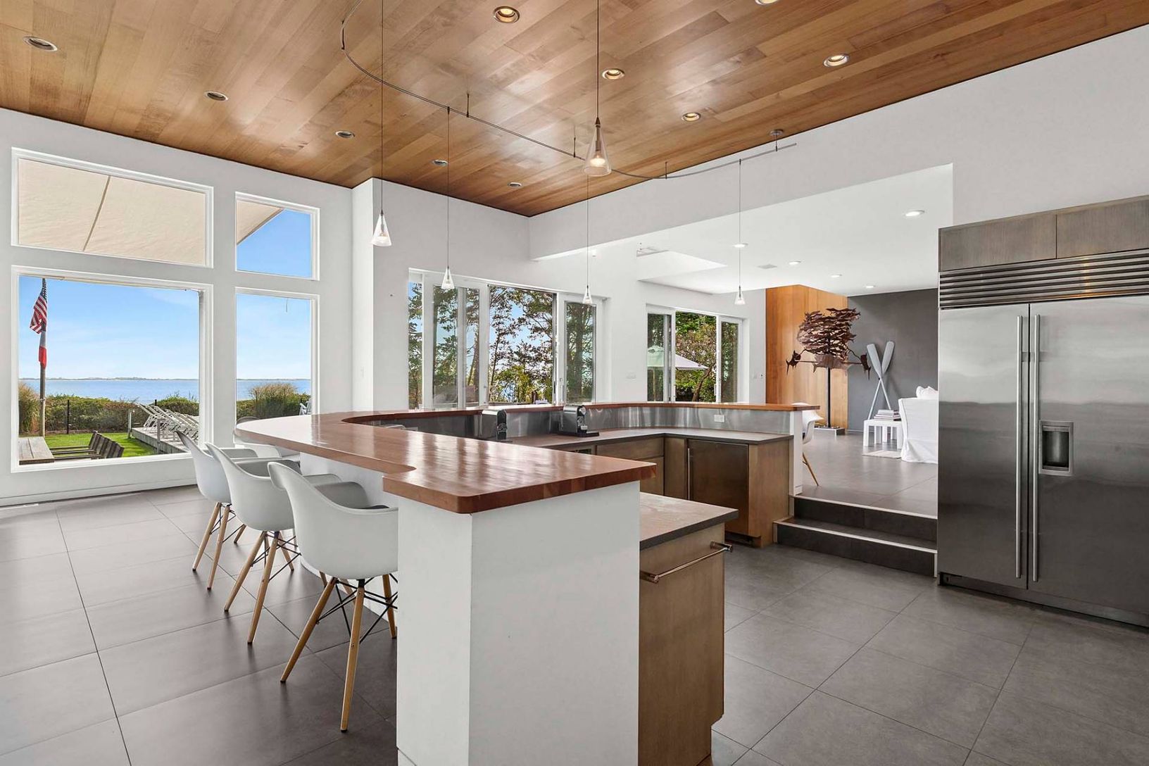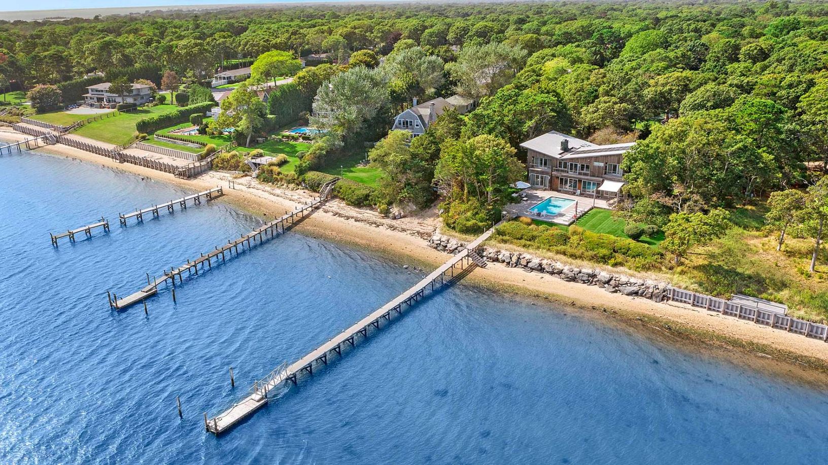 Secluded on two acres fronting Shinnecock Bay, this private compound offers the essence of a Hamptons lifestyle in a contemporary design. The main house has a waterside pool with sweeping views and majestic sunrises, and access to beach and dock. This property is an understated blend of style, comfort and coastal sophistication. It has full-size tennis and a Petanque court. The main residence is an open concept layout framed by expansive windo