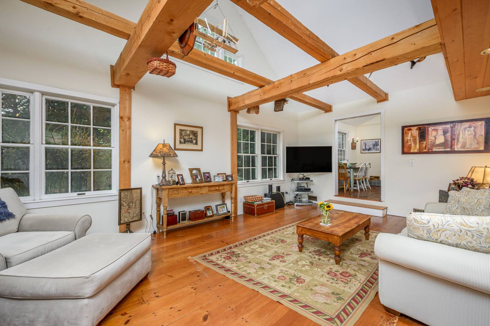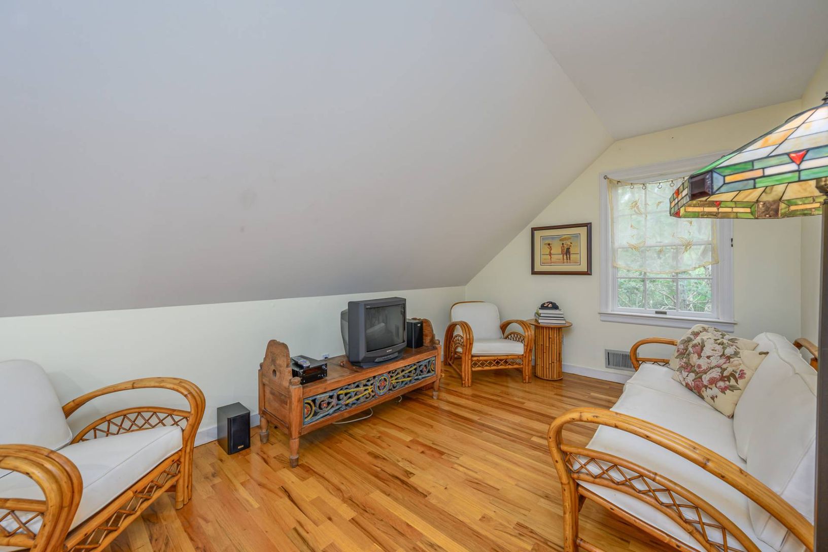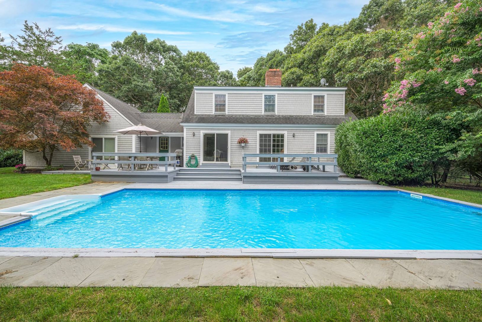 In a quiet coastal community close to bay beaches, marinas and waterside dining, this traditional Hamptons escape clad in cedar-shake siding is immediately charming. Sited on a shy acre, the 2-story home offers 2,679 +/- sq. ft. of luxury living space, 4 bedrooms, 2 full baths, 1 half bath, 2 fireplaces, and a large heated pool. Inside, find bright and open interiors with beautiful hardwood floors, highlighted by the large great room with doub
