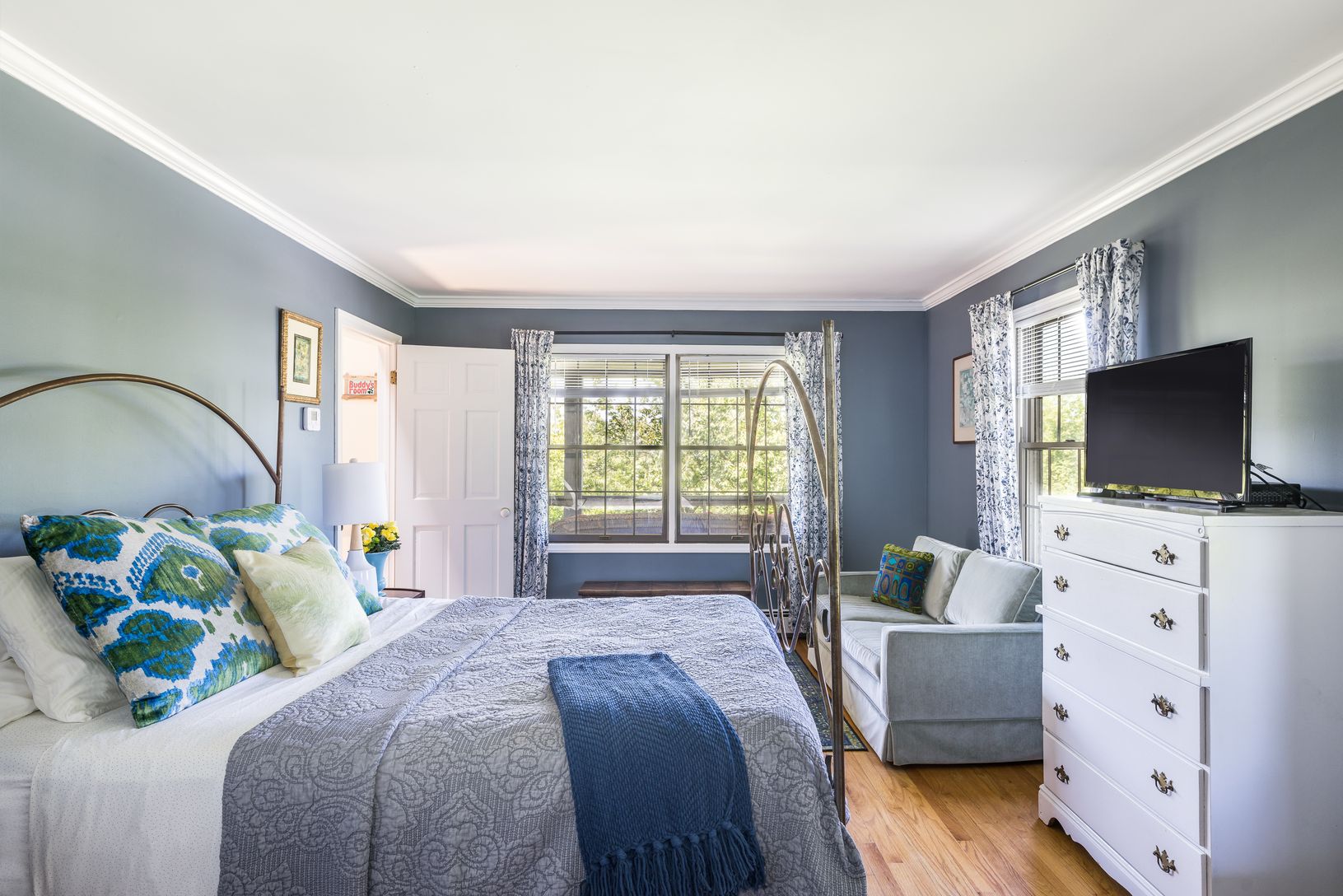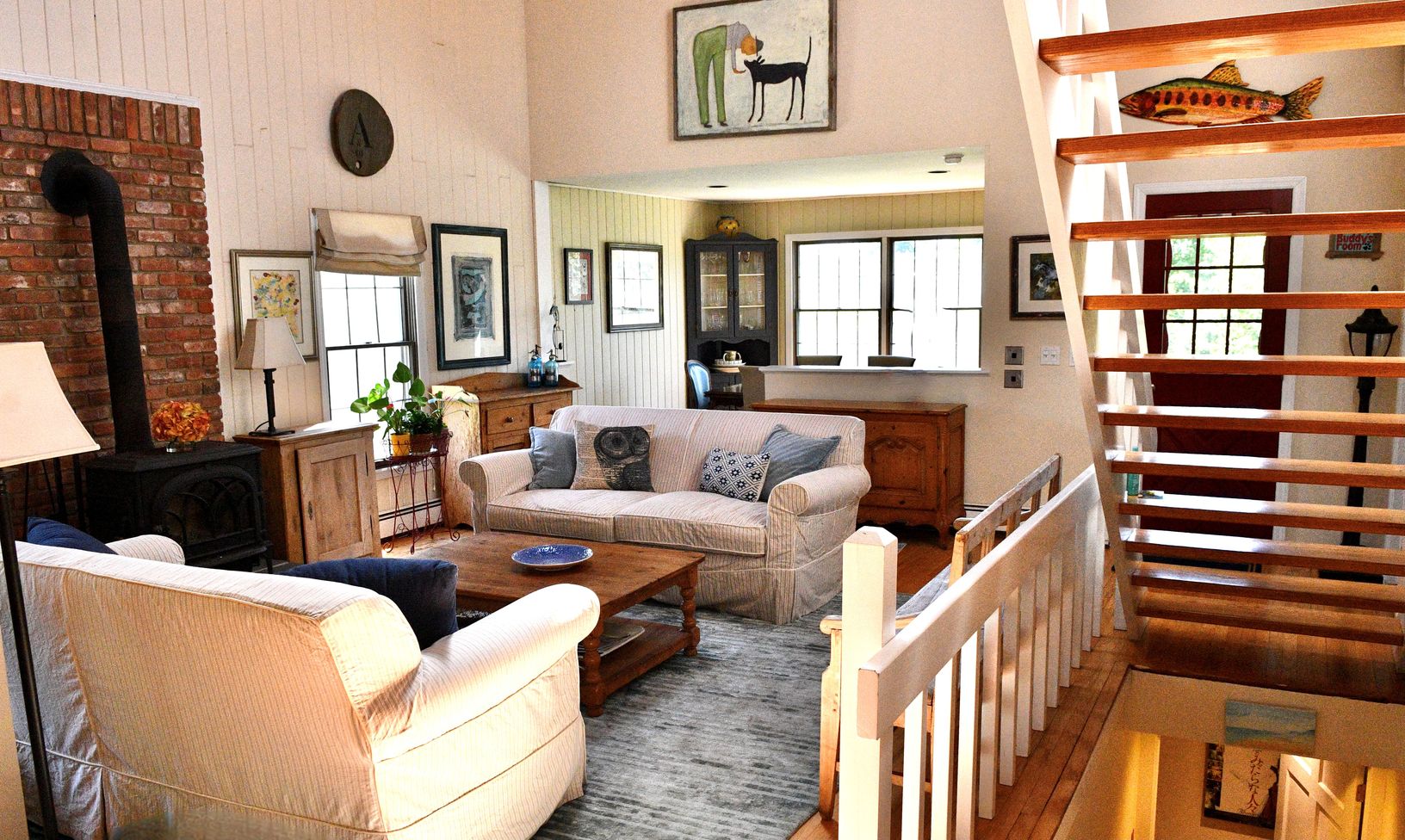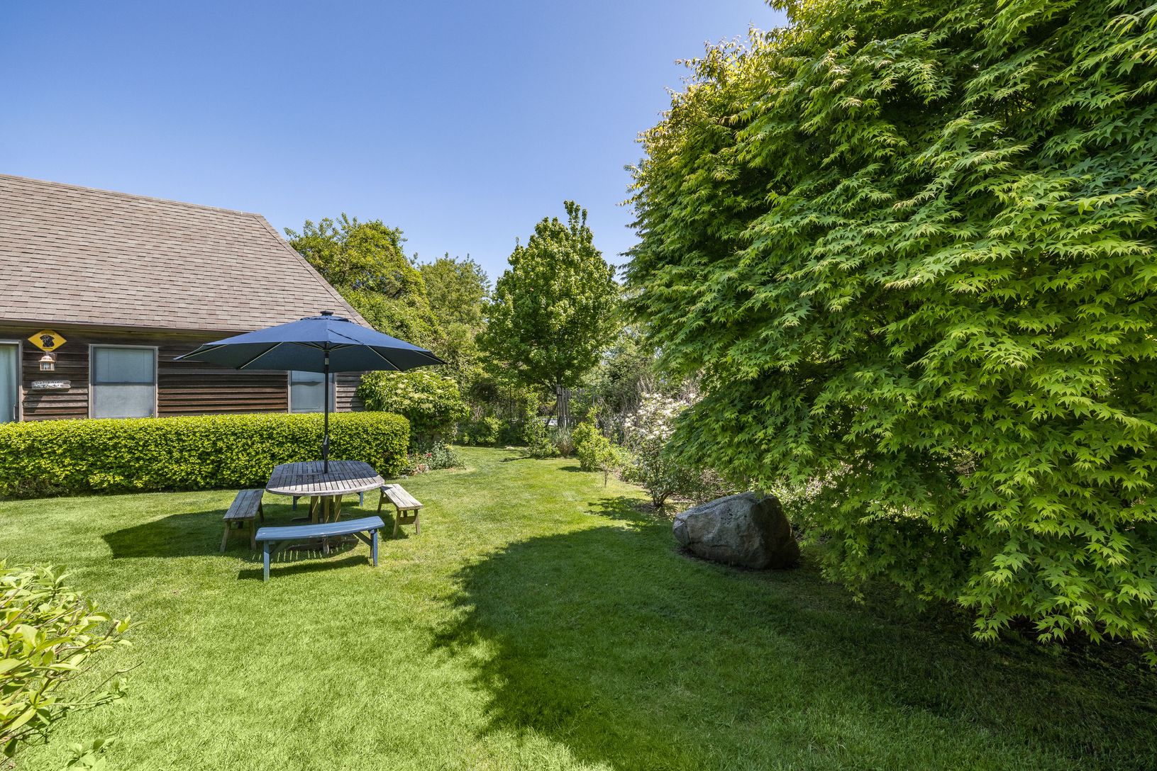 Once upon a time (1985), down a secluded lane, a special house was conceived. Accenting light and color, this 2 bedroom, 3 bath country cottage is replete with understated charm and unfettered style. Plenty of nooks and other creative spaces welcome relatives, friends, and overnight guests. A spacious eat-in kitchen, outfitted with a sub-zero refrigerator and a gas stove, etc., has heard lots of conversations around the country kitchen table