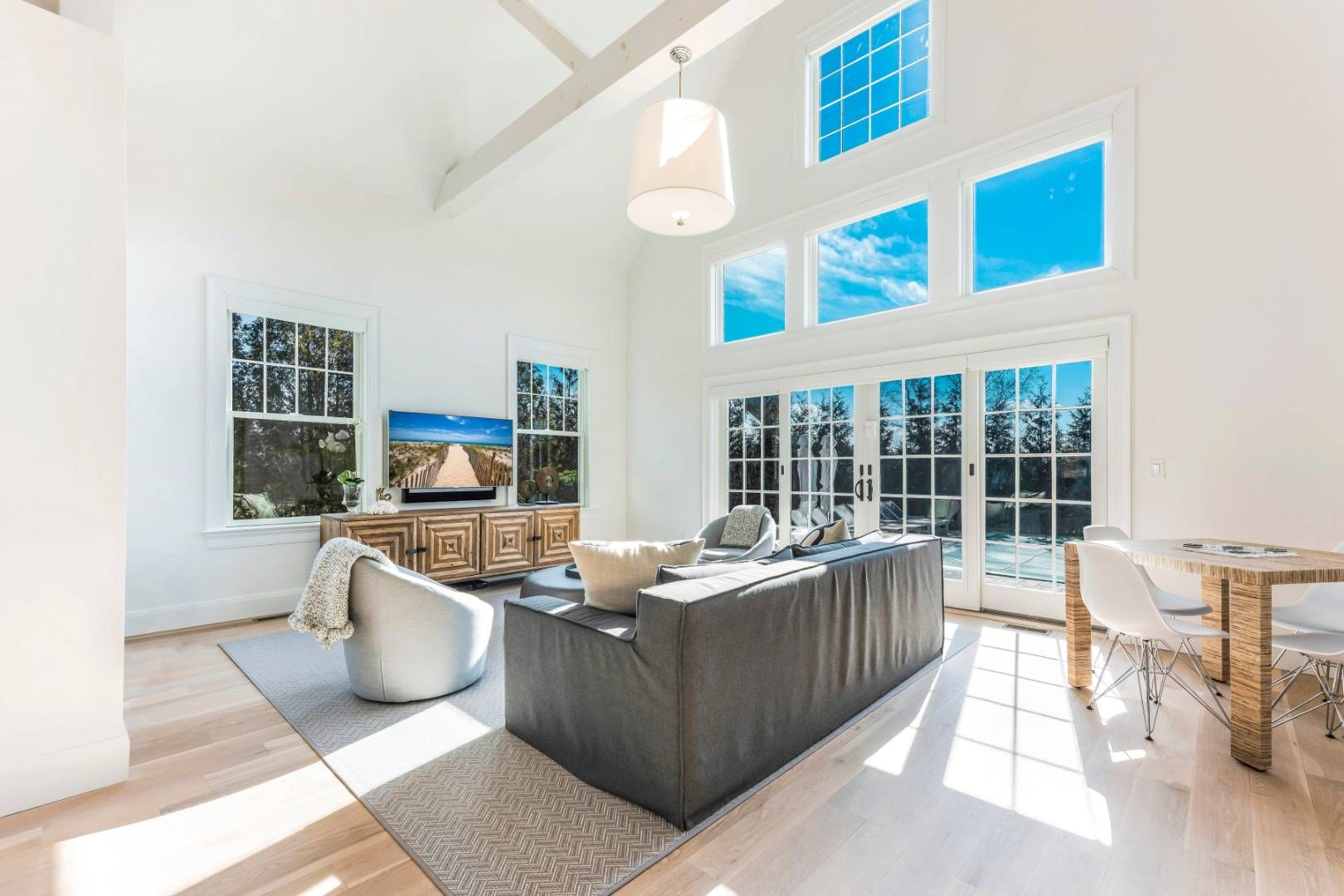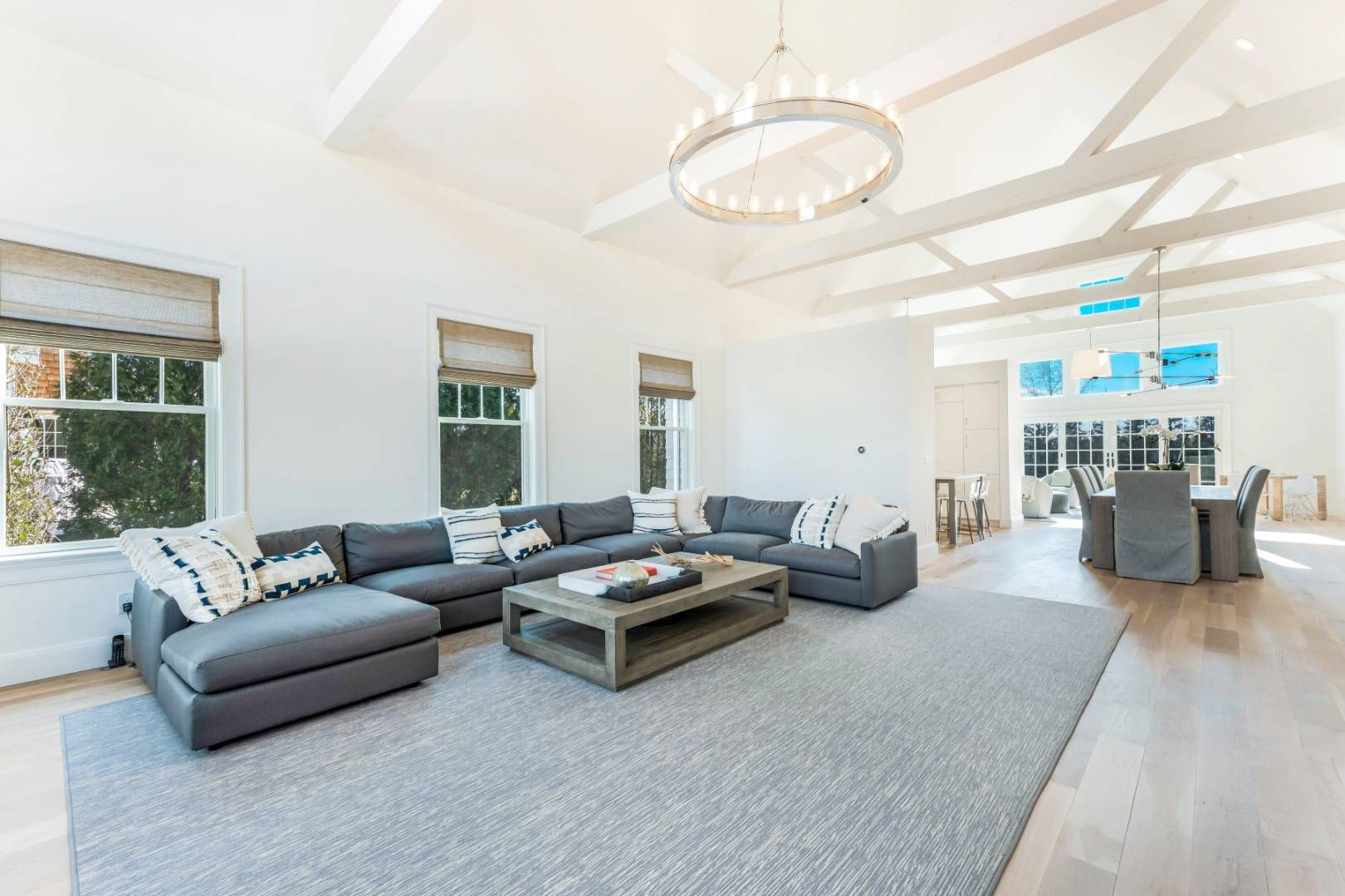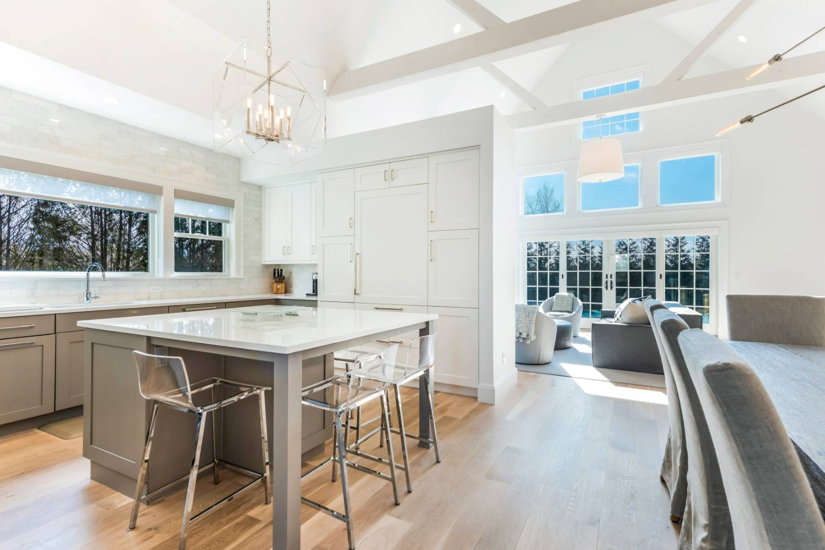 This stunning custom-designed Hamptons Traditional is being offered truly move-in ready, with a full home of beautifully curated furnishings ready to enjoy in ample time for summer. Conveniently located in Southampton, this 3800sf four bedroom, four and a half bath home has the open plan every buyer is looking for. As you enter through the covered front porch into the foyer you are immediately wowed by the 2 story vaulted great room running th