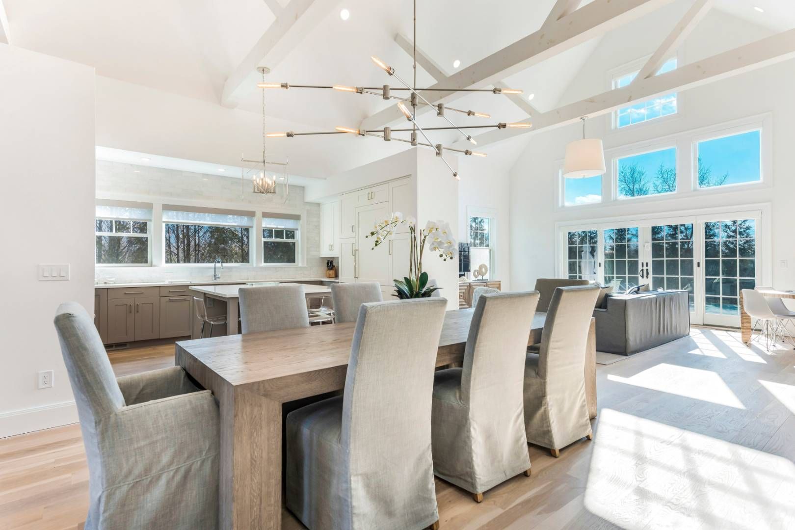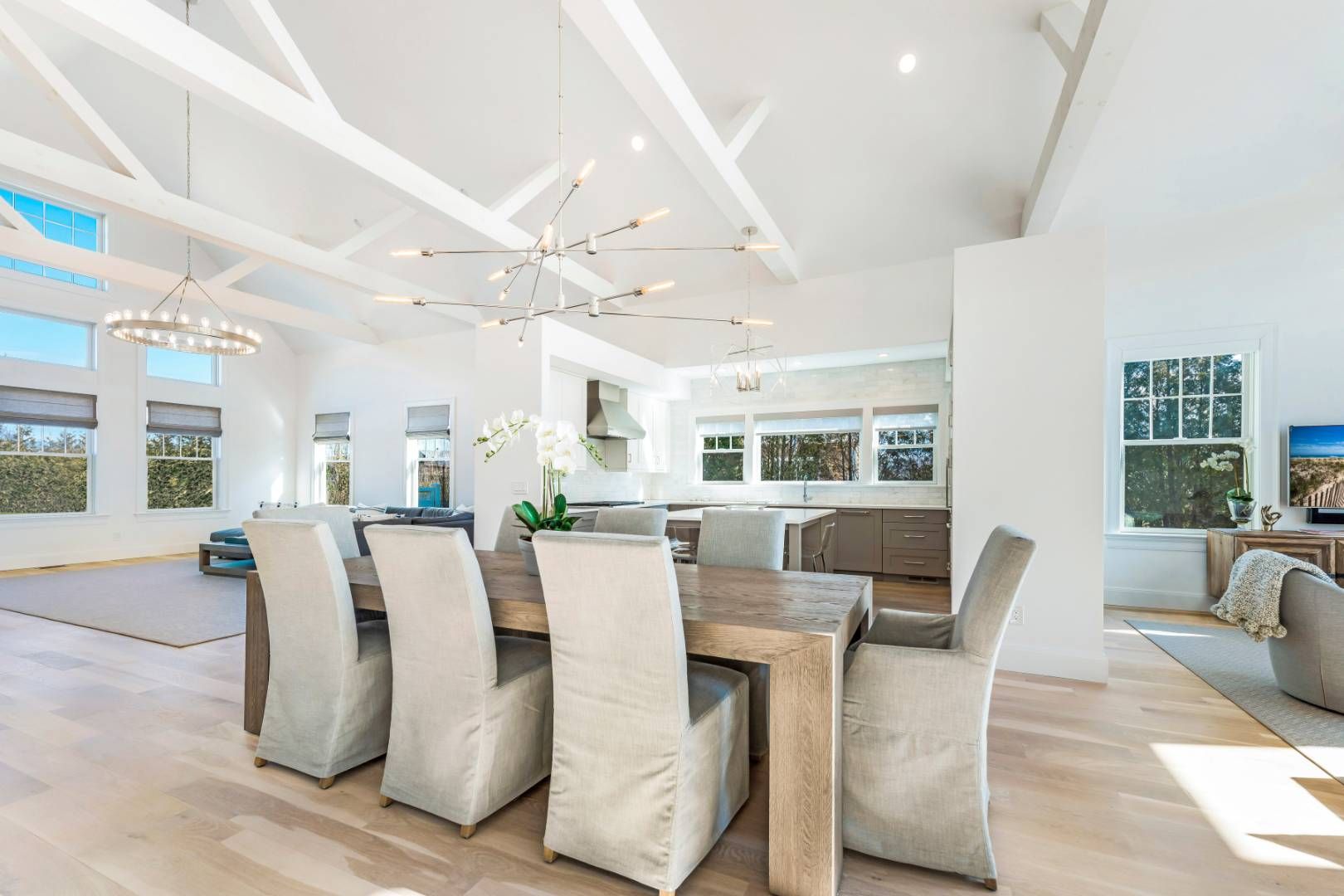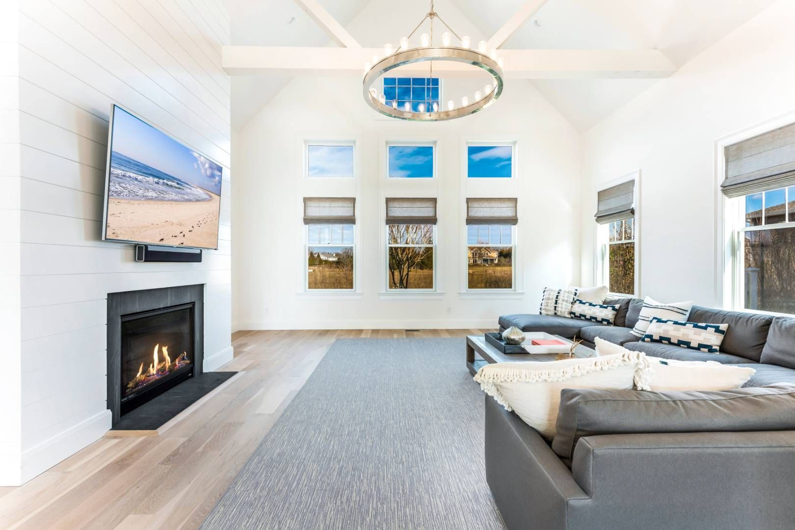 This stunning custom-designed Hamptons Traditional is being offered truly move-in ready, with a full home of beautifully curated furnishings ready to enjoy in ample time for summer. Conveniently located in Southampton, this 3800sf four bedroom, four and a half bath home has the open plan every buyer is looking for. As you enter through the covered front porch into the foyer you are immediately wowed by the 2 story vaulted great room running th