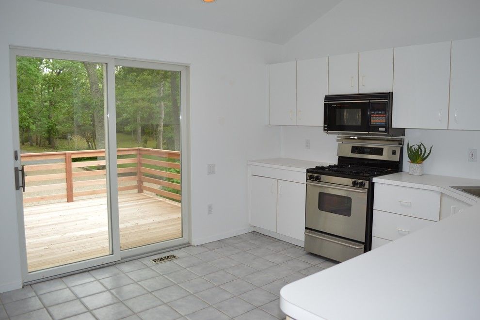 This lovely contemporary home is close to the villages of East Hampton and Sag Harbor and a short distance to the ocean beaches and all the Hamptons amenities, it features 3 bedrooms, 2 baths plus a large, bright 2nd story loft for an entertainment room or could be converted into a 4th bedroom and 3rd bath. A new mahogany deck welcomes you in the front and in the rear is a spacious over 2,000 sf new cedar deck that surrounds a large heated poo