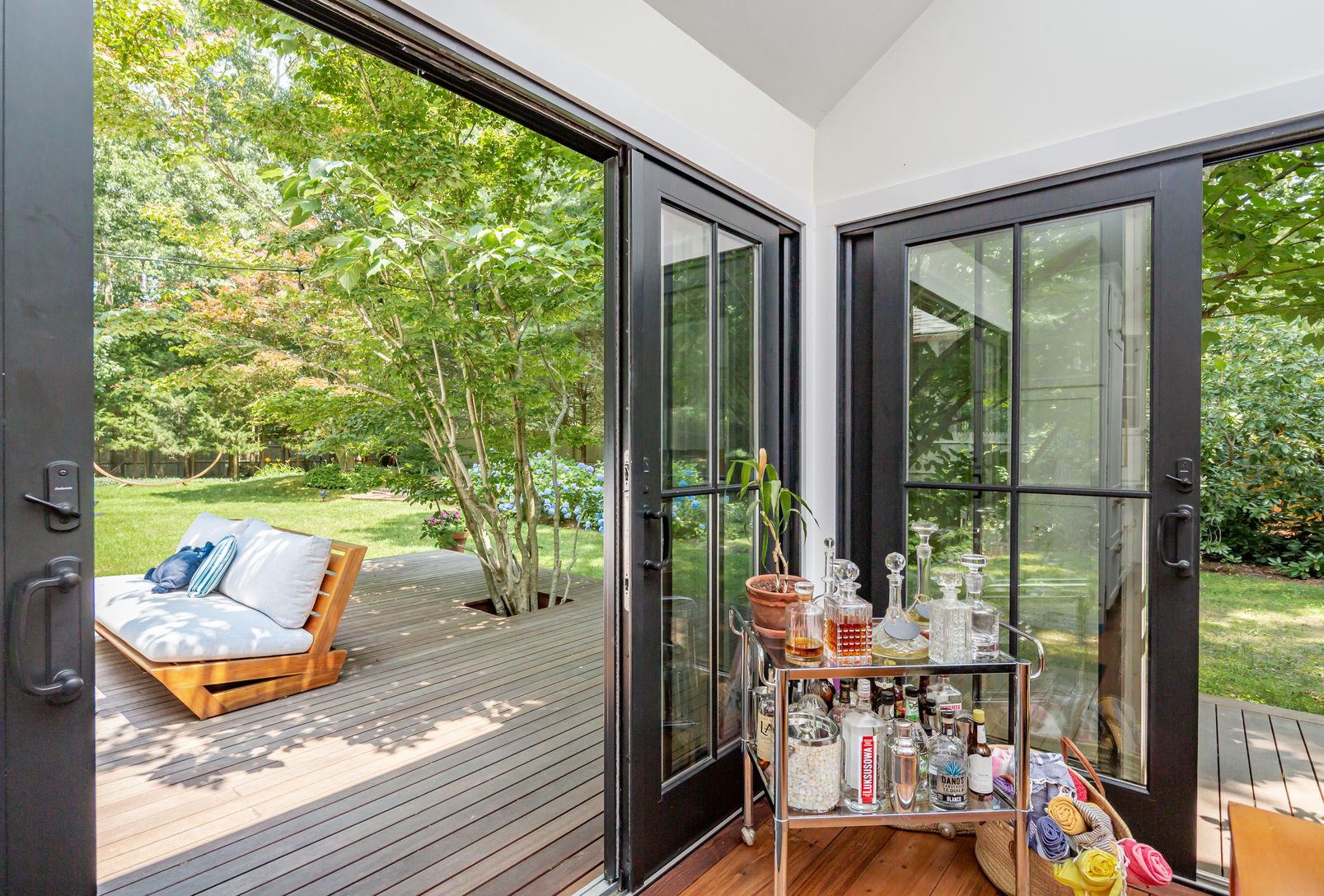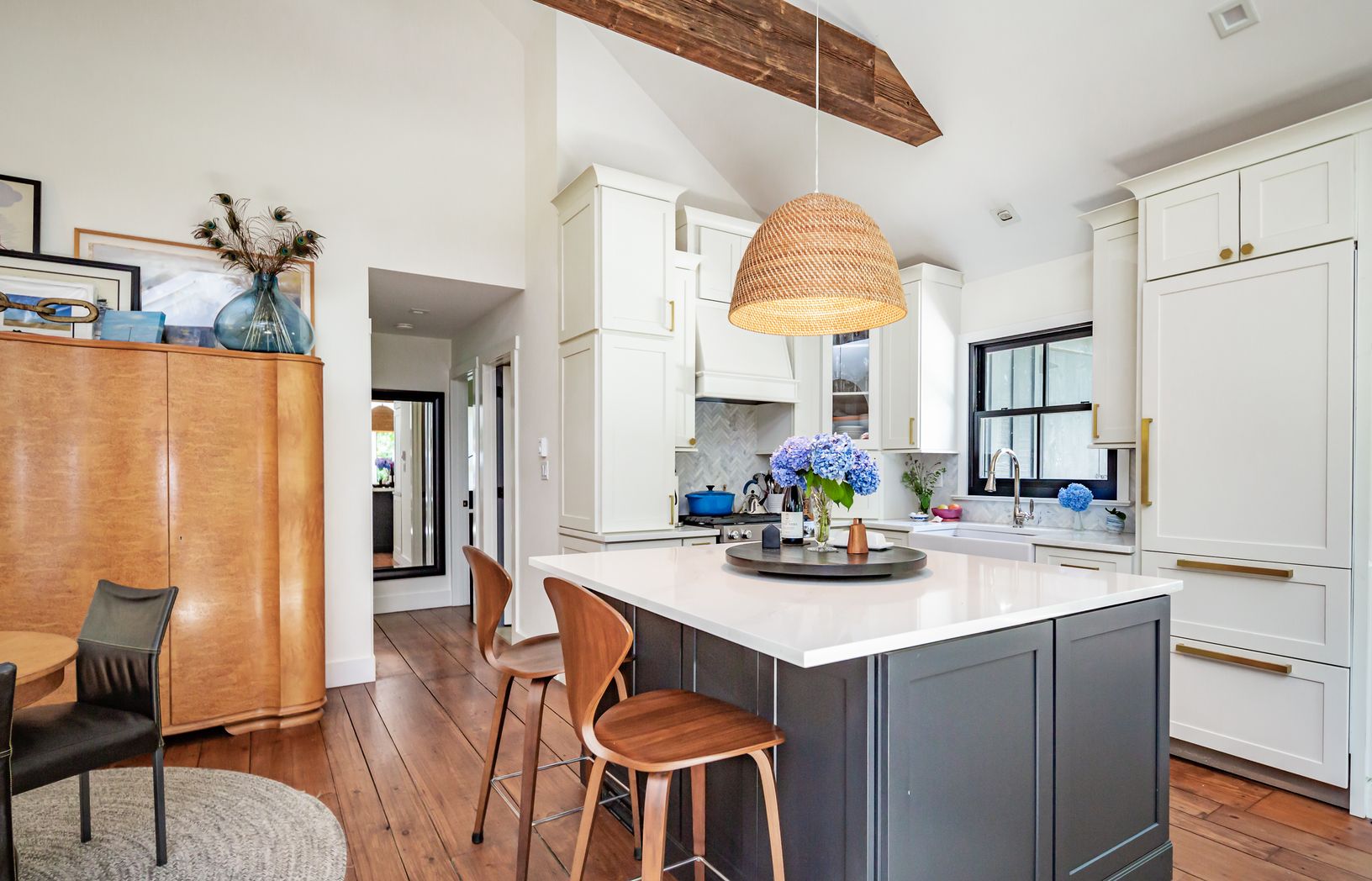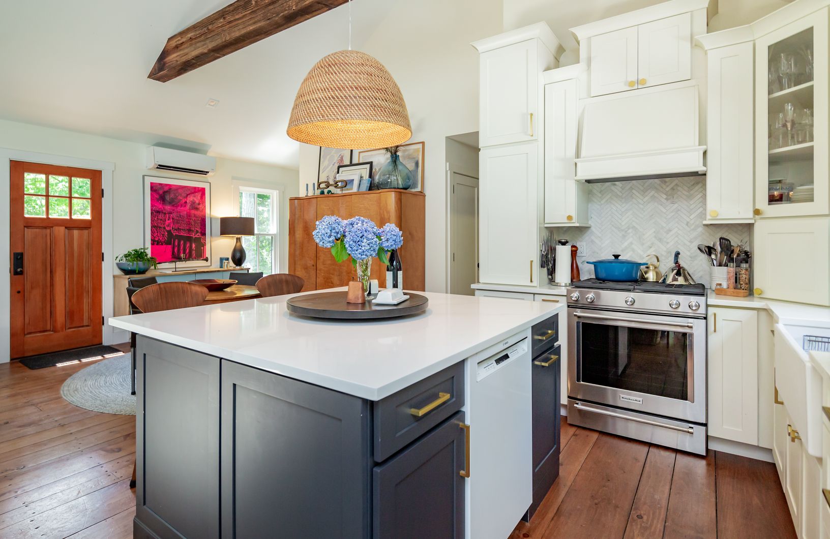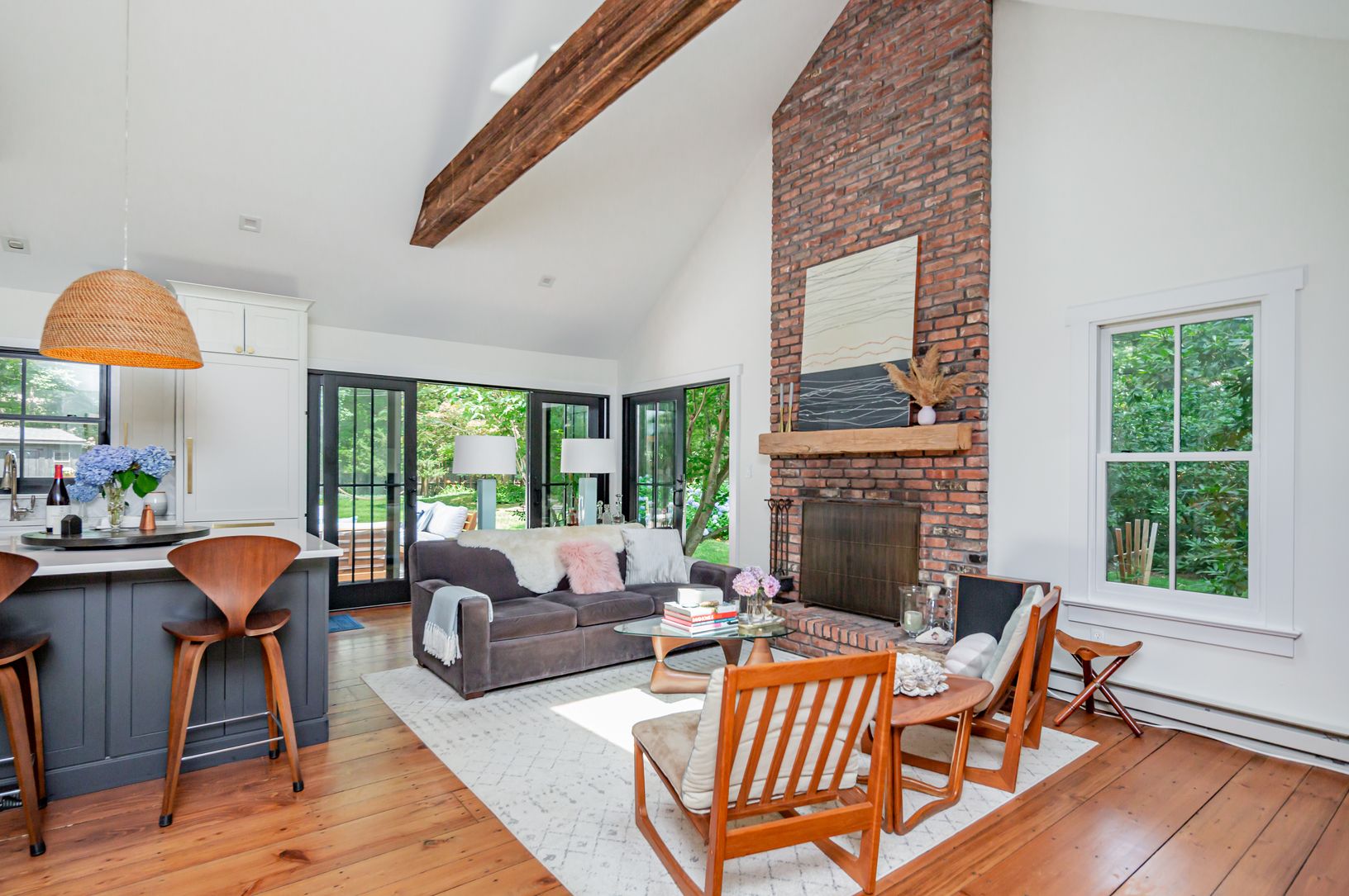 Located on a private half acre, moments to Gerard Drive and the Springs General Store, find this completely renovated beach house infused with style and charm throughout. Offering open living room with vaulted ceilings, reclaimed double wide plank floors, top of the line kitchen, and dining area. The master bedroom with ensuite bathroom and guest bedroom are tucked away on their own wing for privacy. There is a staircase to second story attic