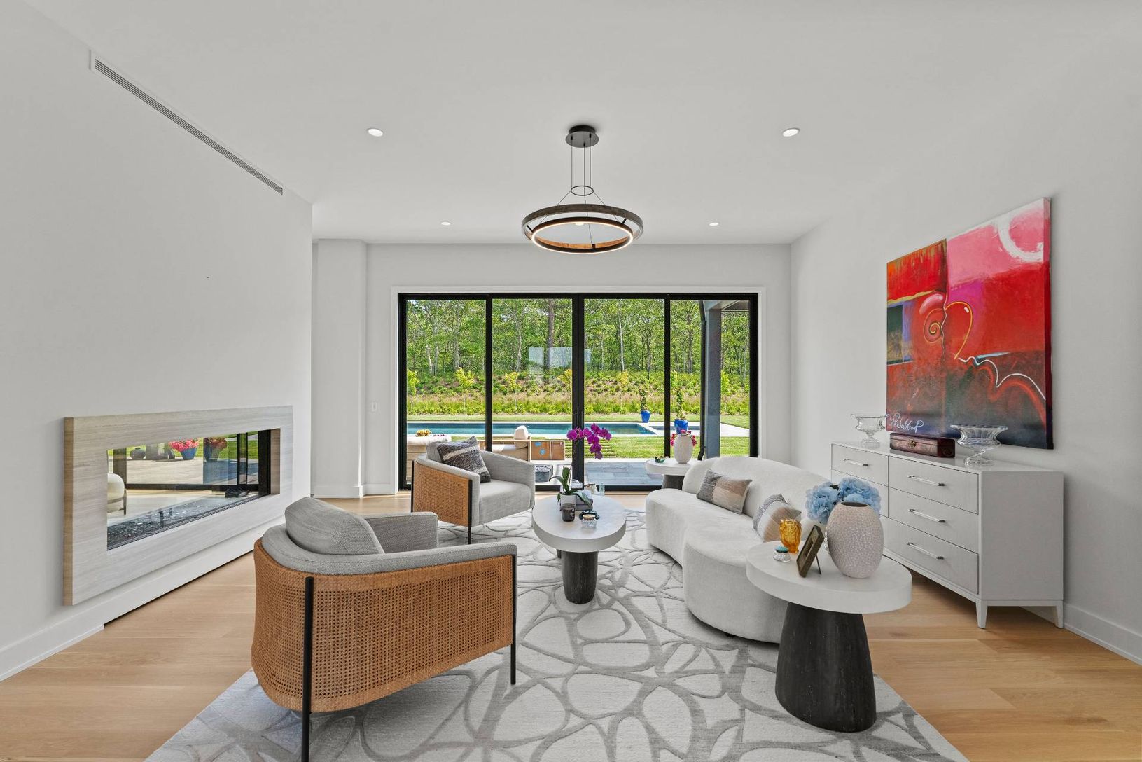 Welcome to an architectural triumph nestled in the heart of Southampton, where impeccable design, total privacy, and resort-style living converge on a grand scale. This newly constructed 8-bedroom, 9-bath estate spans over an acre of pristine grounds and redefines Hamptons luxury with bold modern lines and expansive open-air flow. Step inside to soaring ceilings, wide-plank white oak floors, and sunlit interiors designed for effortless eleganc