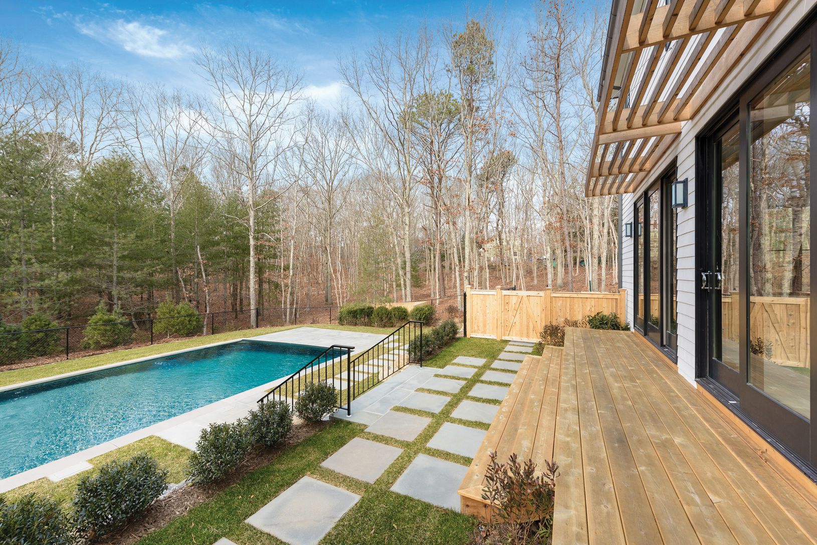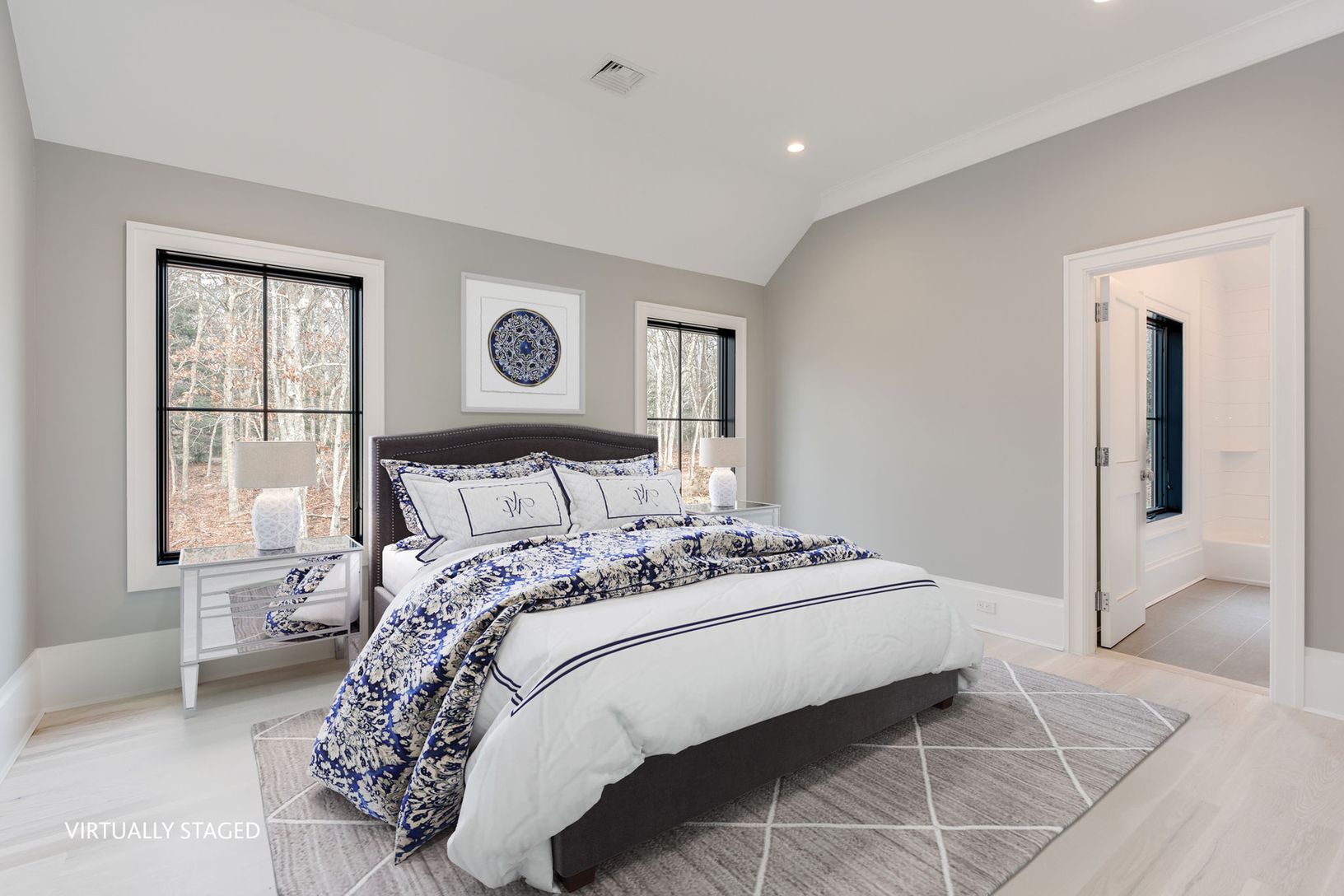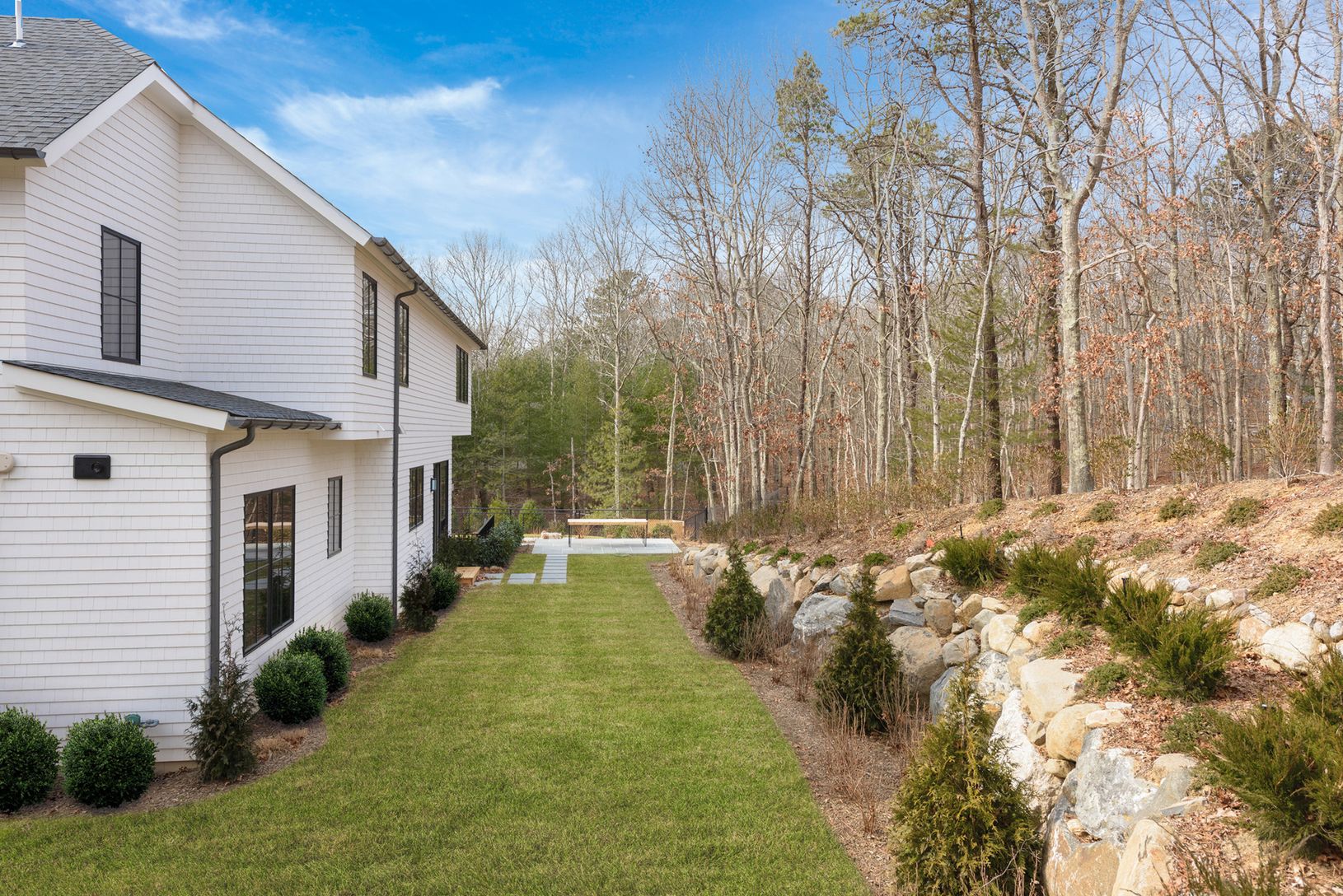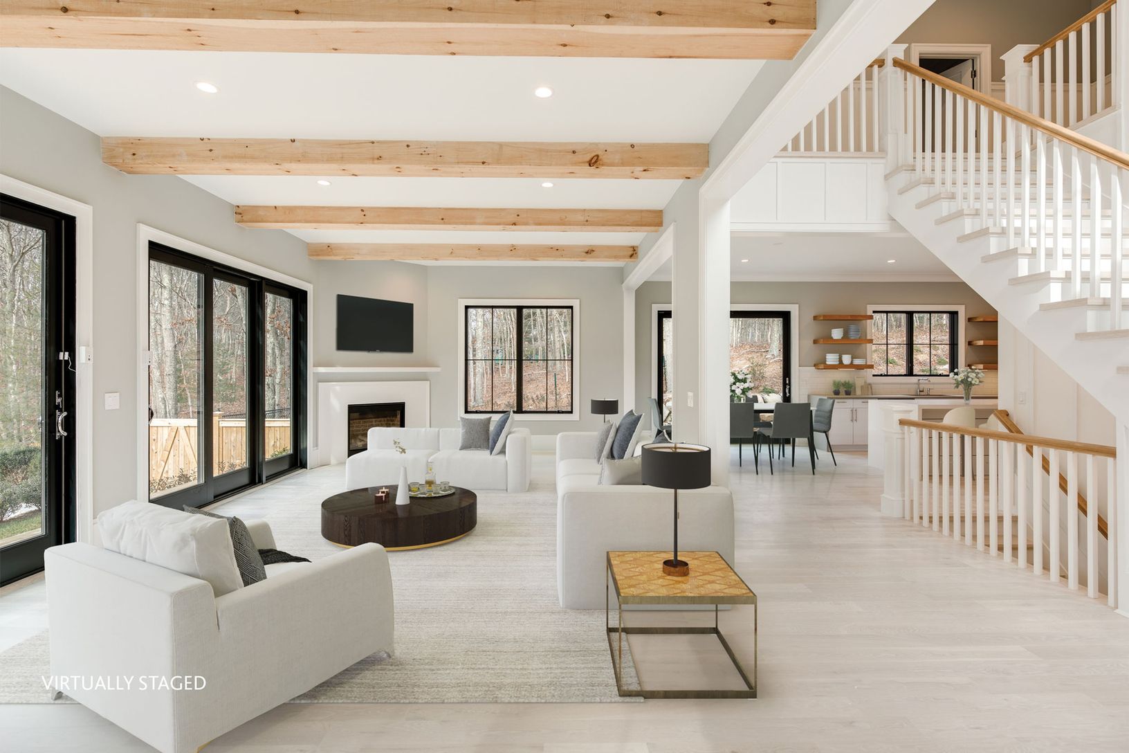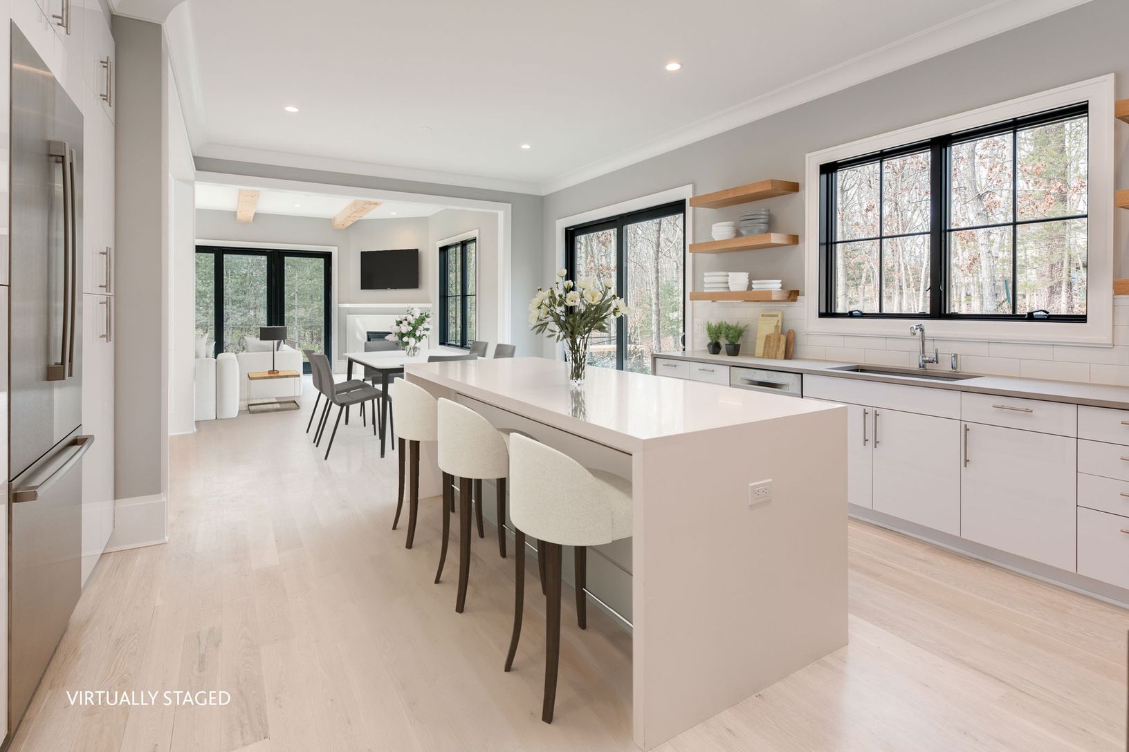 Discover an artfully crafted brand new construction modern barn-style home on a cul-de-sac in the East Hampton Village Fringe by one of the Hamptons' premier builders, Paul Porco. The 3,500+/- sq. ft. home offers five pristine en-suite bedrooms. Enter from the front porch to a double-height entry leading to light-filled open interiors featuring custom white wainscoting on walls and beautiful 5" pickled white oak flooring throughout, with expos