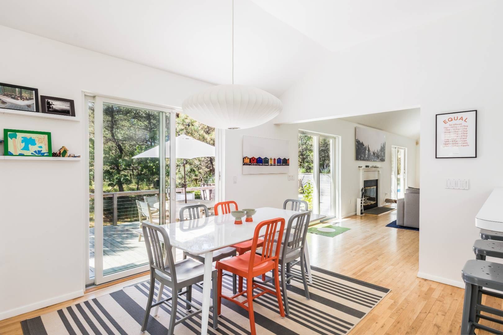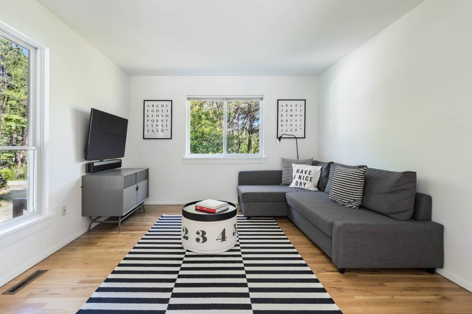 This 2,400 sq ft Amagansett Dunes home offers four bedrooms and two full baths on 0.84 acre moments to the ocean on a dead end road. Tucked privately down a secluded driveway the light-filled home has a spacious living room with fireplace and double height ceilings. The eat-in kitchen has a walk-in pantry/laundry room for storage and a dining area. Off the kitchen, the screened in porch is a great place to relax or dine in the warmer months. T