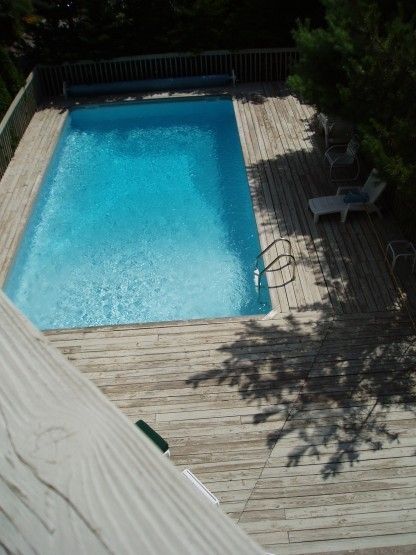 Spacious, private, up on a hill, with water views and more. Sunny roof deck on top of the world. Featuring 4 bedrooms, with brand new kitchen, 2.5 bathrooms and bonus room on the lower level. Outside you are surrounded by acres of woods, maincured open lawn, with sunny & heated salt water pool.