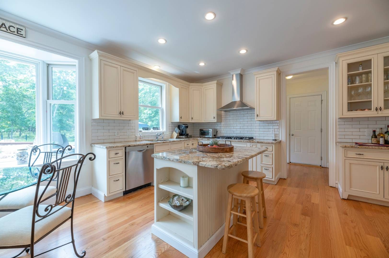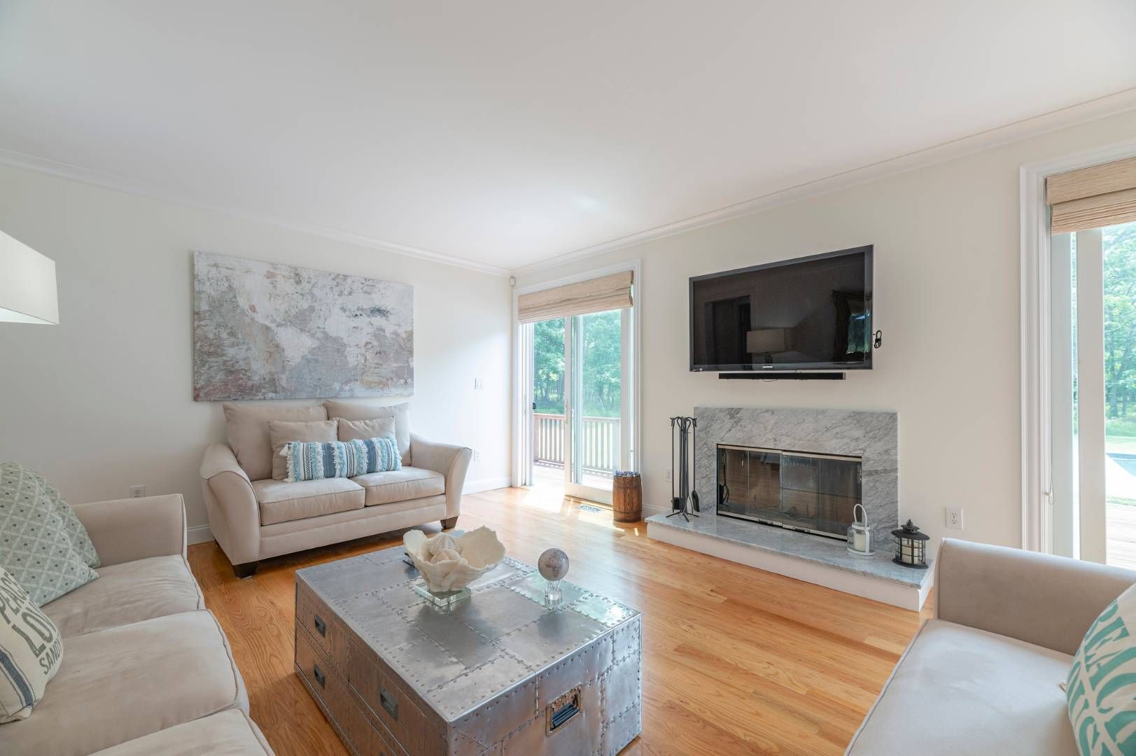 Situated on a private acre in Springs, your new home awaits! This spacious 4000 sq ft home features five bedrooms, four full baths and one half bath. A beautiful open kitchen and great room has nice high ceilings with lots of natural light. The house is great for guests, and entertaining. Set back off of Wildflower Lane, you have plenty of space and privacy indoor and out. Outside you have a nice front yard with a covered porch and in back, a