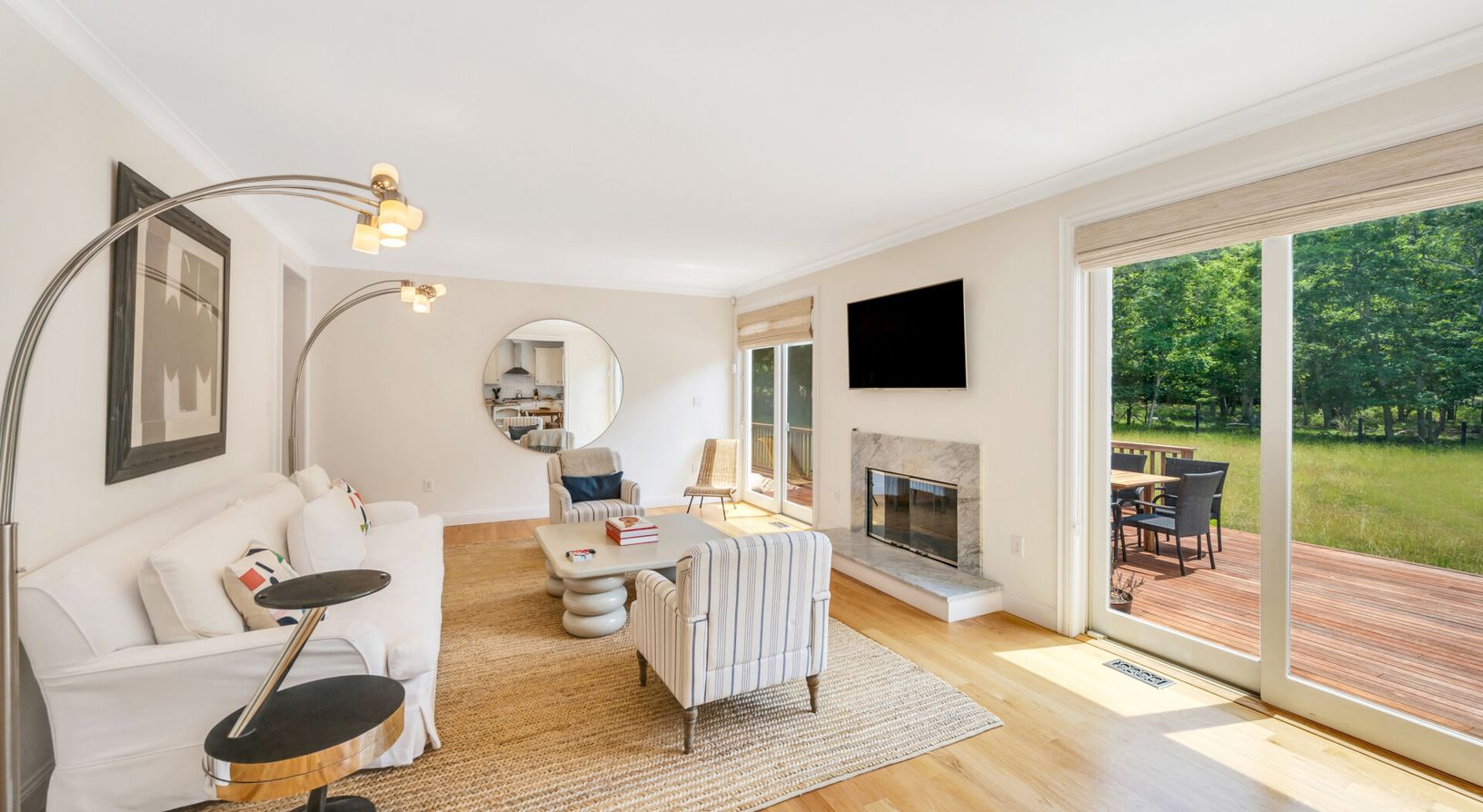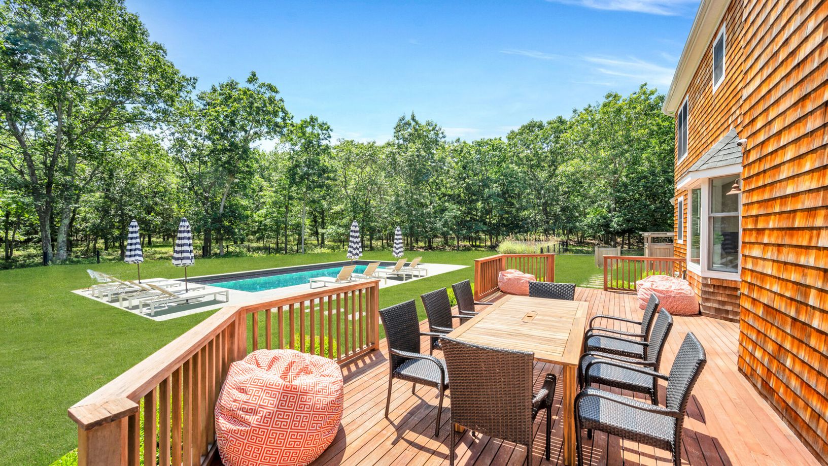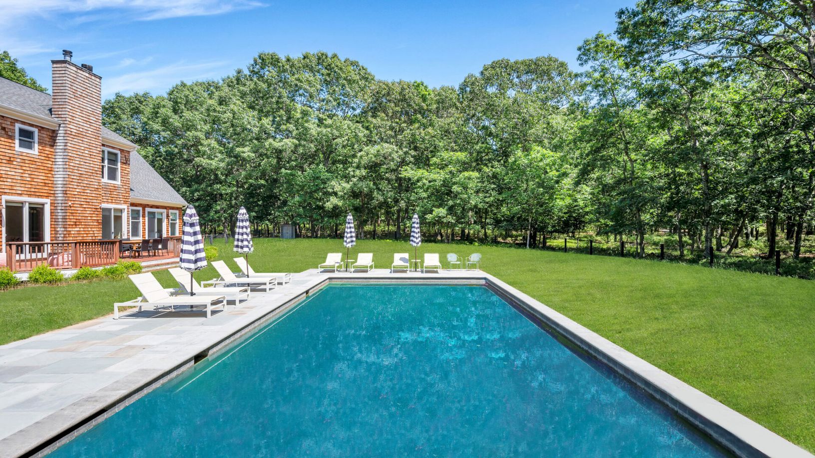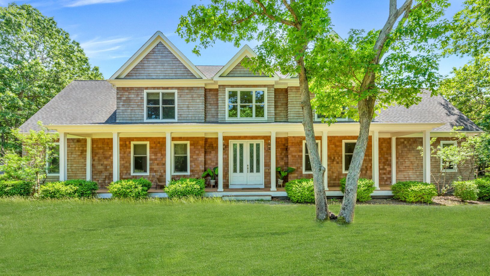Experience luxurious living at this Nantucket-style traditional on a private compound in East Hampton. The 4,000 square-foot-plus home, abutting a 17-acre natural reserve, offers impeccable and effortless outdoor-indoor living. As you drive up, you will see the massive front lawn and extensive covered front porch, a p