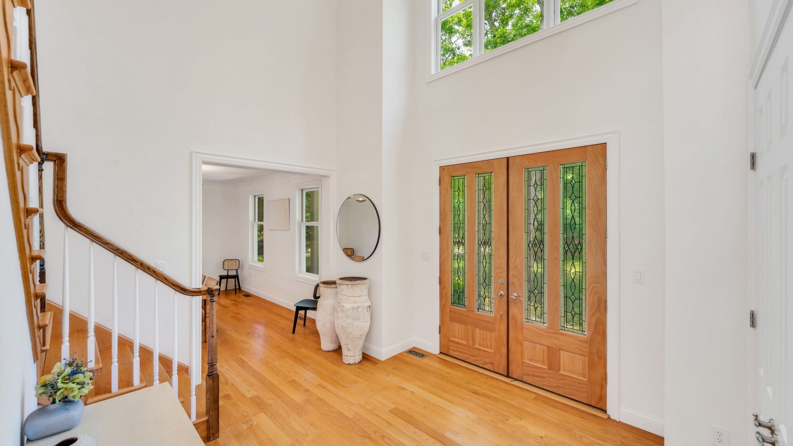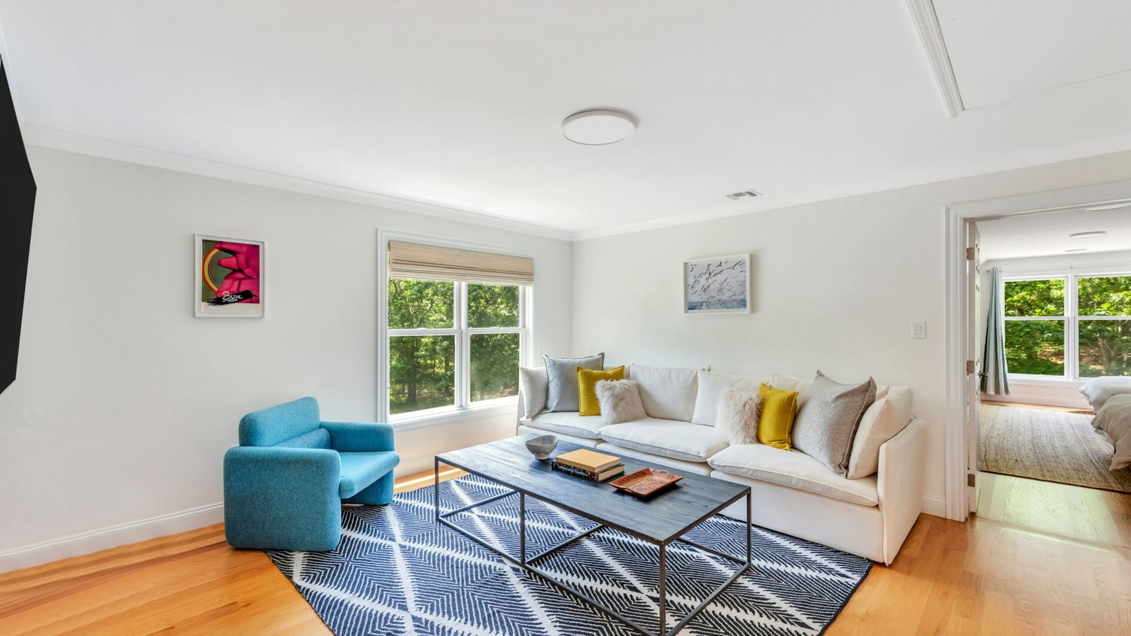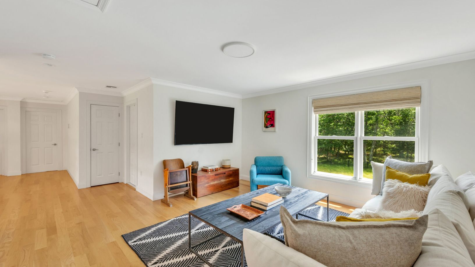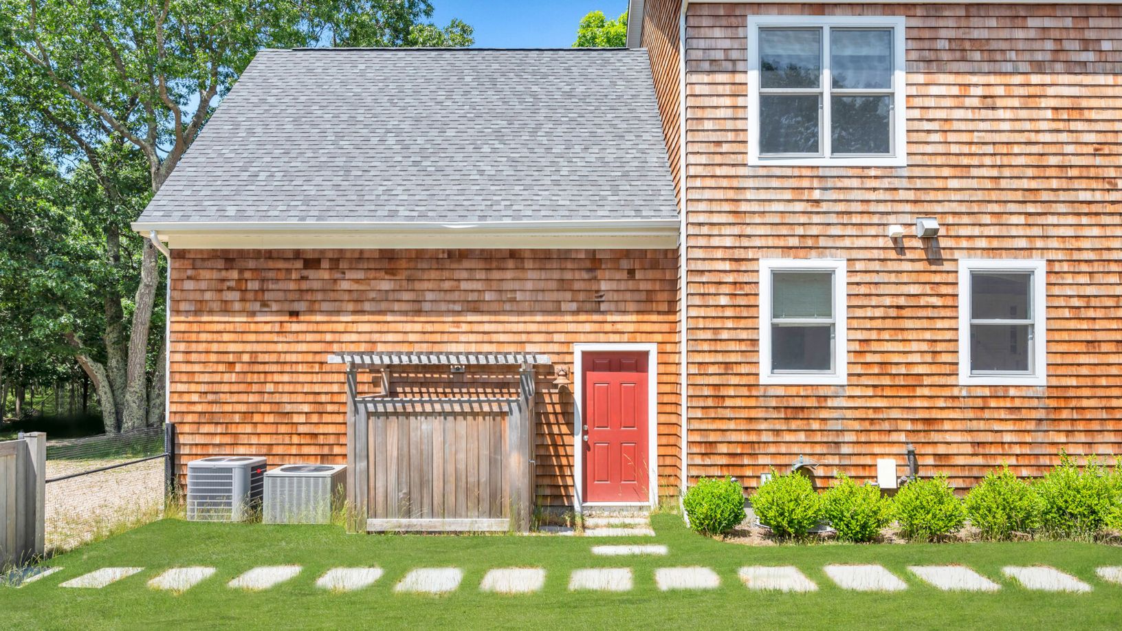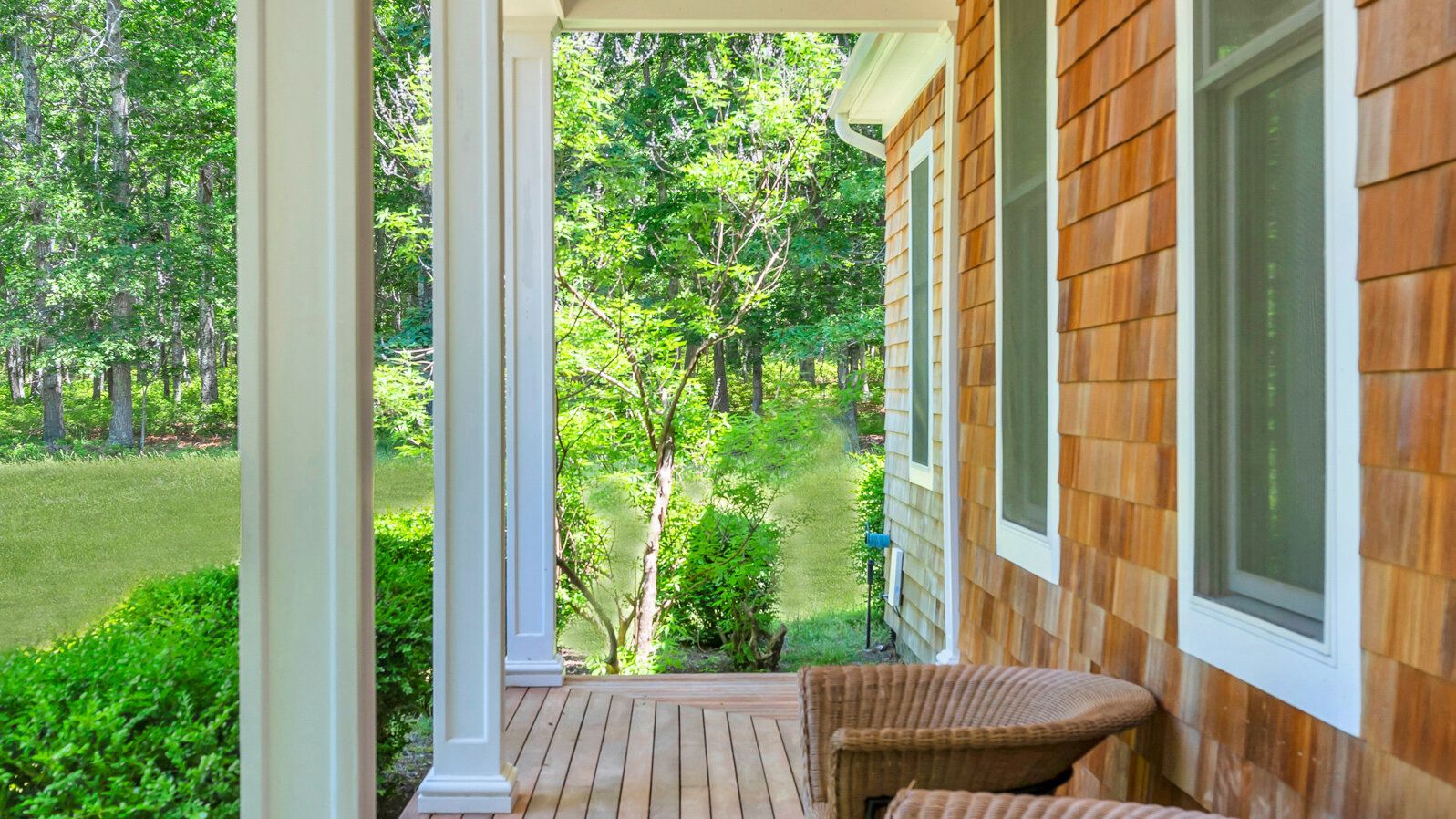 Experience luxurious living at this Nantucket-style traditional on a private compound in East Hampton. The 4,000 square-foot-plus home, abutting a 17-acre natural reserve, offers impeccable and effortless outdoor-indoor living. As you drive up, you will see the massive front lawn and extensive covered front porch, a p