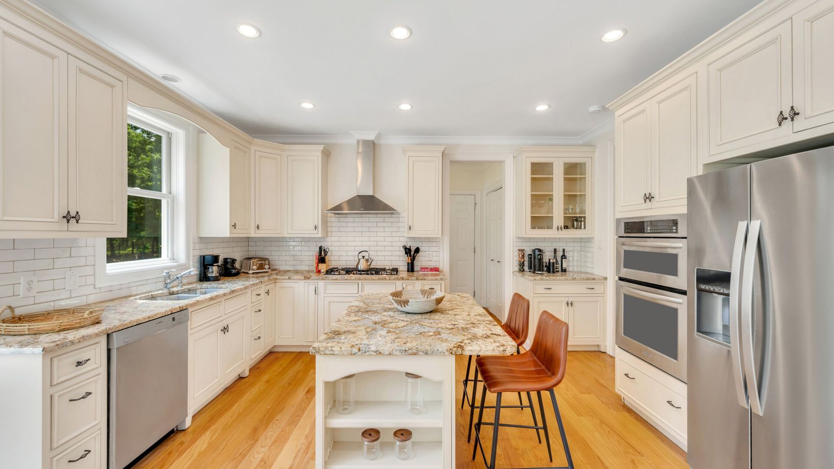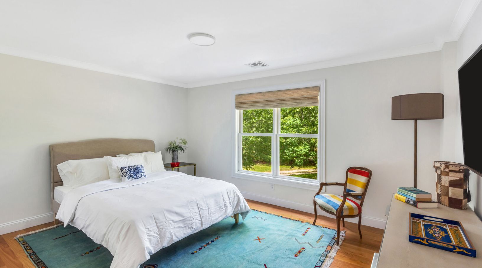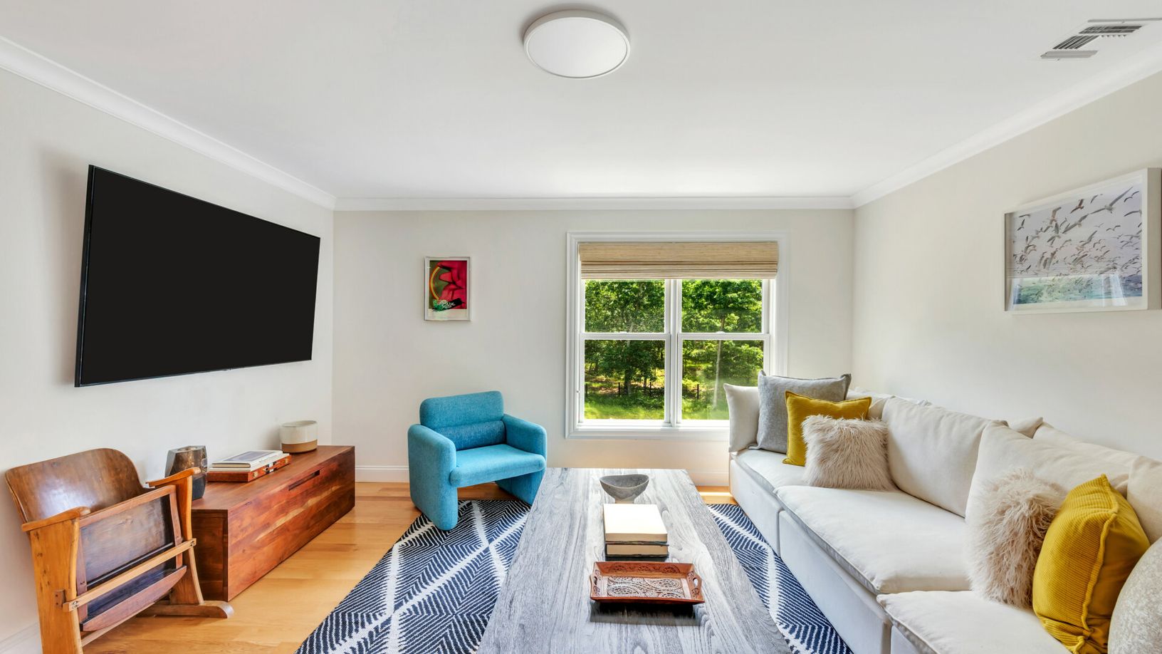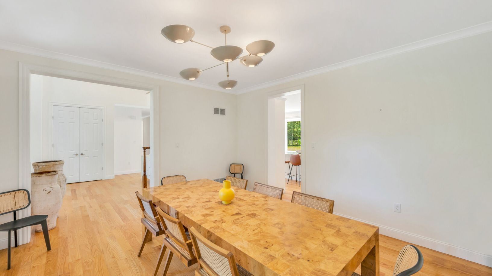 Experience luxurious living at this Nantucket-style traditional on a private compound in East Hampton. The 4,000 square-foot-plus home, abutting a 17-acre natural reserve, offers impeccable and effortless outdoor-indoor living. As you drive up, you will see the massive front lawn and extensive covered front porch, a p