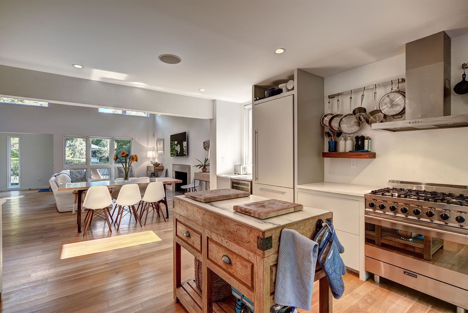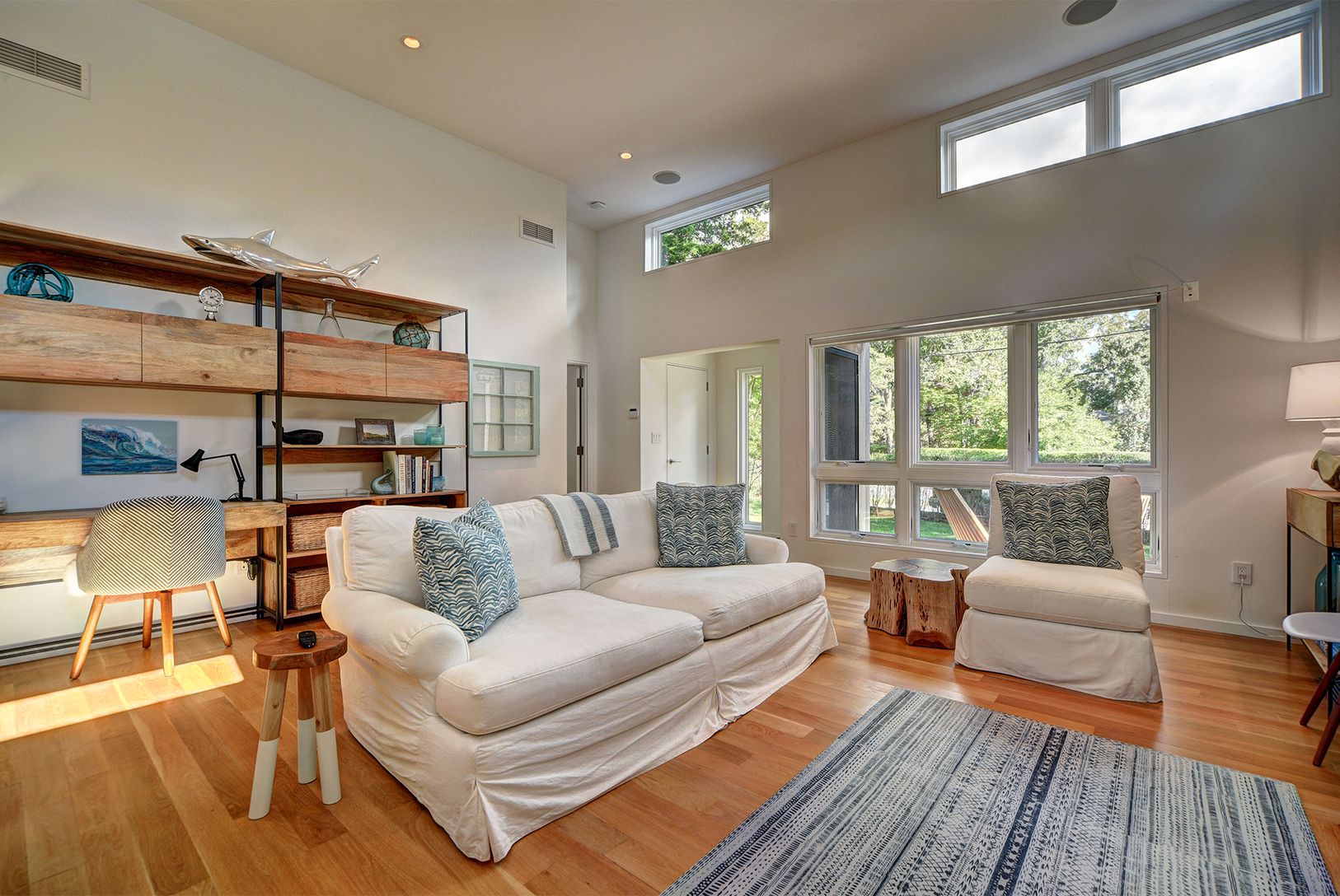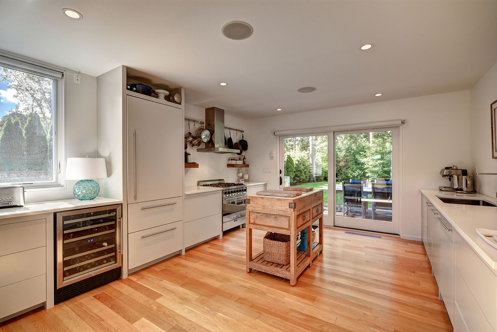 Perfectly turnkey and like-new Modern in East Hampton, just a few blocks from the beach. The home was built in 2014 and is in flawless condition. It includes three bedrooms, two baths, and 1,500+/- sf of living space over one level. High-end architecture and construction featuring a façade balancing natural stucco with gorgeous cedar elements. The open concept floor plan includes a spectacular great room, with fireplace and high ceiling, flows