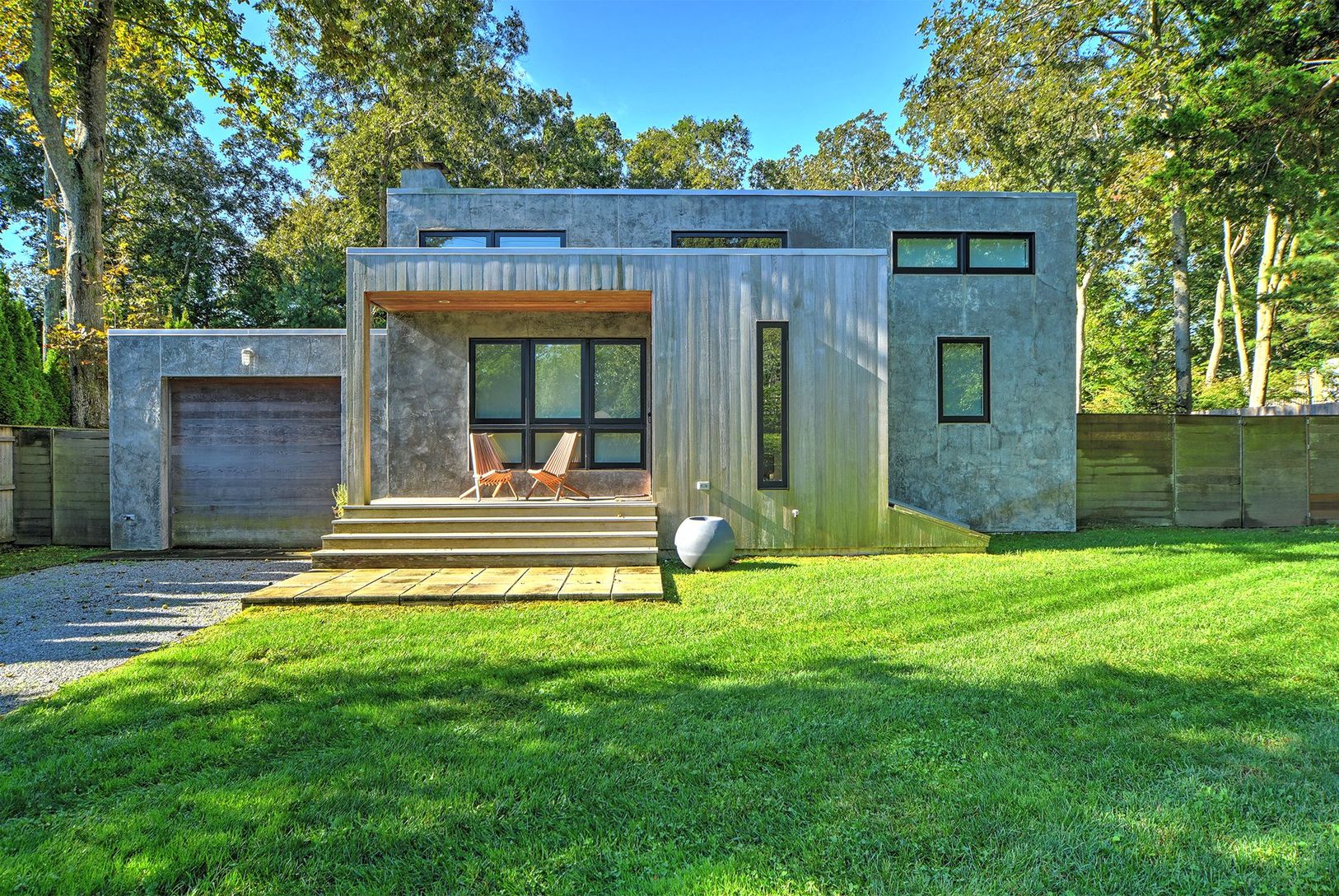 Perfectly turnkey and like-new Modern in East Hampton, just a few blocks from the beach. The home was built in 2014 and is in flawless condition. It includes three bedrooms, two baths, and 1,500+/- sf of living space over one level. High-end architecture and construction featuring a façade balancing natural stucco with gorgeous cedar elements. The open concept floor plan includes a spectacular great room, with fireplace and high ceiling, flows