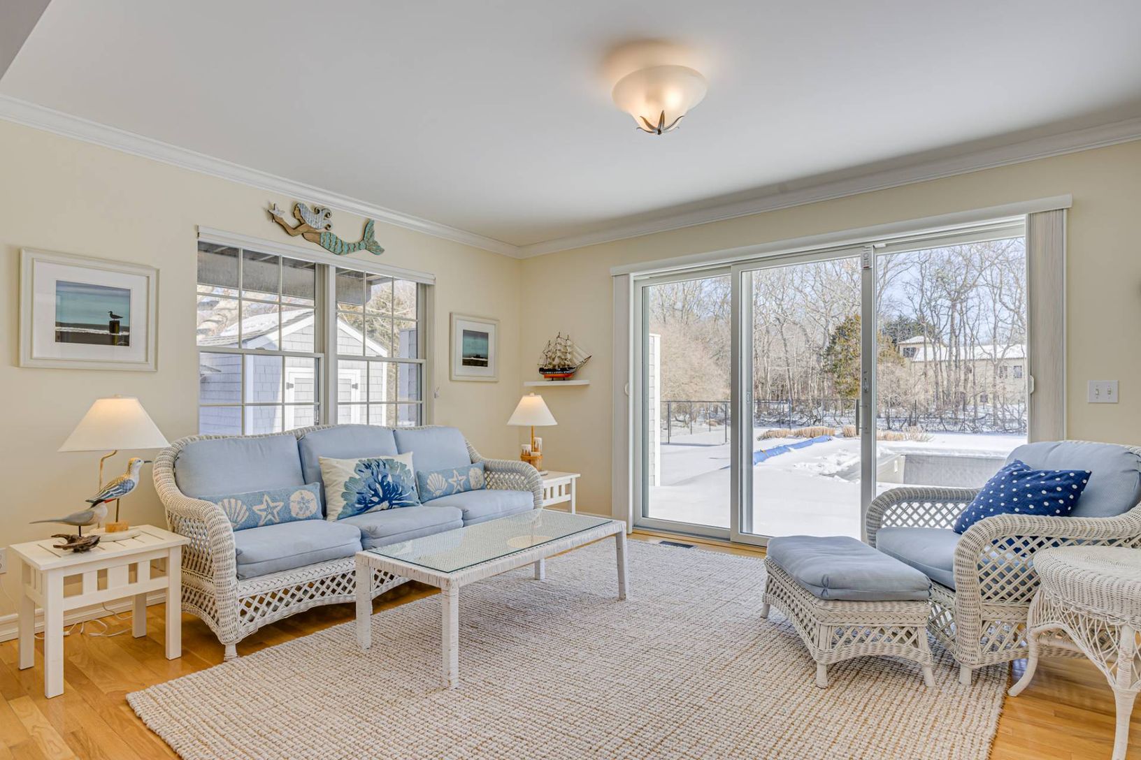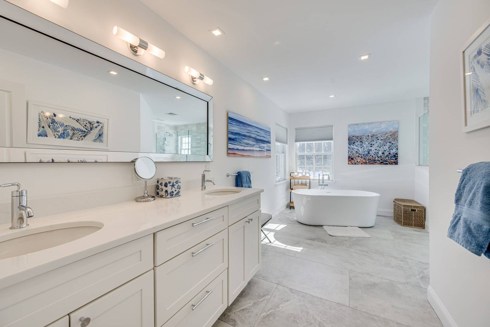 On 1.4 beautifully landscaped acres, set on a coveted court in Water Mill and surrounded by substantial homes and estates, this meticulously maintained 4-bedroom, 5-bath residence pairs stylish interiors with resort-style amenities, including a heated pool and private tennis. Peaceful and private with mature plantings and vibrant summer blooms, it's a picture-perfect setting for effortless Hamptons living. Inside the 2,868 +/- SF home, the mai