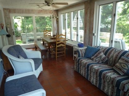 Adorable cottage located on a private waterfront street, right outside the Village. This charming home features 2 bedrooms with 2 baths, an open sitting and dining area with lots of natural light, and extensive decking. Expansion possibilities and water access at the end of the street.