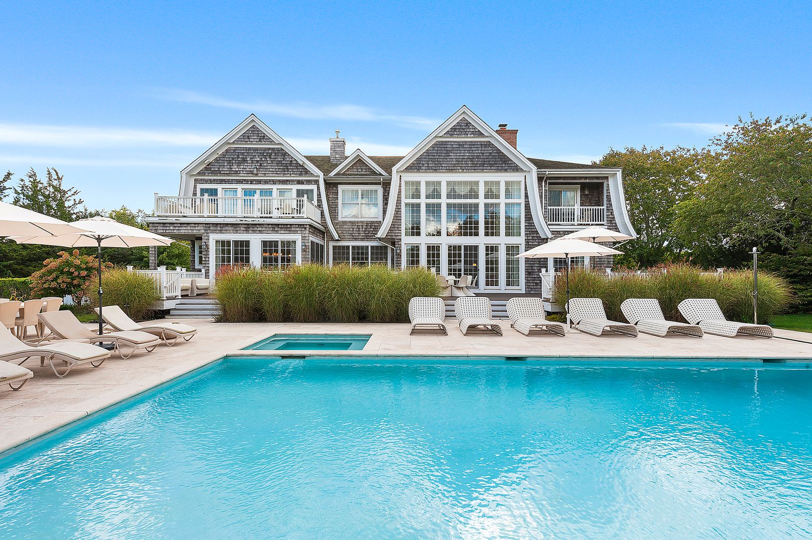 Perfectly sited South of the Highway on two beautifully landscaped wooded acres rests this stunning six bedroom, seven and a half bathroom estate just minutes from Flying Point Beach, the fine boutiques and restaurants of Southampton Village, and the town of Water Mill! Every detail of this grand 8,600 square foot residence spanning three spacious levels has been meticulously crafted and maintained for the ultimate in luxury living and enterta