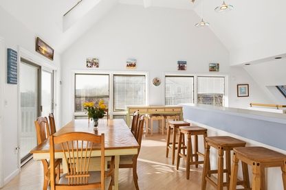 Deeded Hither Hills Ocean Access comes with this spacious, light & bright, 4 bedroom 2 bath beach house. Open floor plan with cathedral ceilings in main living area with glass sliders out to large wrap aound deck. This house has a great flow for entertaining. The Master bedroom is on the main level. Downstairs there are 3 bedrooms, 1 bath and a second living room/ den. Deck on the lower level as well.