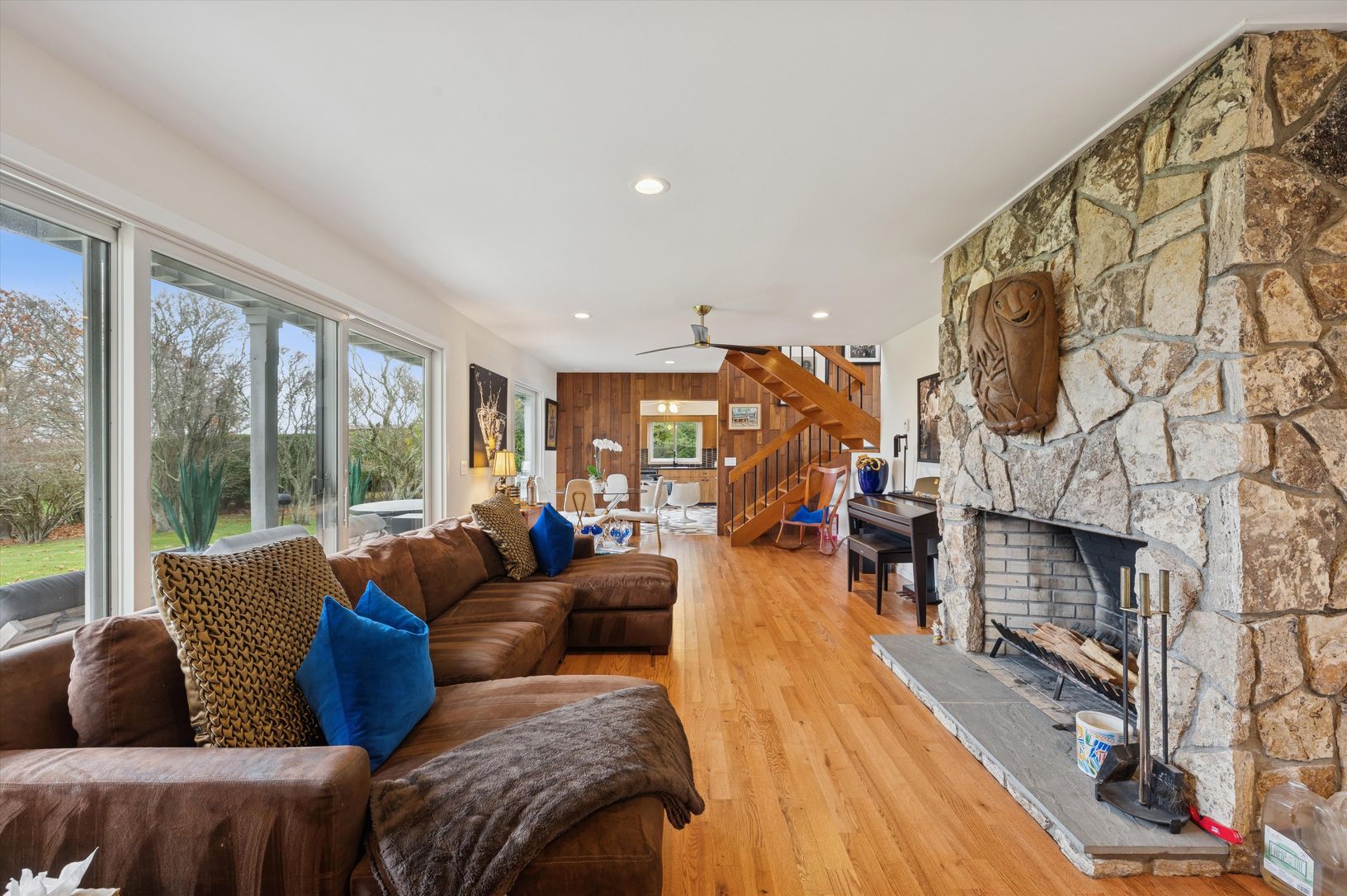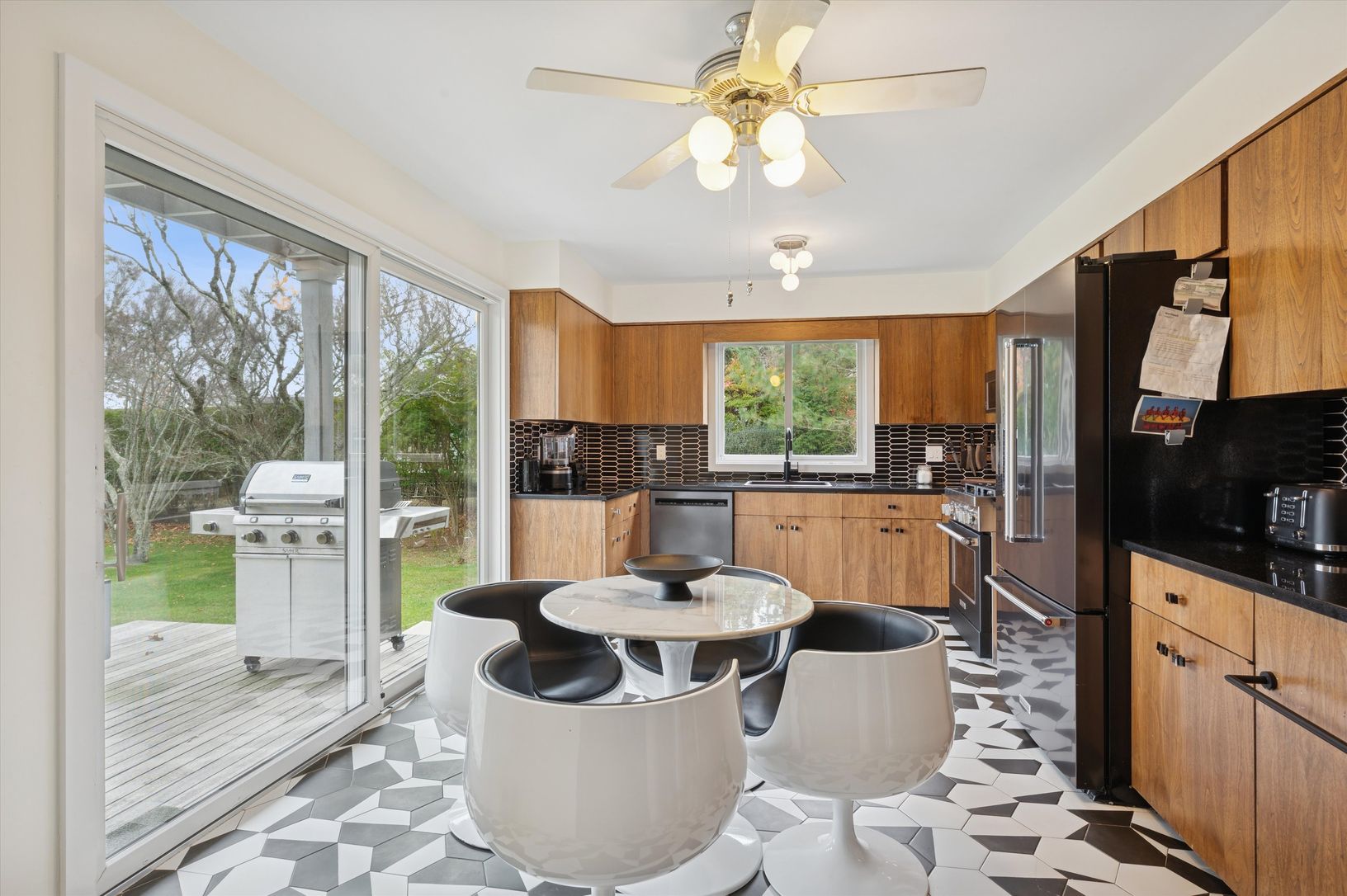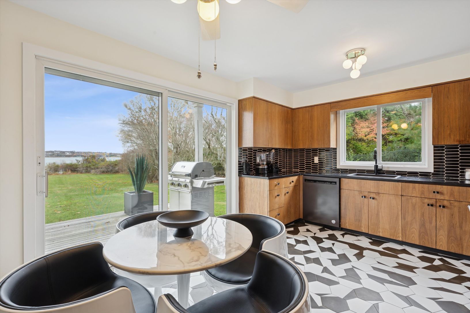 Discover a stunning retreat nestled on the shores of Lake Montauk, where modern elegance meets mid-century charm. This newly listed property boasts a sprawling yard offering breathtaking views of the serene lake. The recently renovated kitchen and bathrooms exude sophistication and style, featuring high-end finishes and contemporary fixtures that cater to the most discerning tastes. Step inside to find a blend of mid-century interior design, h