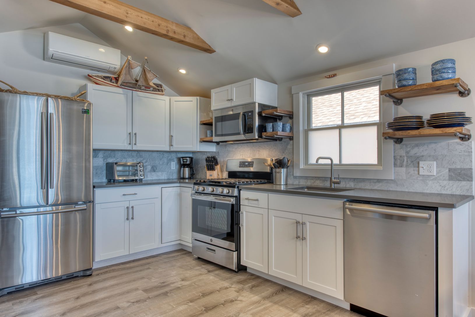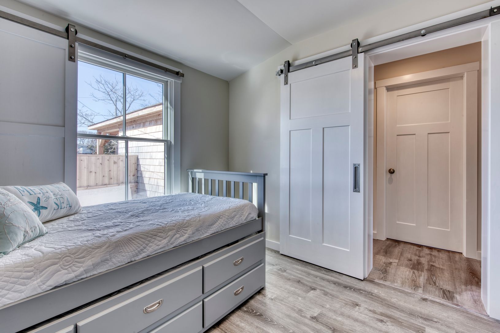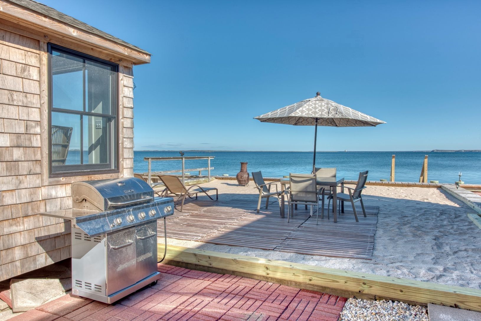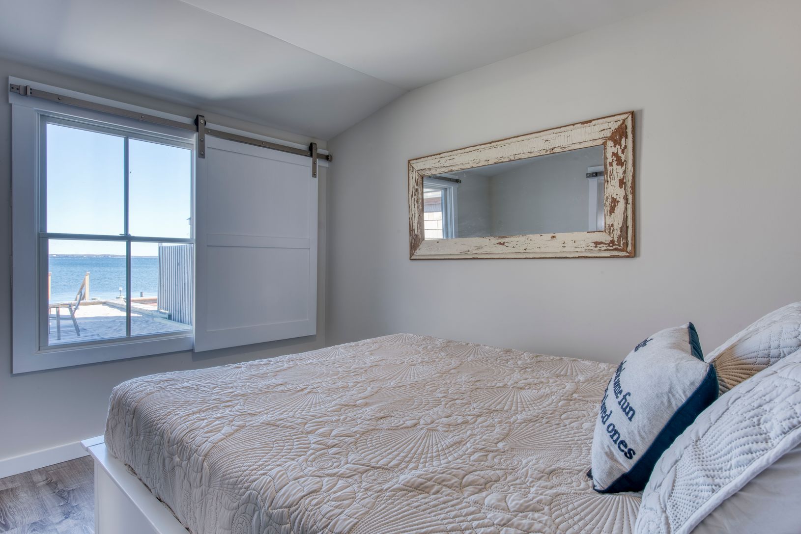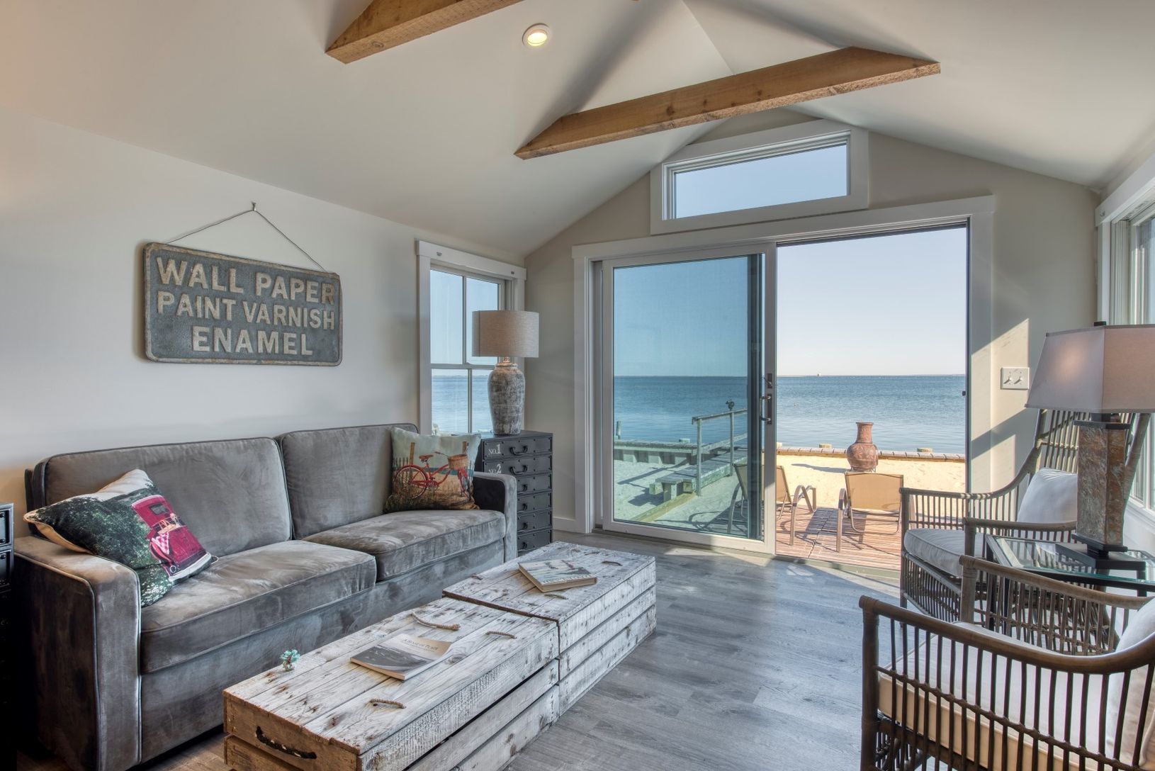 Charming rebuilt bayfront cottage with sweeping views of Peconic Bay. Features include an open floor plan for easy entertaining, vaulted ceilings with exposed beams. Custom kitchen. all common areas and master bedroom have water views.Sliding barn doors on all bedroom Windows to guarantee privacy and keep out the light for those lazy mornings. Open the glass slider and take your coffee out to the seaside deck or put your toes in the soft sand