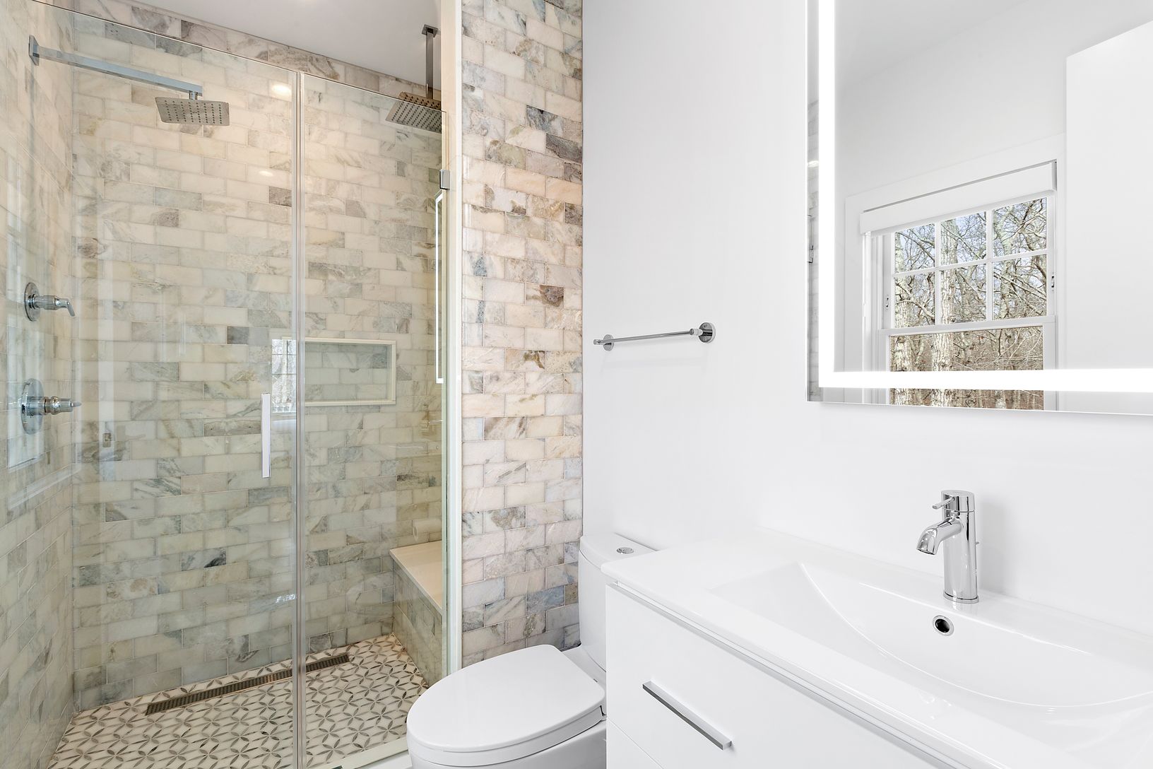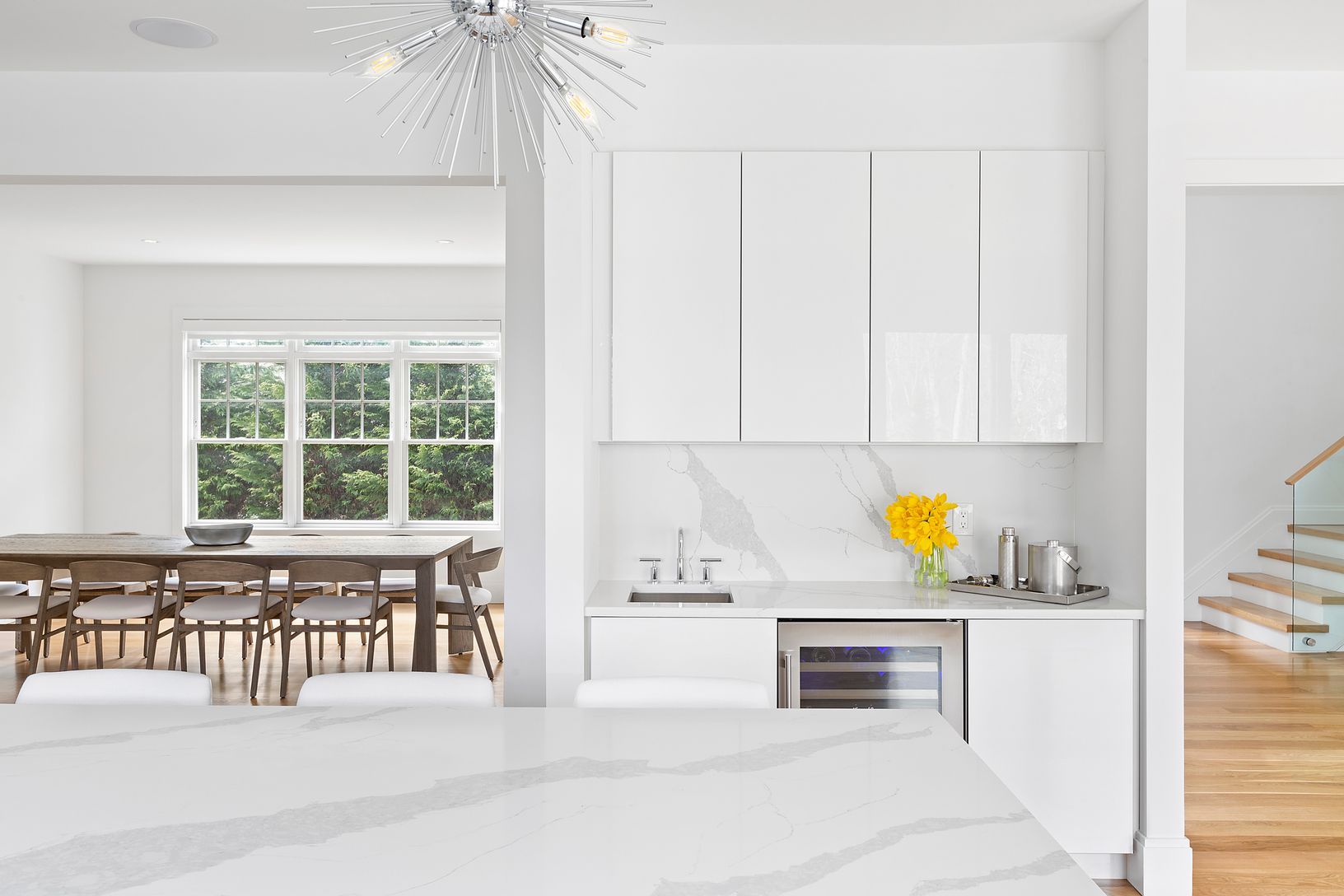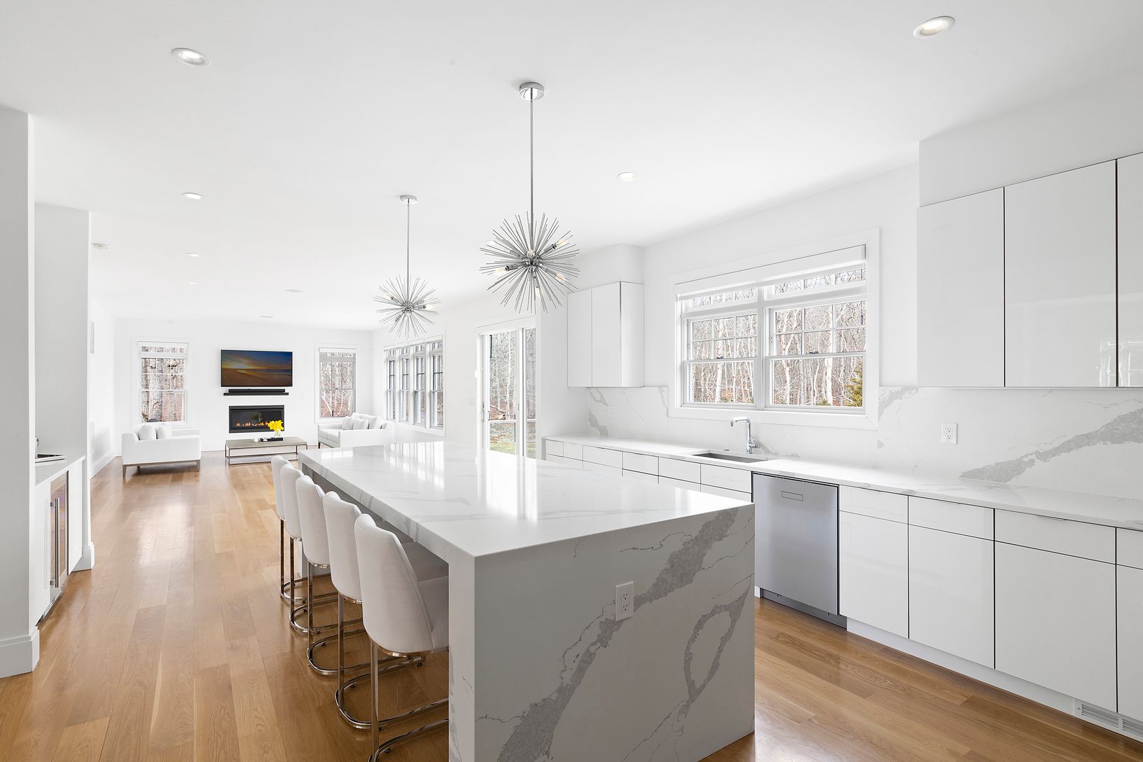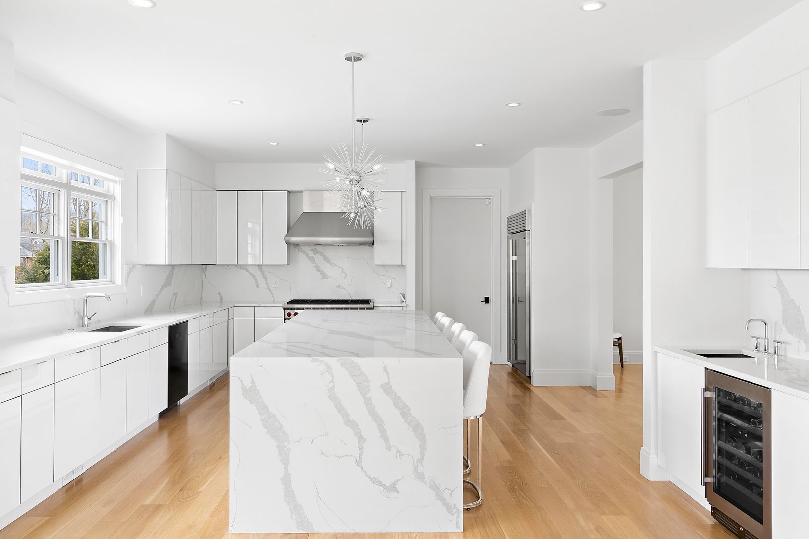 Completed Fall 2020 and offering 5,000 +/- sq.ft - this light-filled 5-bedroom home spans over three levels. The double height entry foyer makes way to the large, open concept, living space with fireplace, breakfast area, as well as, the chef's kitchen with custom cabinetry and a full high - end appliance package. A first-floor bedroom with en-suite, formal dining, powder room, and 2-car garage, complete the first floor. Upstairs you will find