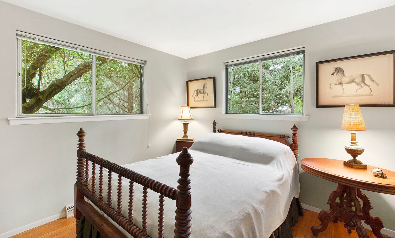 The great layout of this lovely home includes 3 bedrooms, 2 bathrooms and a second story loft den that includes an outdoor balcony with treetop views. The eat-in kitchen is outfitted with all new appliances. The living room features a cathedral ceiling, wood-burning fire place, and French doors that lead out to a multi-level decking overlooking the beautifully landscaped property. Mature evergreens and gardens create a private oasis around