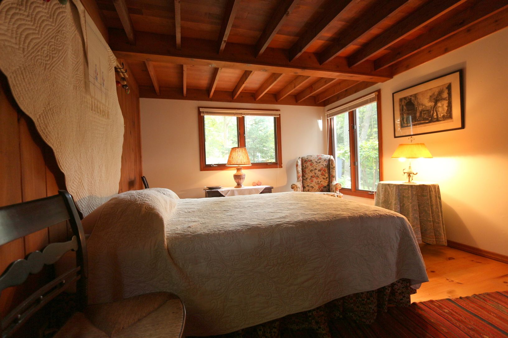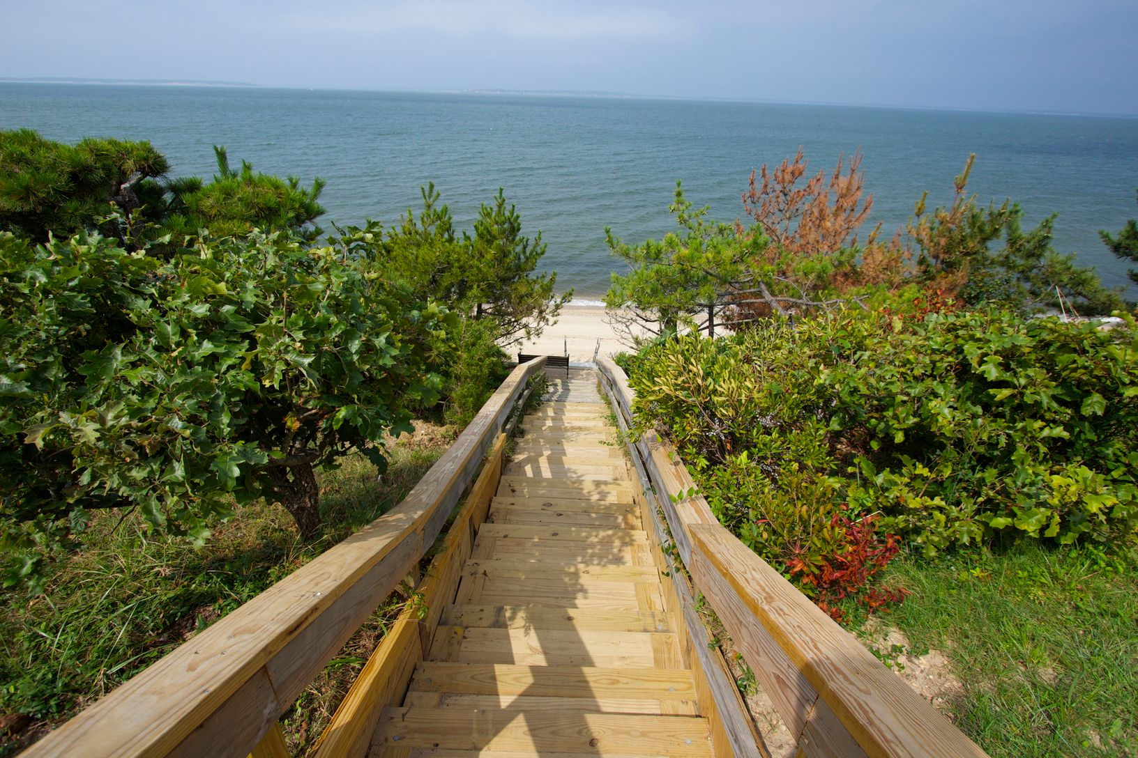 OPEN BAY SUNSETS, 4 bedroom, 2 bath Cottage perched 42 feet above the beach on 1/3 of an acre with private staircase and bulkheading. Original country kitchen opens up to living area with fireplace and bright and sunny dining space. A glass walled sitting area with 3 skylights adjacent to both the living and dining areas. Wide plank wood floors throughout. Above the living area is a spacious Master Bedroom sleeping loft with a separate sit