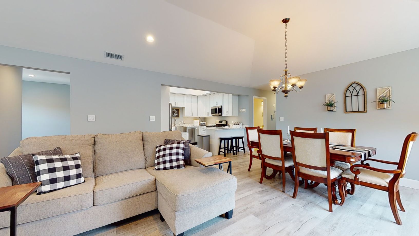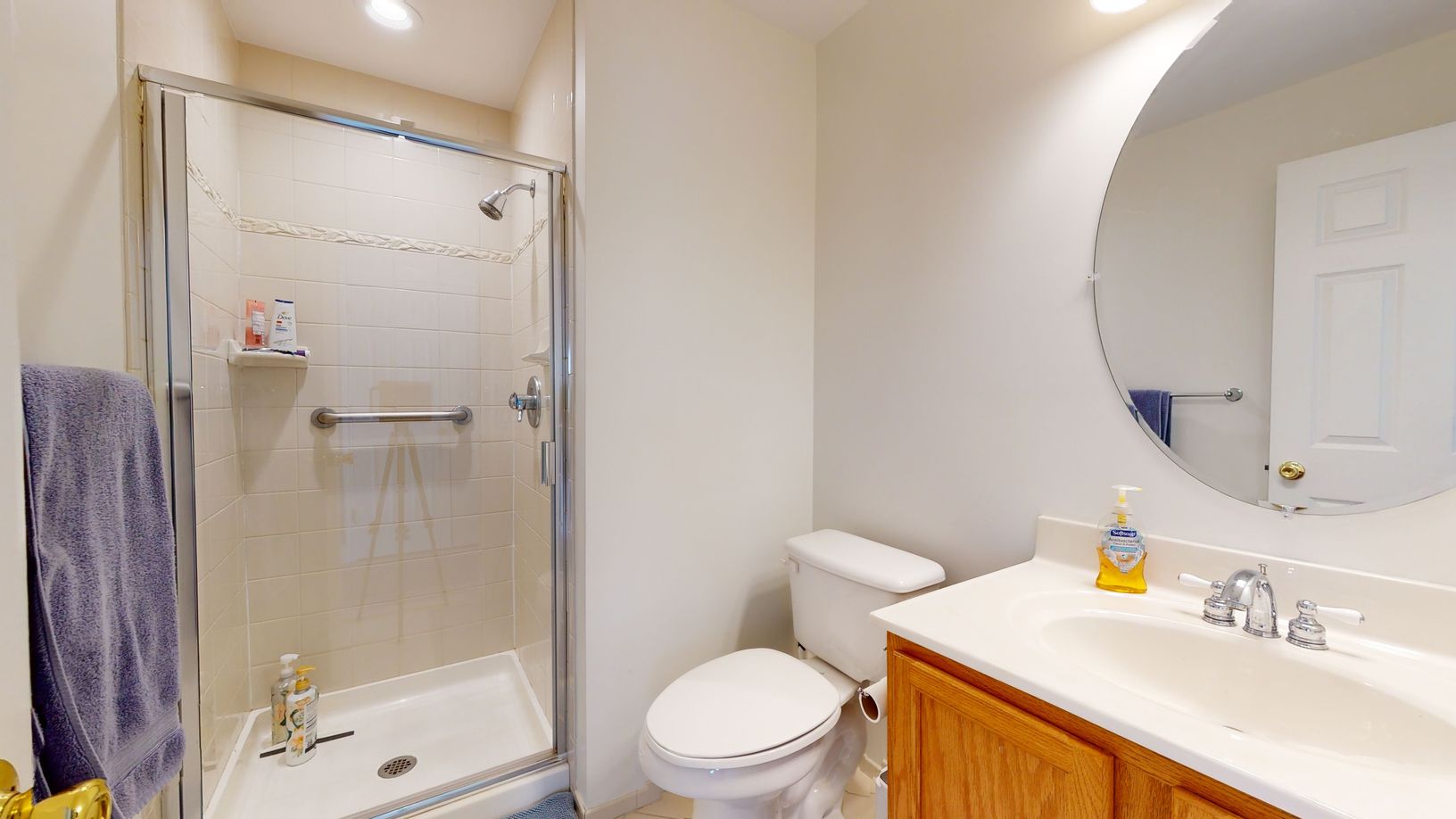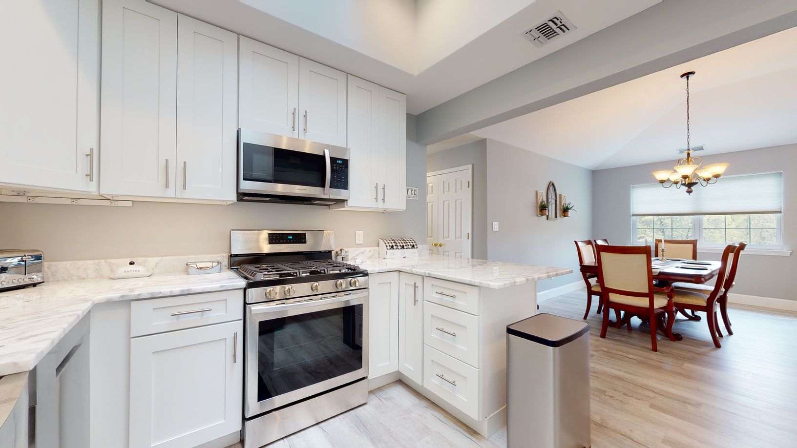 Turn-key, second floor, end unit condo in beautiful Eagles Walk. This 55+ condo features 2 bedrooms, 2 full bathrooms, new professional kitchen, spacious living room w/cathedral ceilings and gas fireplace. Other amenities include large laundry room, oversized balcony off of guest bedroom, CAC, natural gas heat, new flooring & 1 car detached garage. The community pool, clubhouse, low HOA fees and low taxes make this a can't miss. Call today
