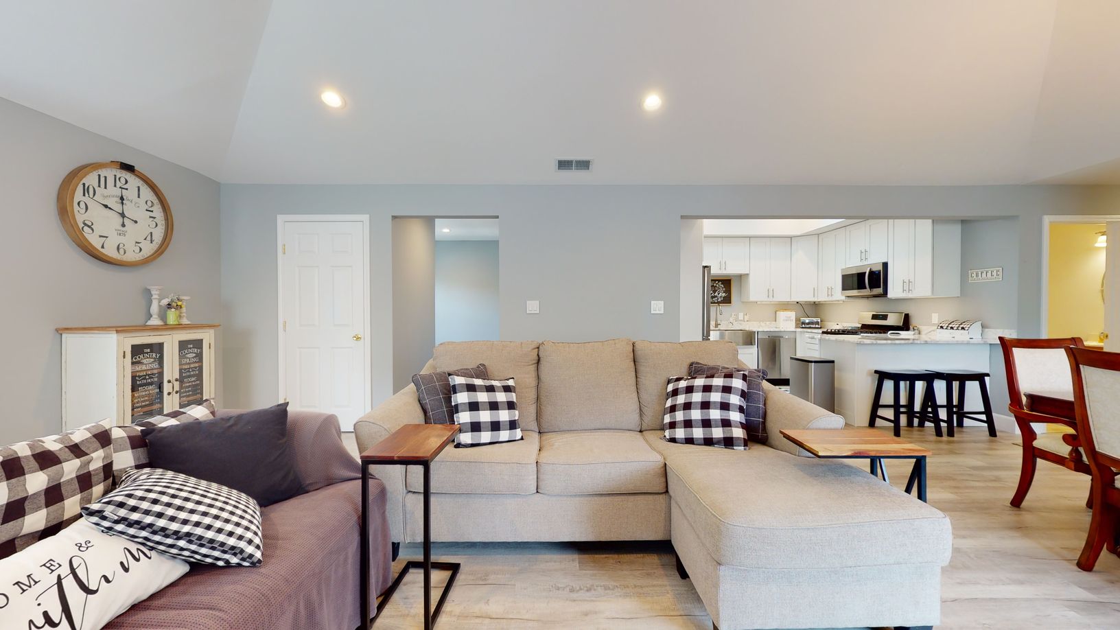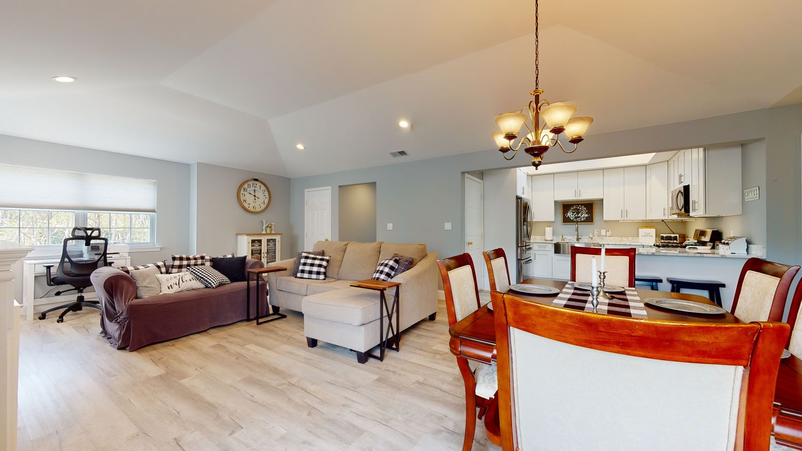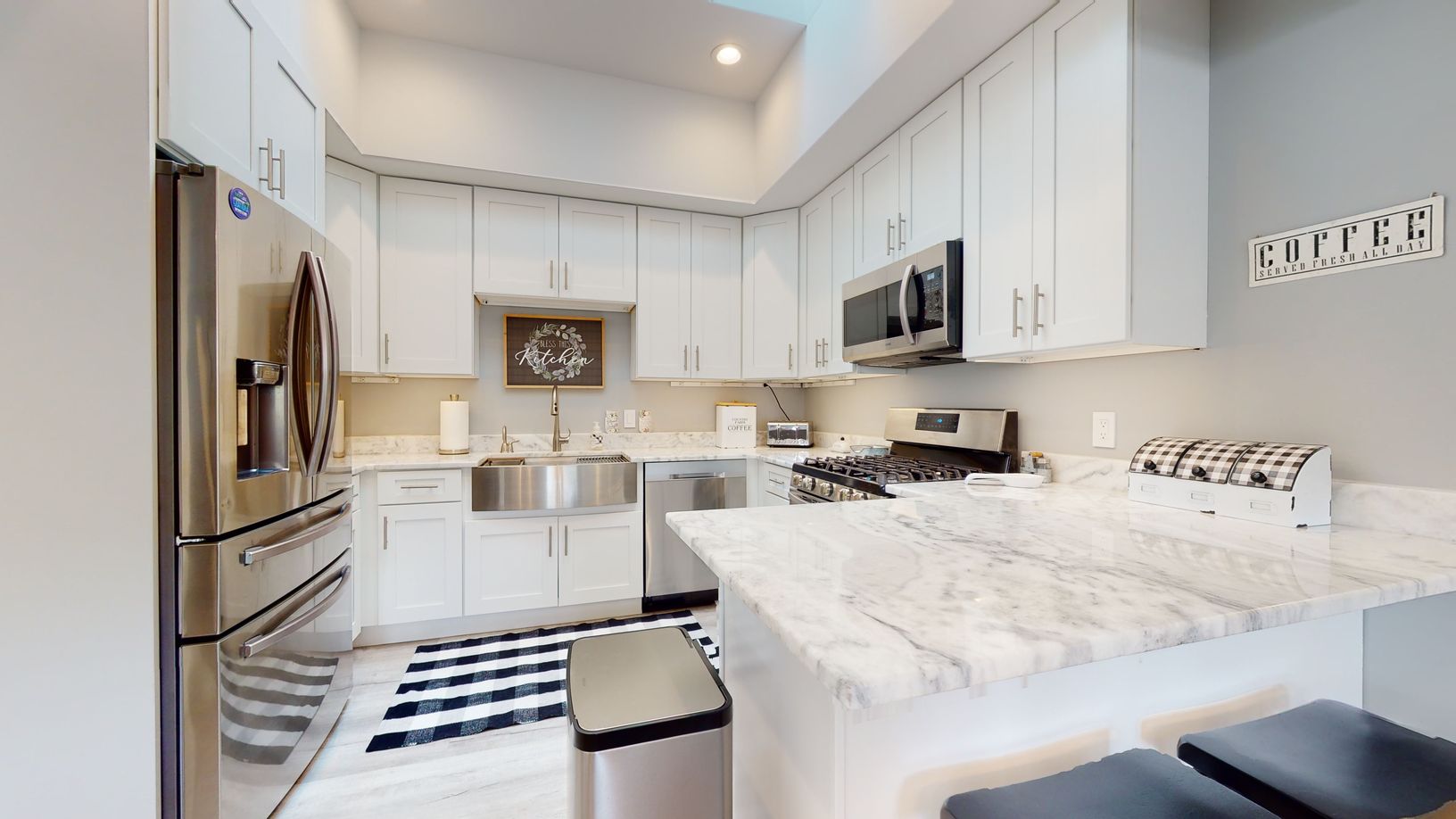 Turn-key, second floor, end unit condo in beautiful Eagles Walk. This 55+ condo features 2 bedrooms, 2 full bathrooms, new professional kitchen, spacious living room w/cathedral ceilings and gas fireplace. Other amenities include large laundry room, oversized balcony off of guest bedroom, CAC, natural gas heat, new flooring & 1 car detached garage. The community pool, clubhouse, low HOA fees and low taxes make this a can't miss. Call today
