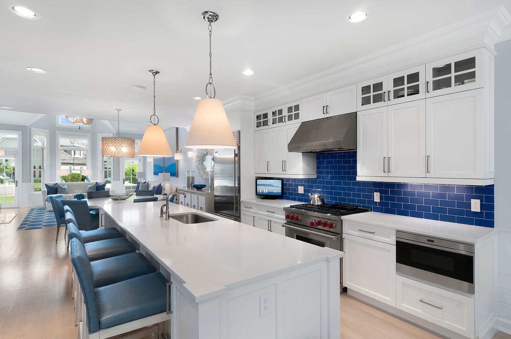 Almost new townhouse with pond views in the new Bishops Pond Community. This Southampton Village home boasts 5 bedrooms, 5.5 baths and lots of space for relaxing and entertaining. The open layout of the first floor has a master bedroom suite, living room, dining area, eat-in kitchen featuring Wolf, Sub-Zero, and Bosch appliances, a great room with vaulted ceilings, gas fireplace and wall of glass affording lots of natural light and views of th