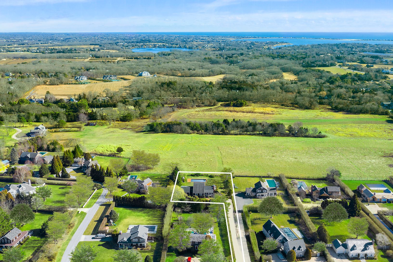 A private flag lot butting up against wide open 35+ Acre farmland reserve with pool. A great investment opportunity here to update, expand or build 7000SF + new construction home! Call Vanessa Sanmartin at 347-451-2400 for building envelope, survey and details.
