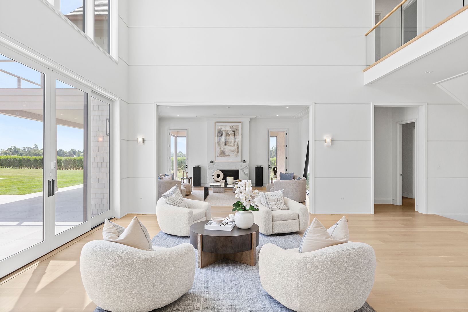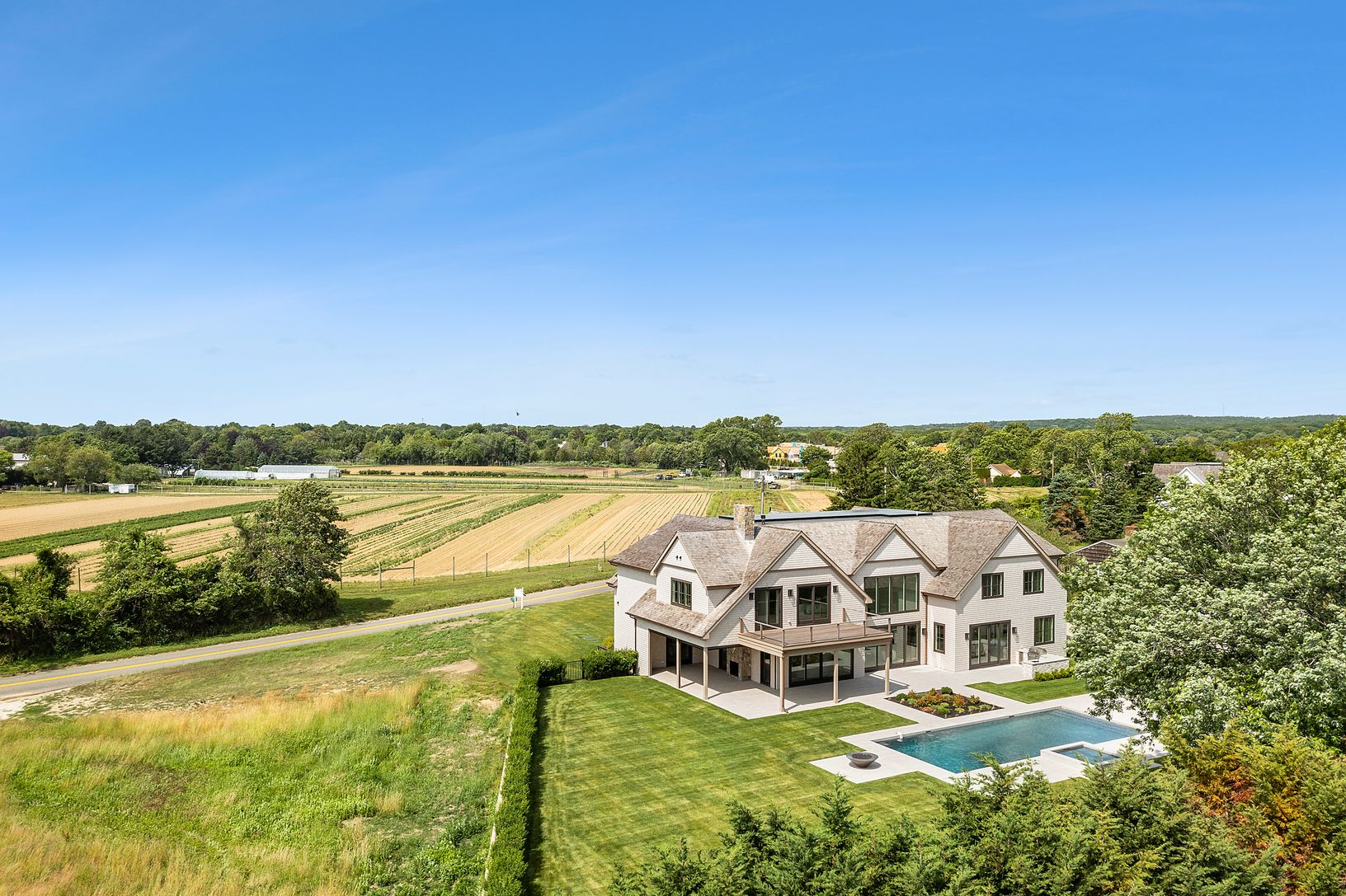 Stunning South of the Highway New Construction by Bencar Building Corp. overlooking 63 acres of agricultural reserve to the South and West, providing exceptional sun and open views from every room of the house. The 8-bedroom residence is designed with both comfort and aesthetics in mind and represents a wonderful example of modern construction with 11,090+/- square feet of living space on three levels. Walk into a dramatic, soaring entry wit