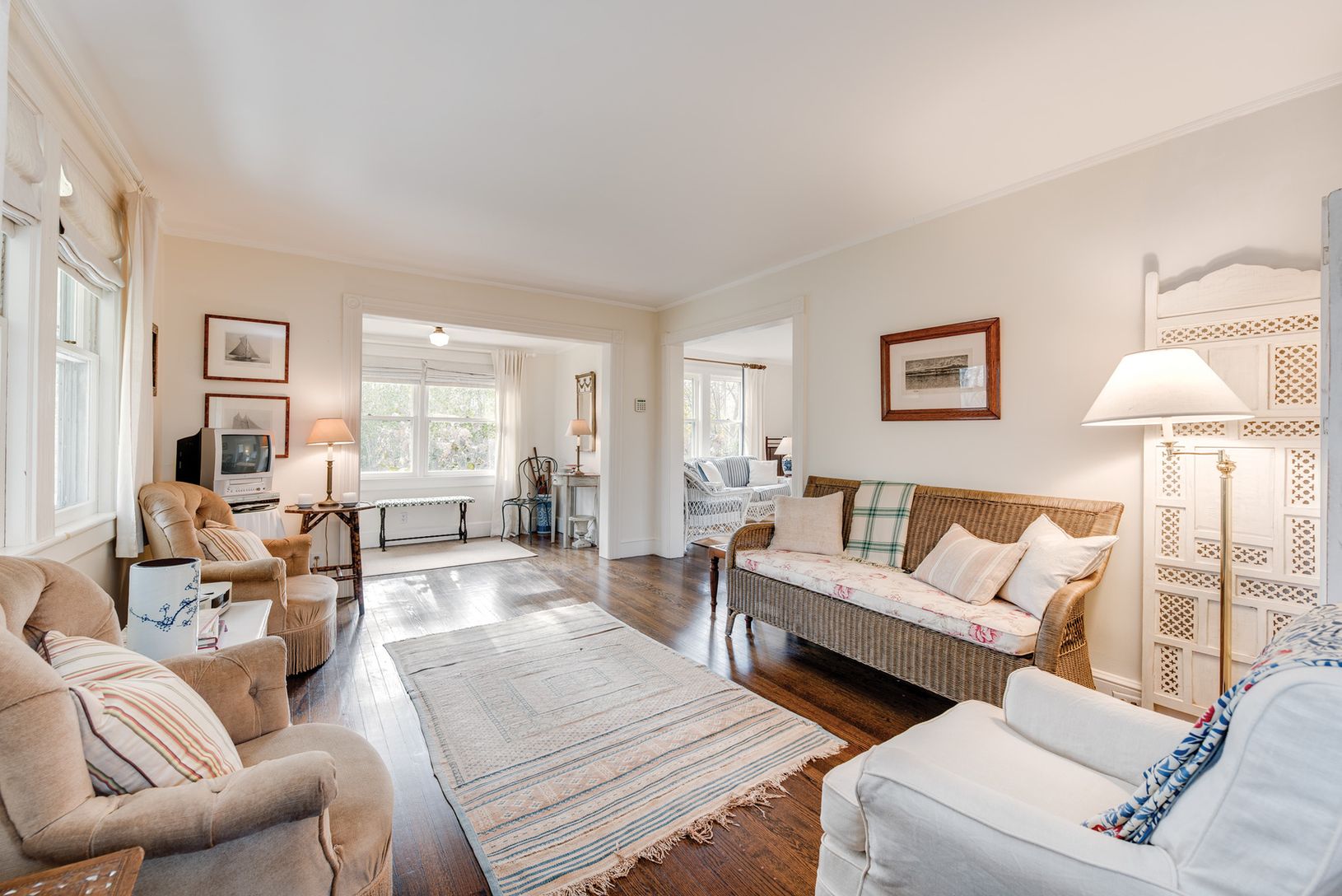 Welcome to Katherine's Kottage! Located on desirable Halsey Street in Southampton Village and set on .31+/- professionally landscaped acres with irrigation. The perimeter is hedged and fenced for privacy. A large front porch welcomes you into this three bedroom, two full bath cottage. Main floor living areas flow among the living room, family room/dining room, eat-in kitchen, mudroom and small full bath. Upstairs is an updated full bath along