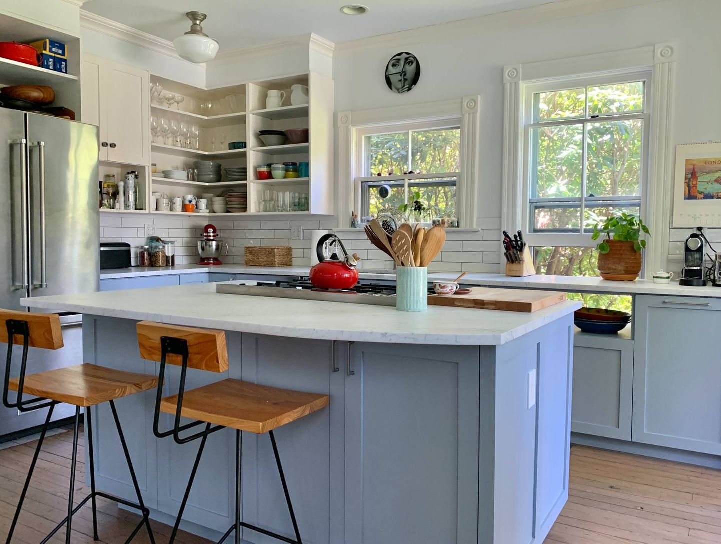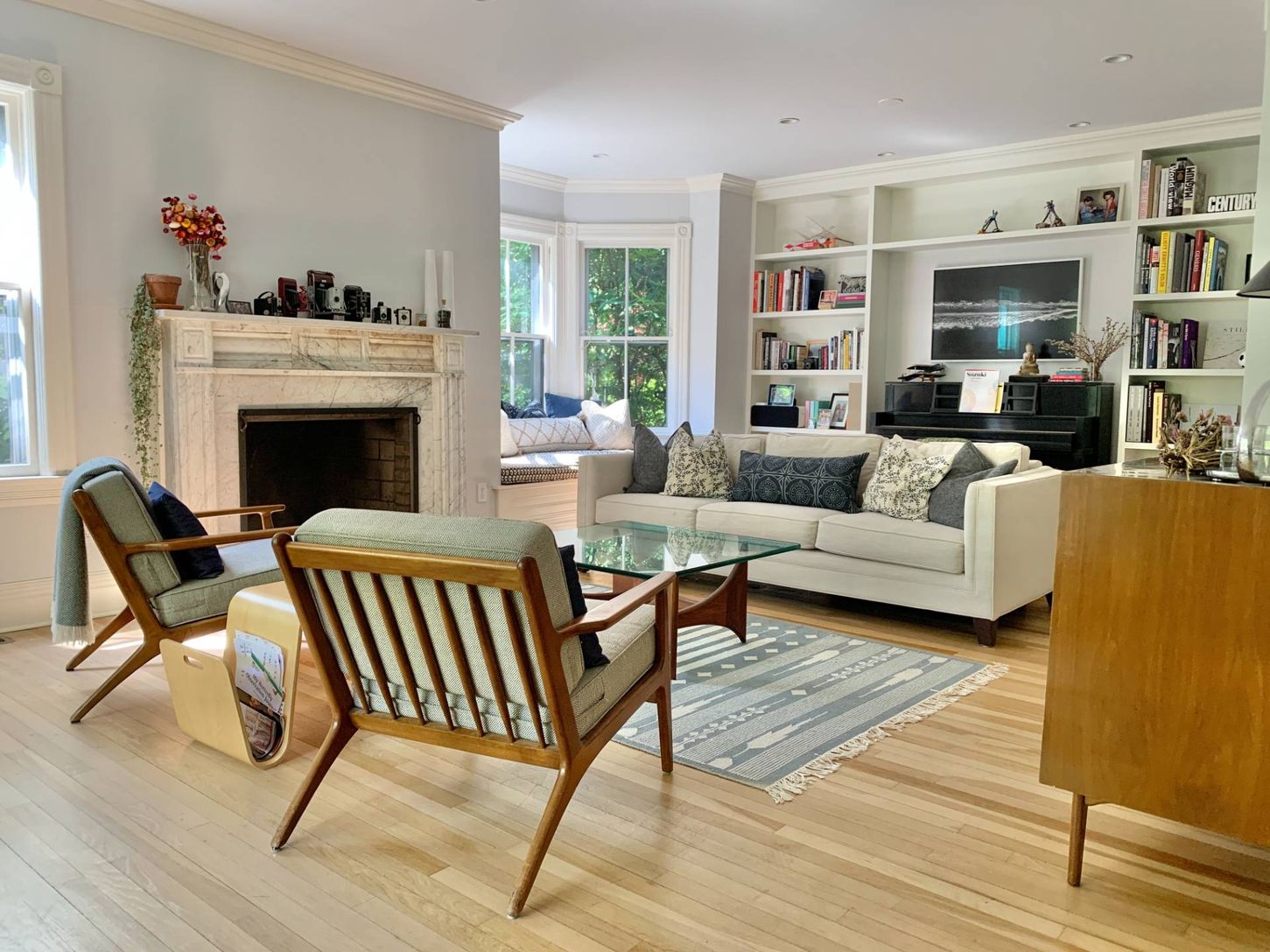 This historic, contemporary home features four bedrooms, two full and two half baths. The main floor includes a remodeled state-of-the-art gourmet kitchen with marble counters, a center island with stools, and a cozy breakfast nook. Alongside is the dining room, laundry, and the living room with a gorgeous fireplace and flat screen TV. The living room opens onto an enclosed front sitting porch with ceiling fans. The second floor features a pri