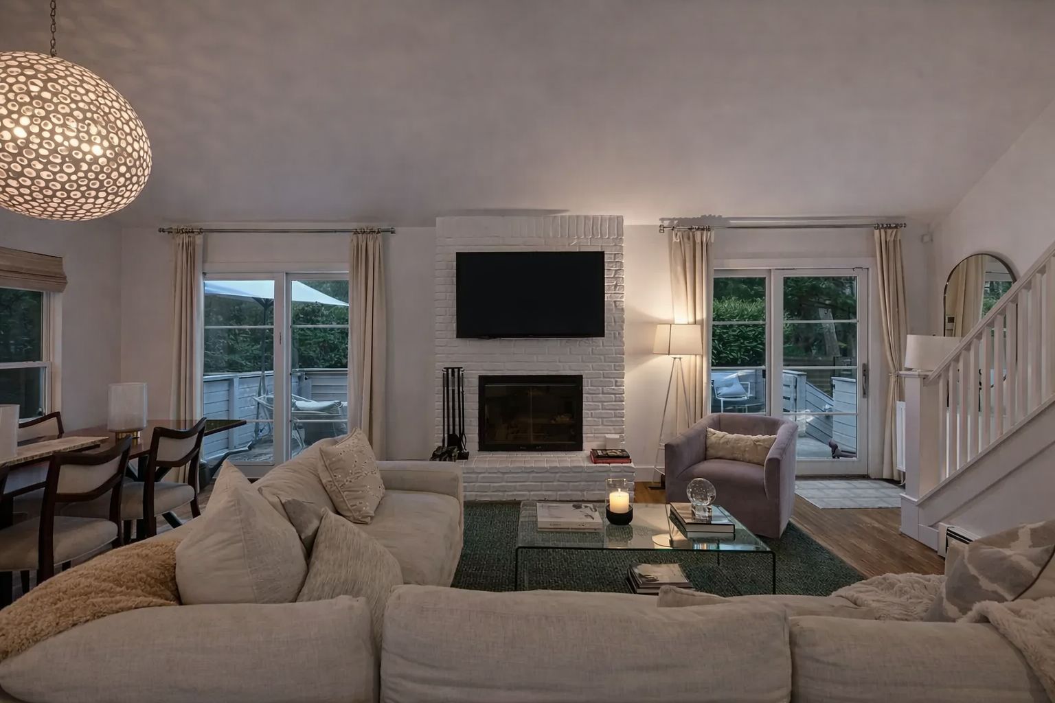Beautifully renovated designer saltbox set on a quiet street in East Hampton’s Springs neighborhood. This 3-bedroom, 3-bath home offers bright, modern interiors, curated furnishings, and a private, fully fenced property. The home features 425sf of additional living space in its finished basement, which can be used as a gym (Peloton, weights, yoga mats included), a workspace (with monitors and desk set up) and a TV room. A turnkey rental design