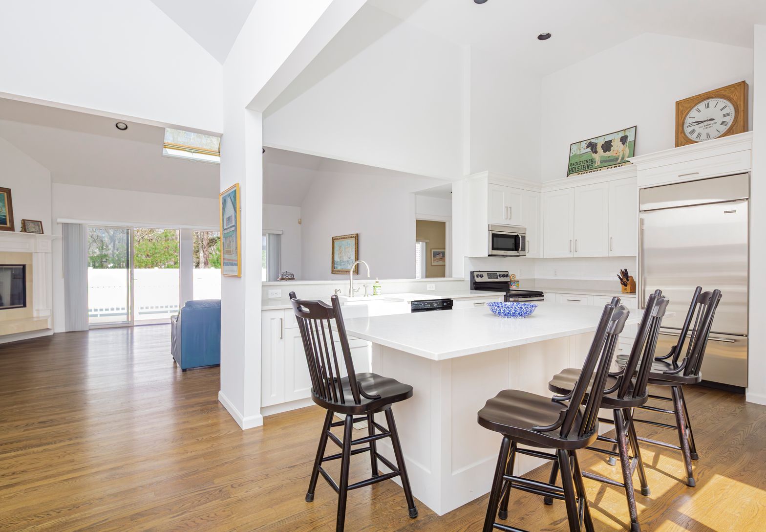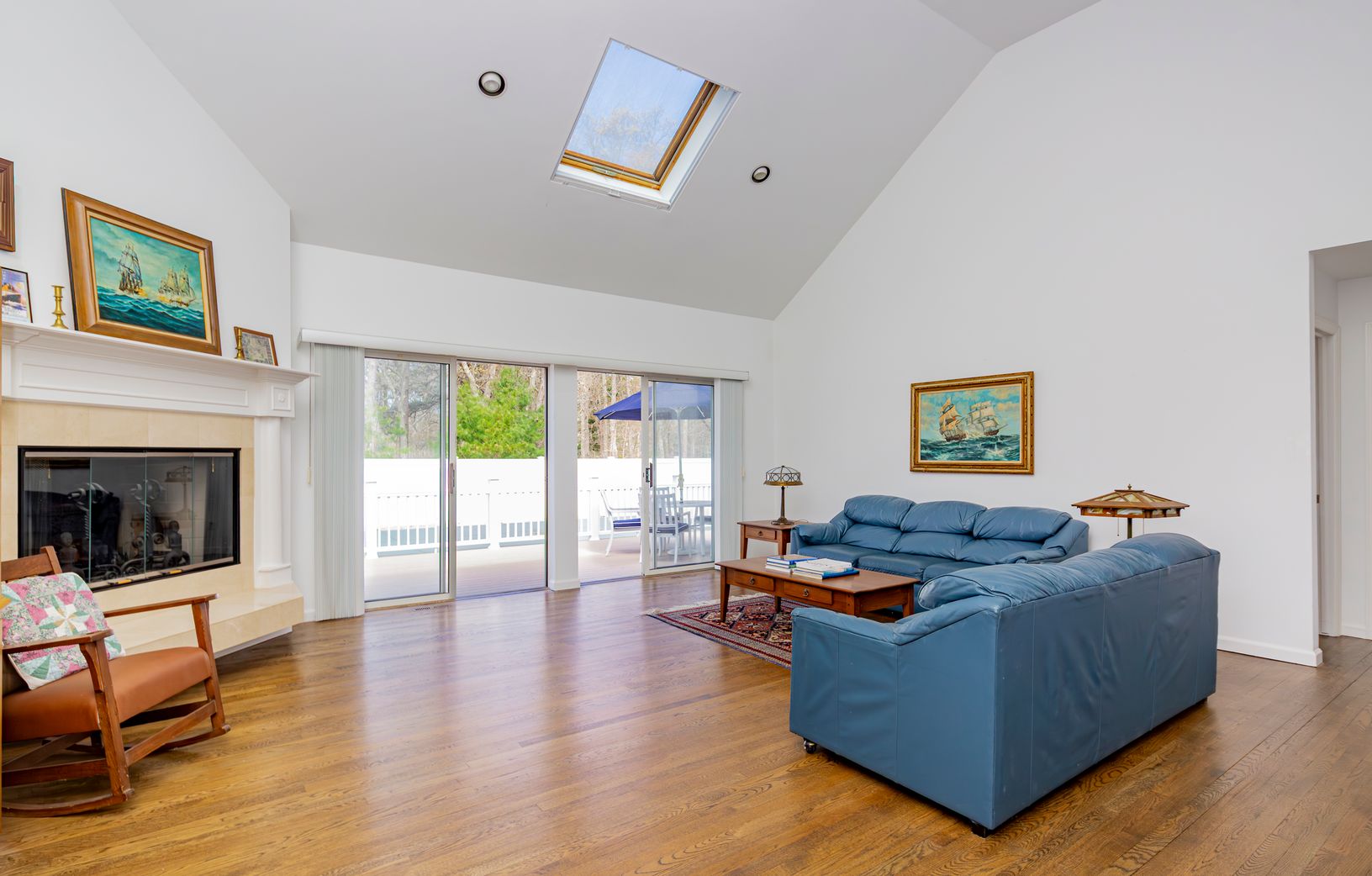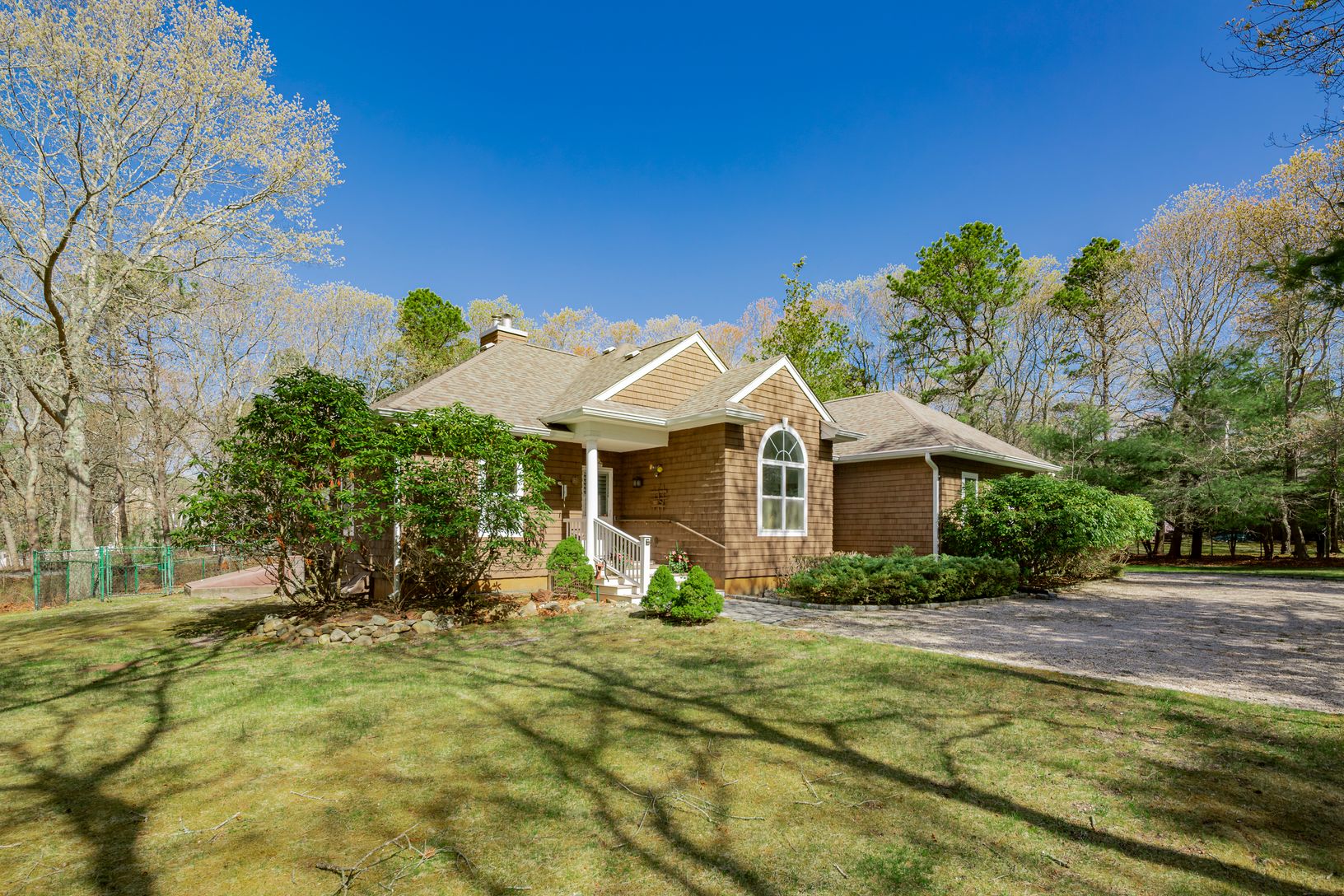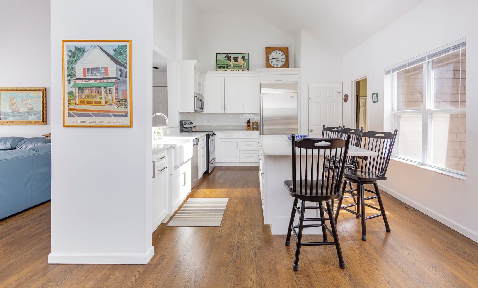 Nestled off the road behind a natural screen, this timeless cedar-shingled ranch is ready for your summer enjoyment. Thoughtfully renovated over the years, it offers a seamless blend of classic charm and modern comfort - just add your personal touch with paint, furniture, and décor. Step inside to an airy open-concept living space with soaring 15-foot ceilings, gleaming hardwood floors, and a wood burning fireplace. The bright, beautifully upd