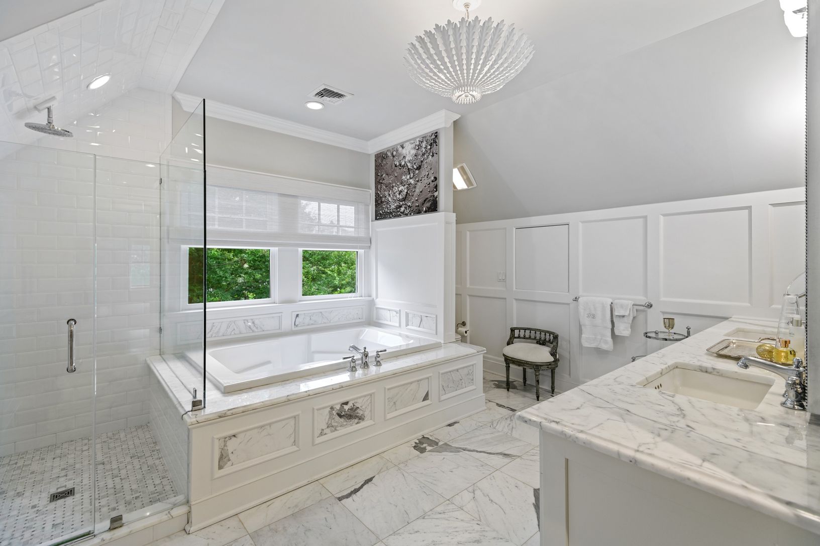A true "South of the Highway" Village home recently built on half acre located on a quiet street. This Hampton's style home was published as there are elegant details through-out. The foyer has vaulting ceilings and dark wood floors that contrast beautifully with the white detailed moldings. There is an open floor plan for entertaining. A great room, chef's kitchen with marble center island and counter tops plus built in espresso machine and 2