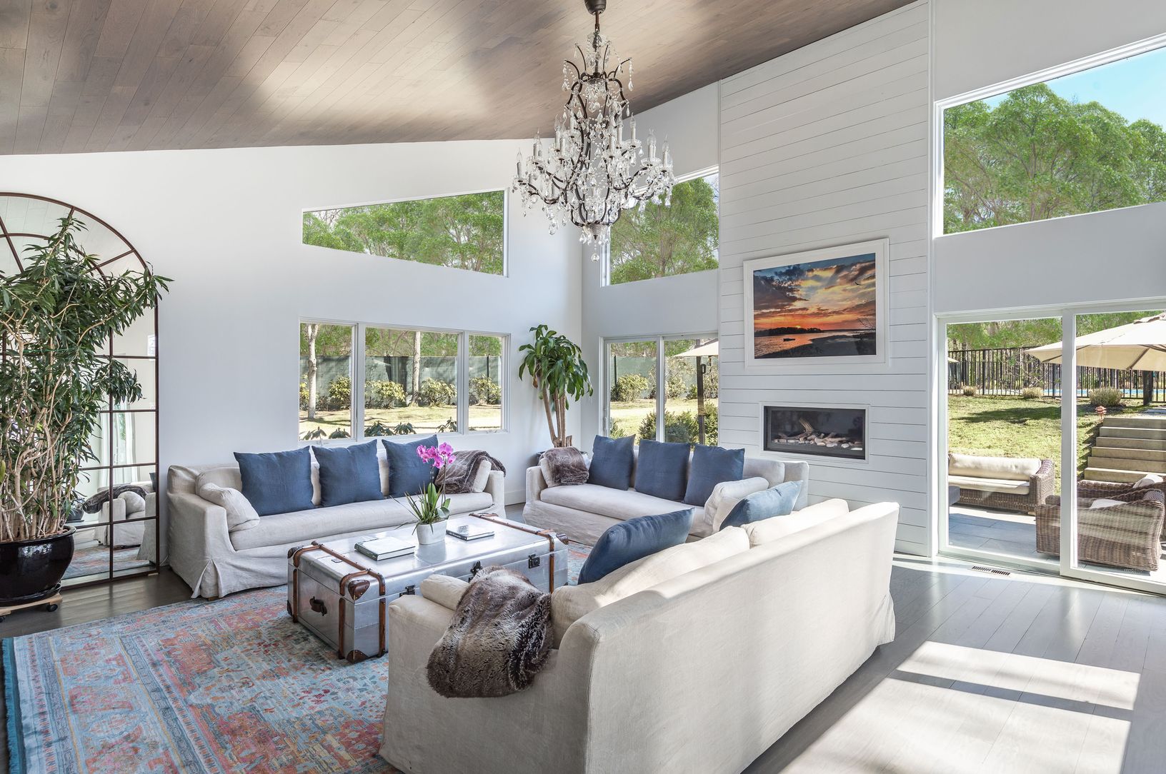 Travel through a front entry gate and past the expansive manicured grounds to arrive at this dramatic 4 bedroom modern residence. As you step inside the front entry foyer a sense of serenity greets you. A spacious great room with gas fireplace flows to a modern gourmet kitchen and to the out of doors via the multiple windowed sliders allowing natural light to stream in. The grand master bedroom is on the first level with double height ceilings
