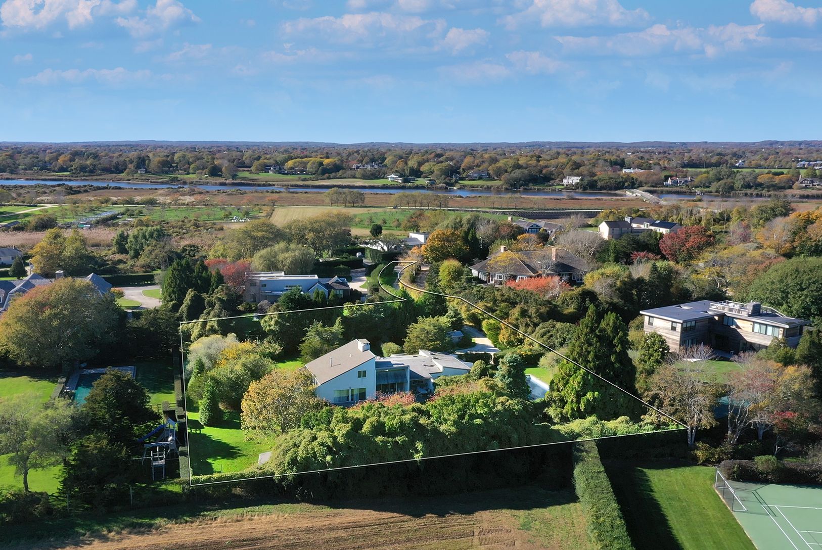 The 1.29+/- lot features a 6-bedroom home, built in 1991, and pool. The location, parcel size and shape come together to form one of the most attractive real estate offerings currently available in the Hamptons. Sagaponack South is only moments from both Bridgehampton and East Hampton Village
