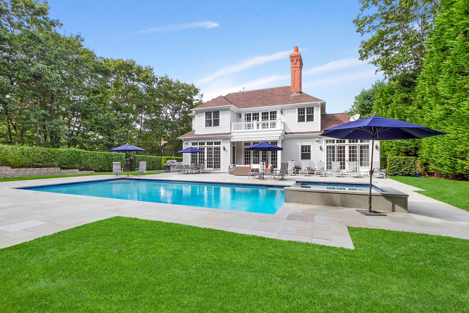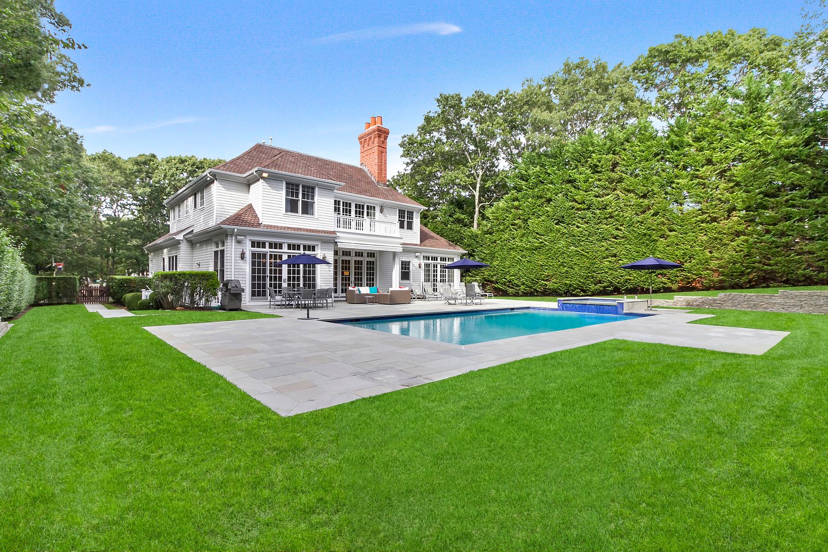 Newly listed, custom-built traditional style home on a quiet street in Southampton. Double height entrance foyer is flanked by a private den with fireplace. This 7-bedroom, 5 and ½ -bath offers a spacious open floor plan with generous rooms that merge seamlessly for casual or formal entertaining. Walls of glass in the gathering rooms reveal a beautifully landscaped yard with bluestone patios, landscape lighting, and gunite pool with attached
