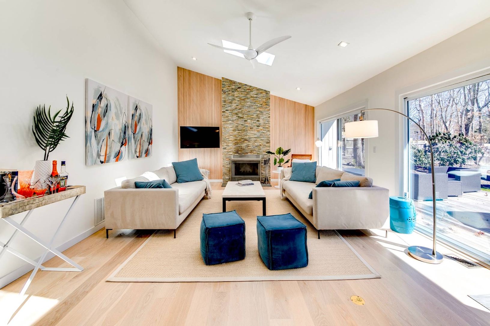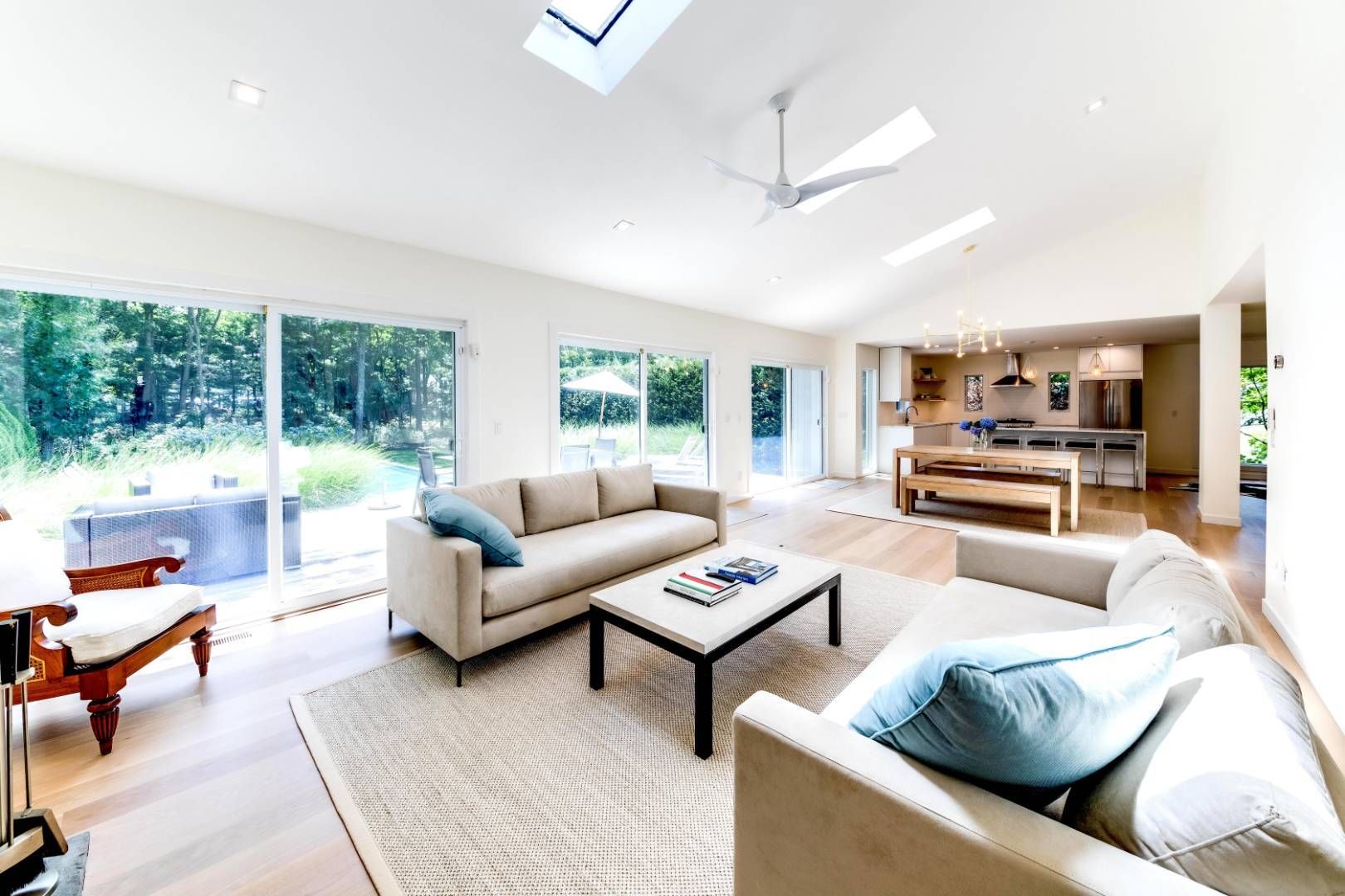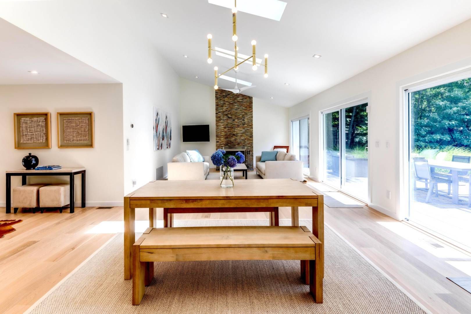 [[Rental Registration # 22-1353]] Flooded with natural light and having just completed a gut renovation with all new furnishings, this stylish 3 bedroom, 2.5 bath home in East Hampton with all modern amenities, great attention to detail throughout, a finished lower level and a convenient location truly has it all. Features include an open floor plan living room, dining area with vaulted ceilings, flat screen TV and fireplace, a beautiful new c