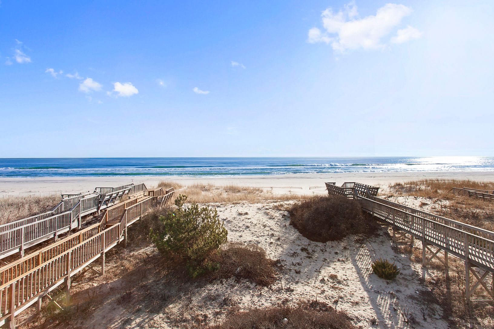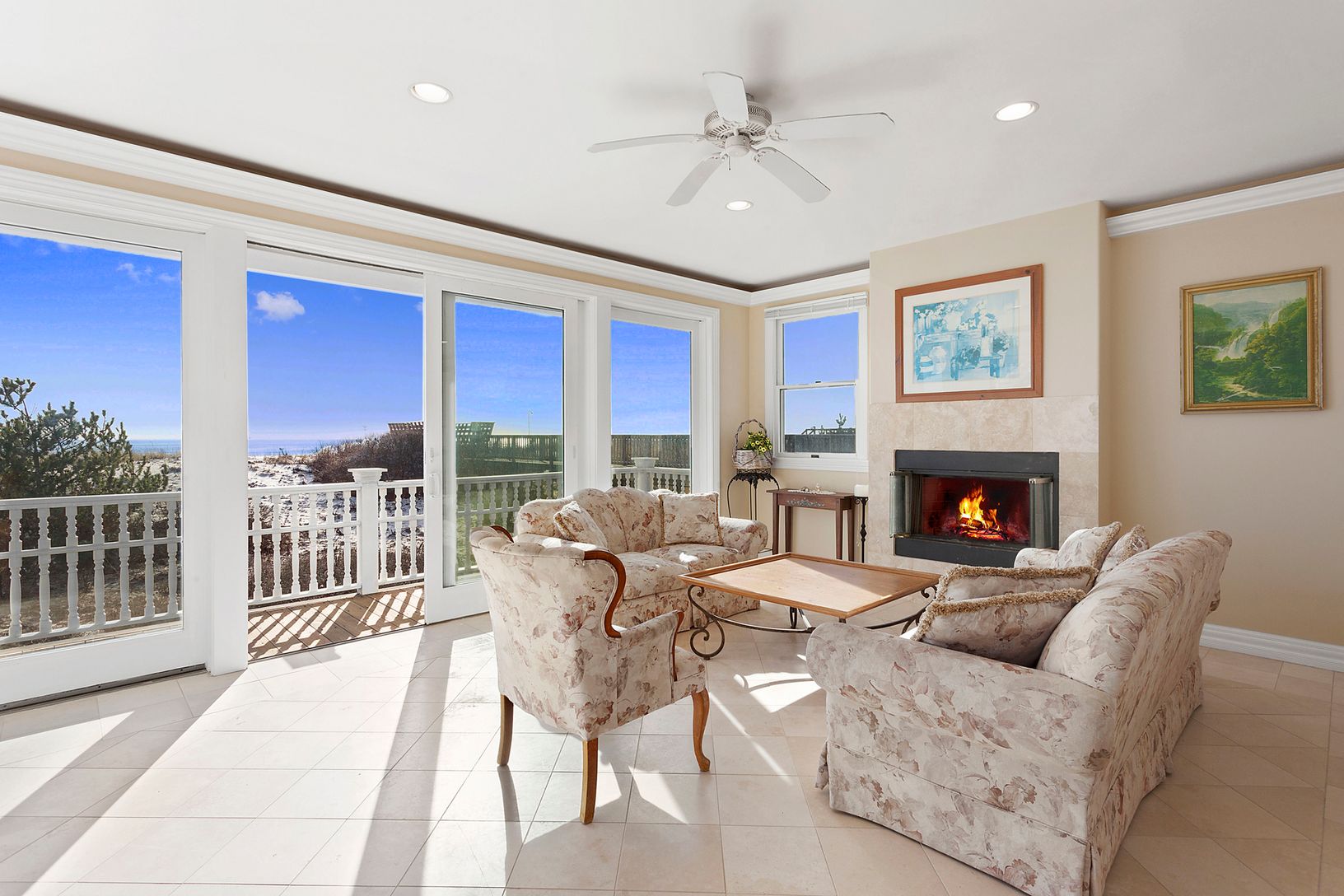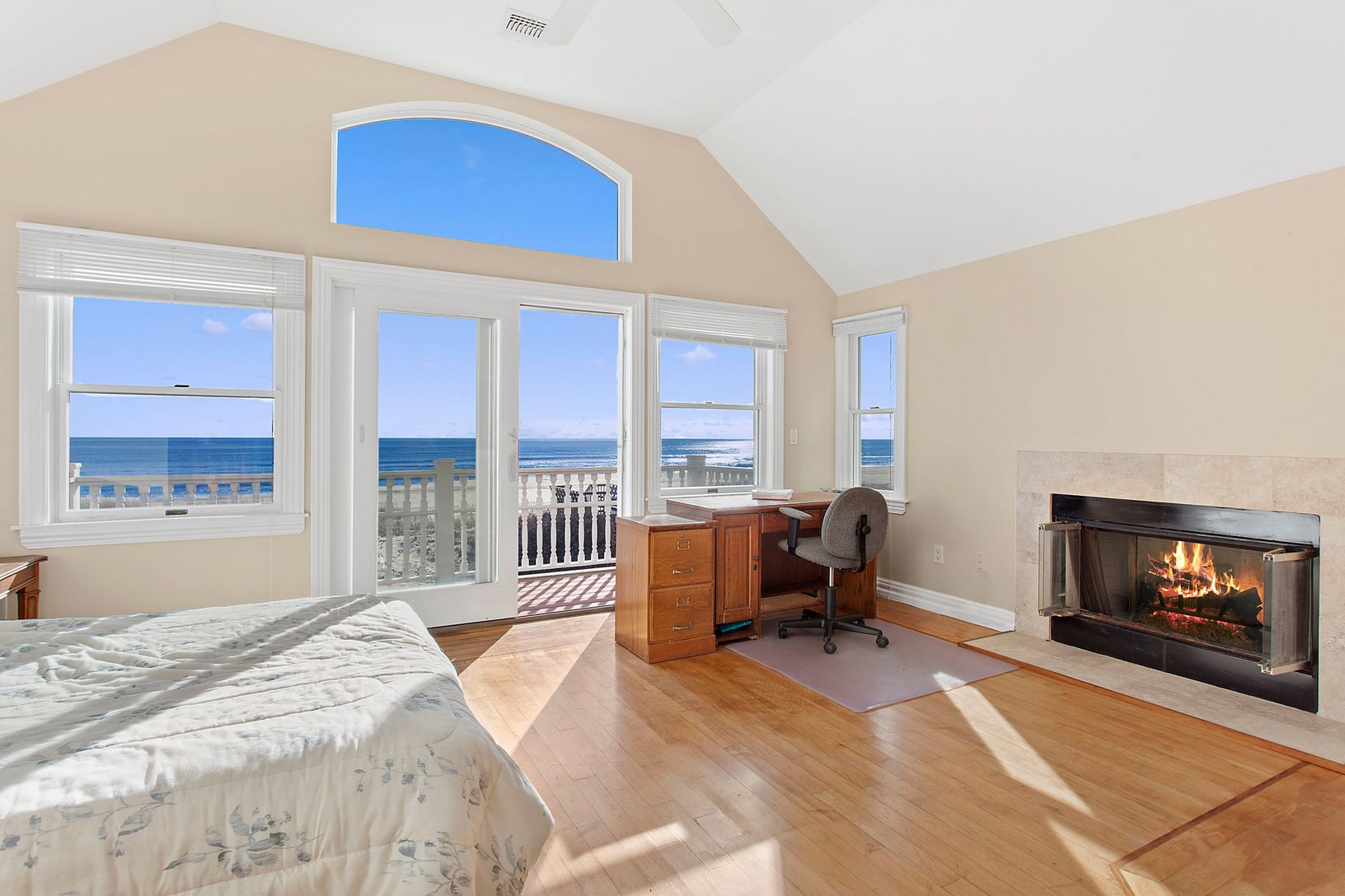 Located in the village of Westhampton Dunes sits this traditional oceanfront home with expansive main level water views. First floor features an open light filled living room with fireplace and sliders that lead out the deck, dining area, and kitchen with granite counters and breakfast bar. Oceanfront master bedroom boasts a large walk in closet and balcony with unencumbered views, five guest bedrooms, three bathrooms and a private walkway dow