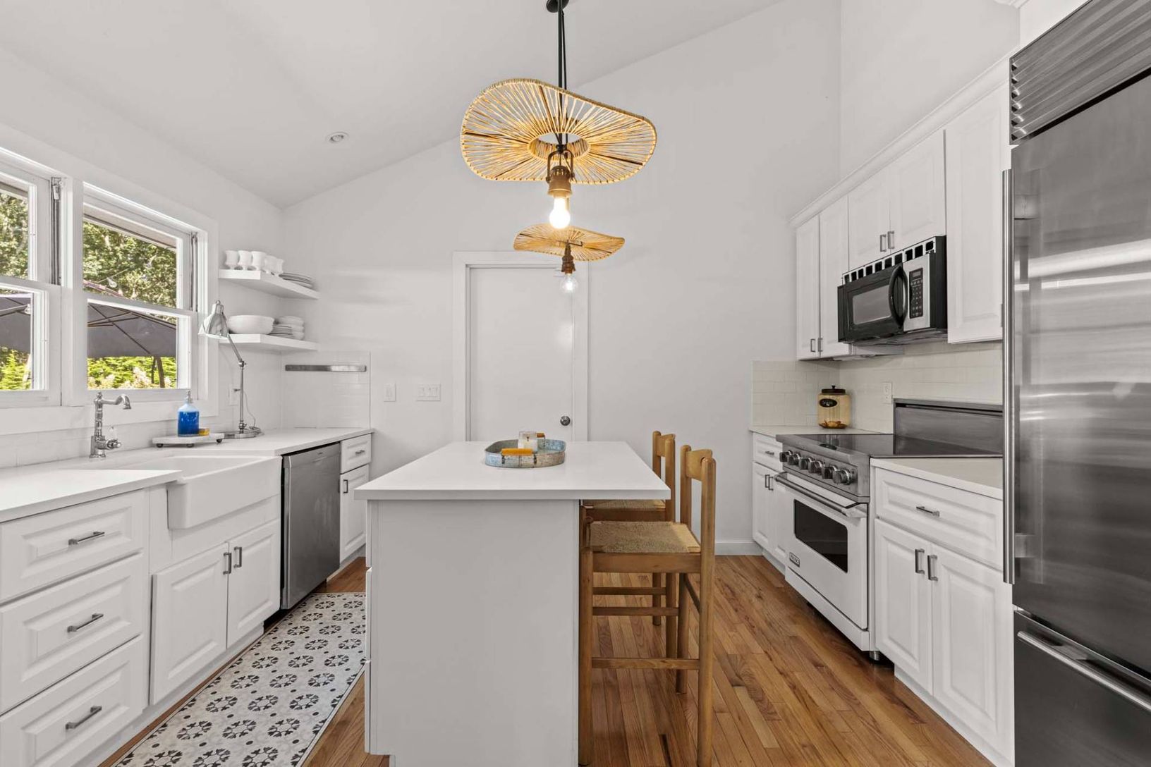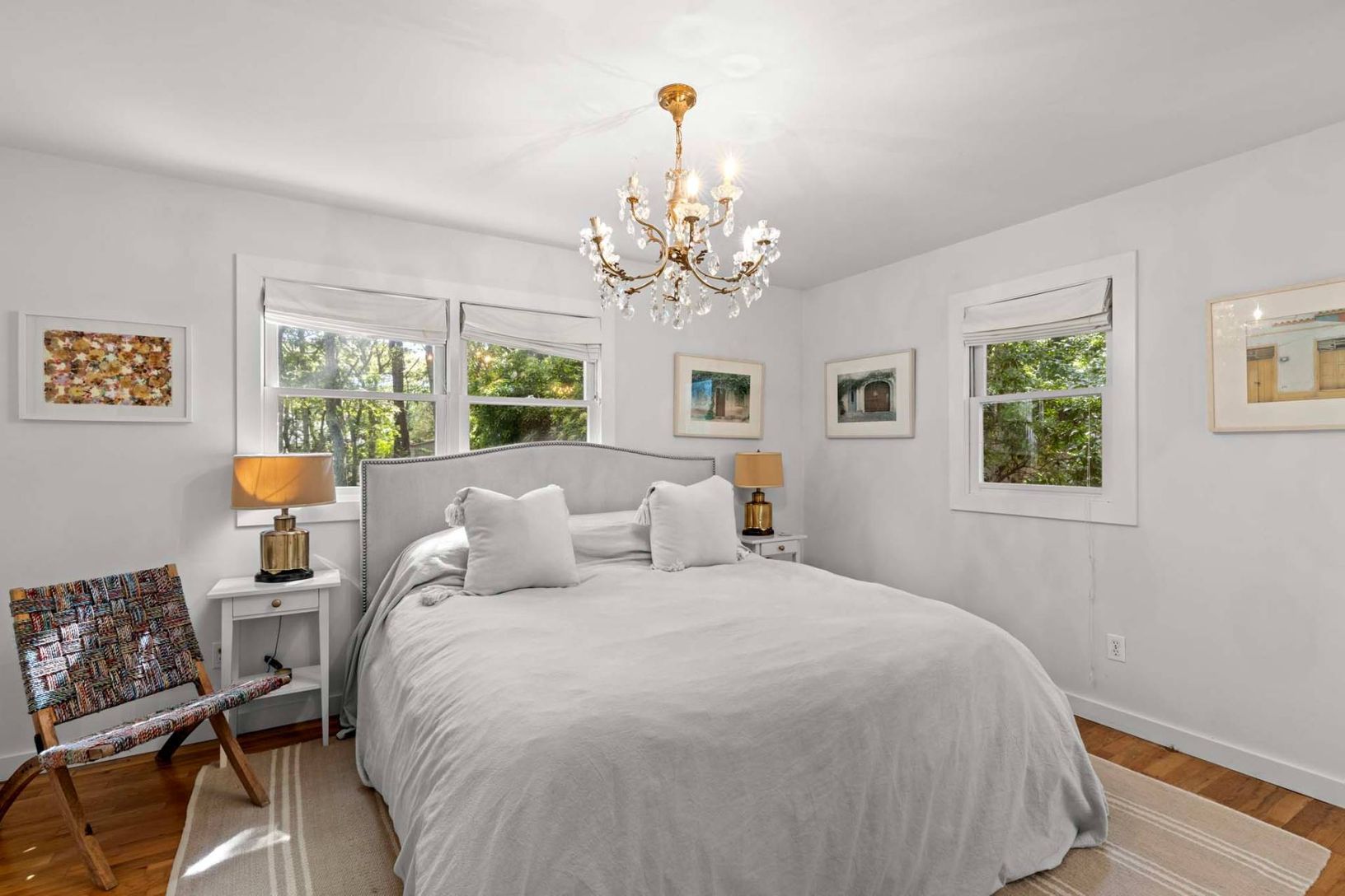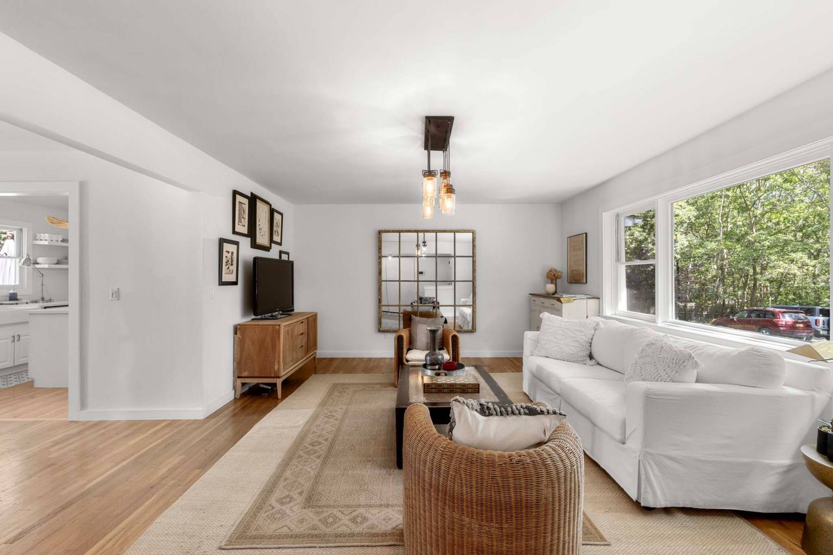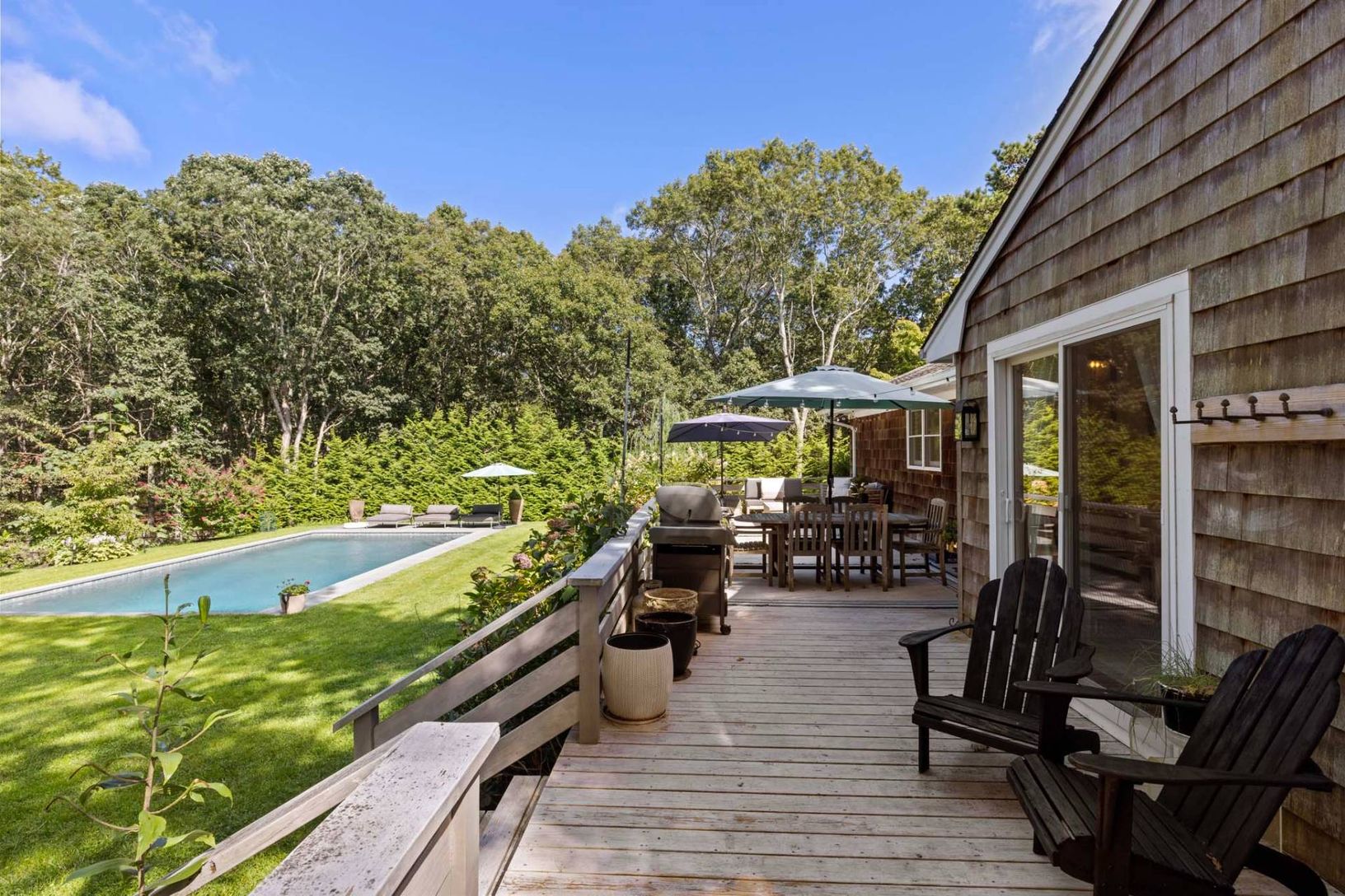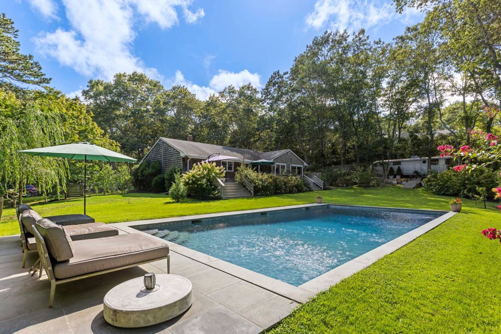 Set on 1.12 acres in a serene Water Mill setting, this beautifully renovated single-level home captures the essence of effortless Hamptons living. Thoughtfully updated in 2019, the 1,250 +/- sq. ft. residence offers 3 bedrooms, 2 full baths, attached garage, gunite pool and outdoor shower - all designed with comfort and ease in mind. The light-filled primary suite is complemented by two inviting guest rooms, each with sliding glass doors to th