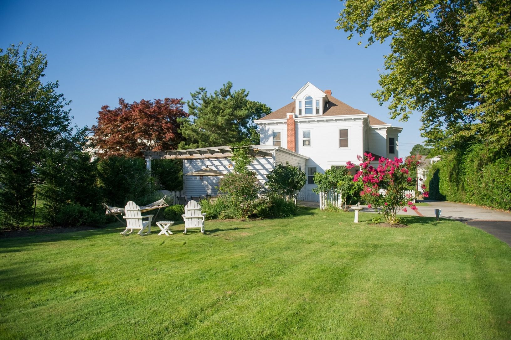 Exquisitely restored, spacious & grand Fordham House Bed & Breakfast in the heart of Greenport Village is offered this summer season as a private residential rental. Large living room, formal dining room, eat-in kitchen with butler's pantry, family room, four bedrooms (3 en-suite), 1½ baths on ground floor, 4 baths on second floor. Wrap around porch, private rear garden, off street parking. Close to waterfront, shops, restaurants, NYC