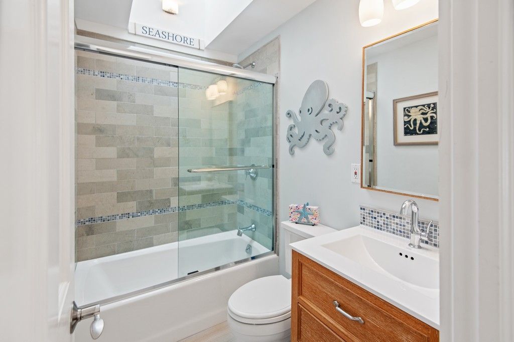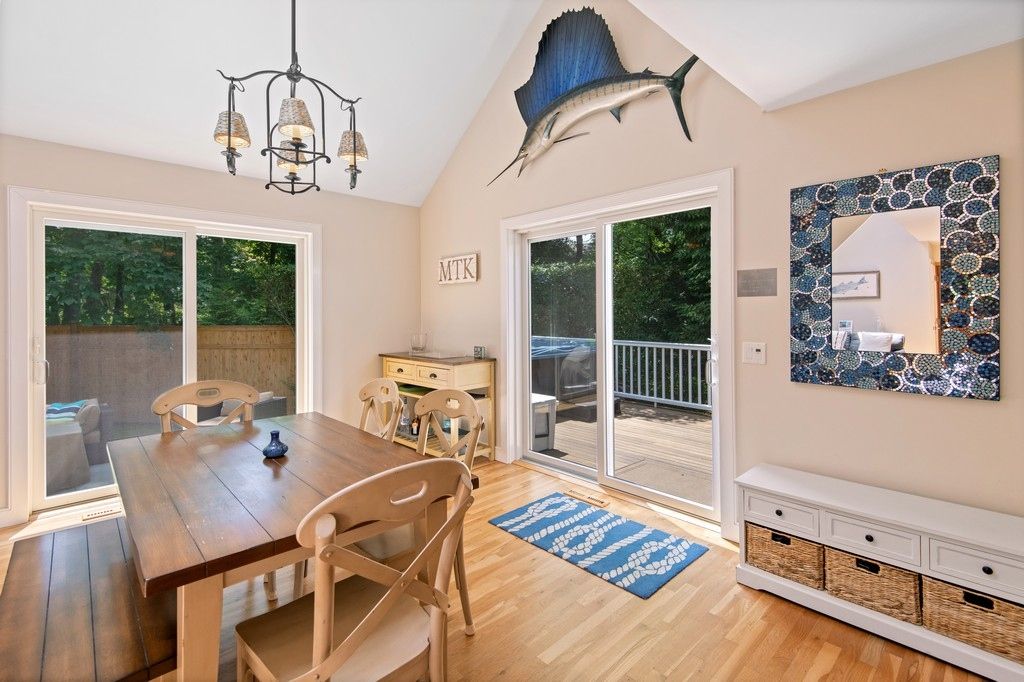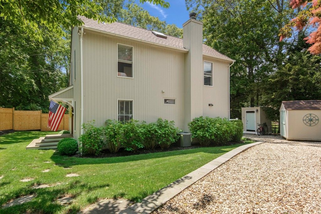 This custom outfitted three bedroom, two bath saltbox has been lovingly maintained. The kitchen is handsomely appointed, the living/dining room with fireplace is comfy and cozy, and the bathrooms have a designer touch. There's hardwood flooring, oil heat, central air, a deck out back, full basement with Bilco access and, importantly, there is access to a private beach on Block Island Sound. Close to Gosmans dock area, great restaurants, shop